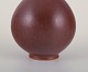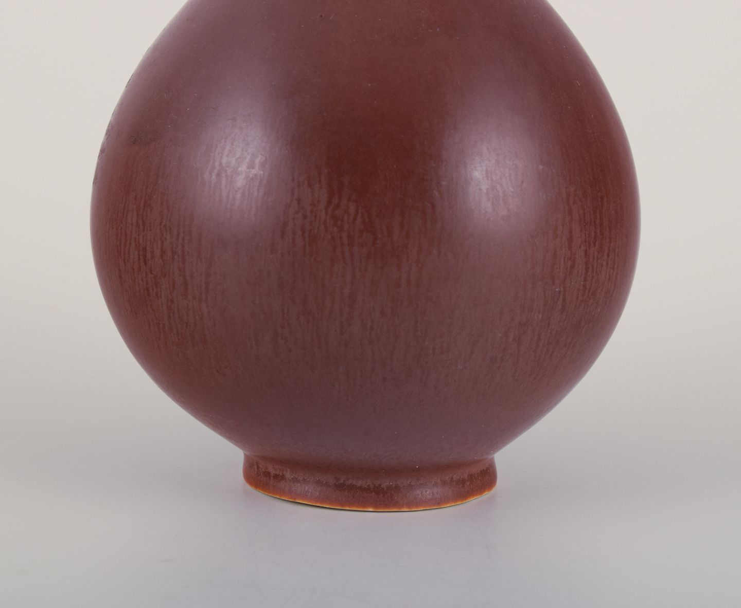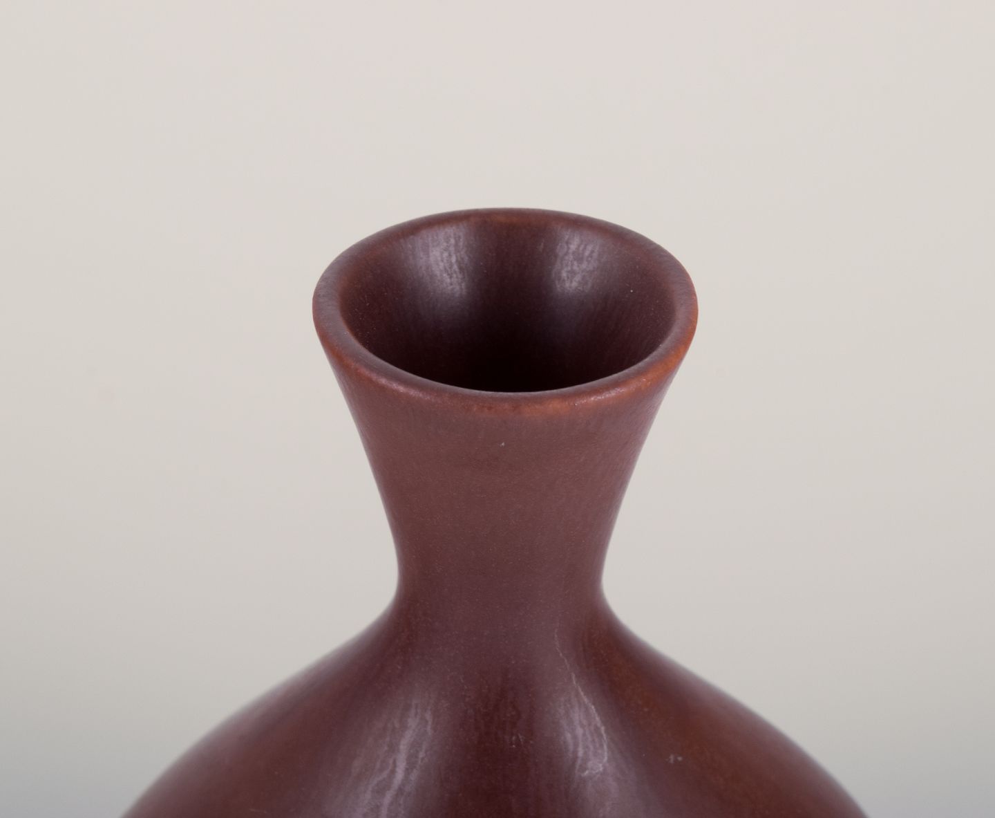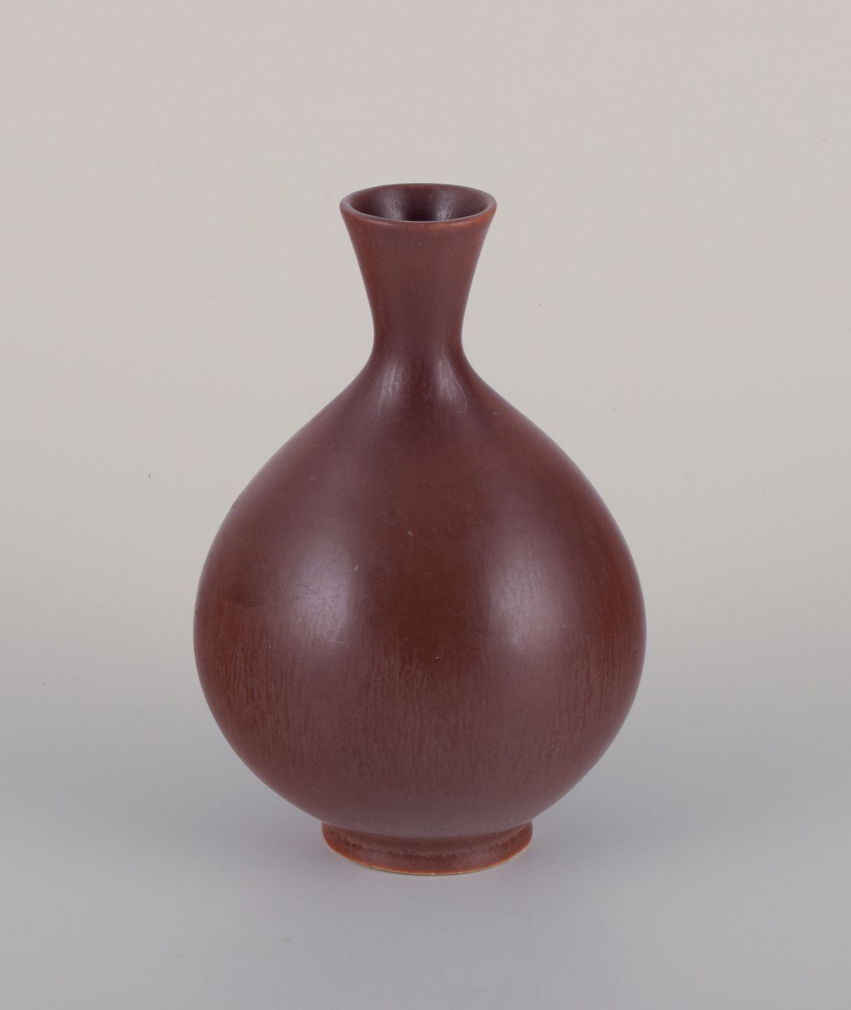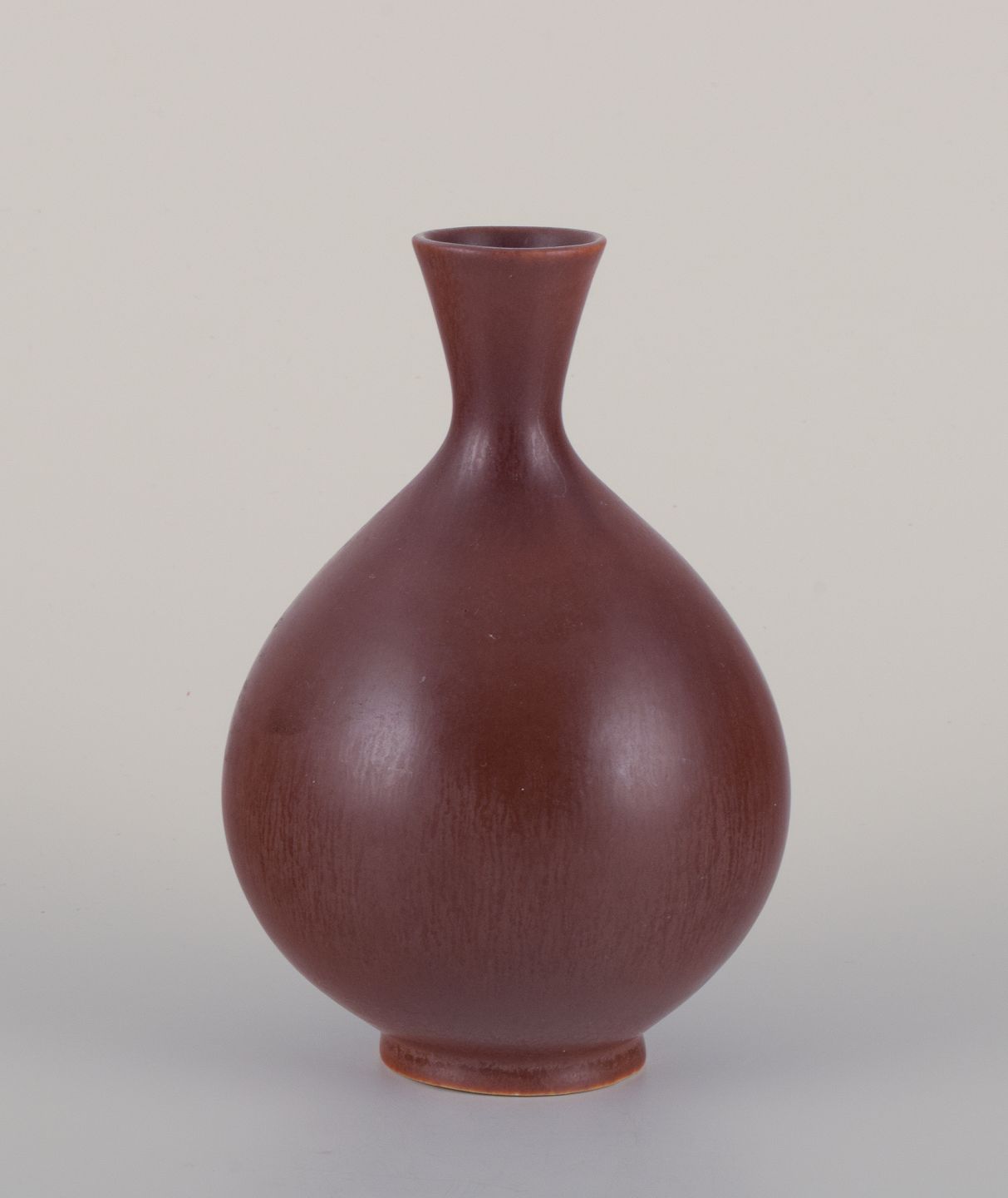 Ceramic vase with brown glaze. Bulbous shape.