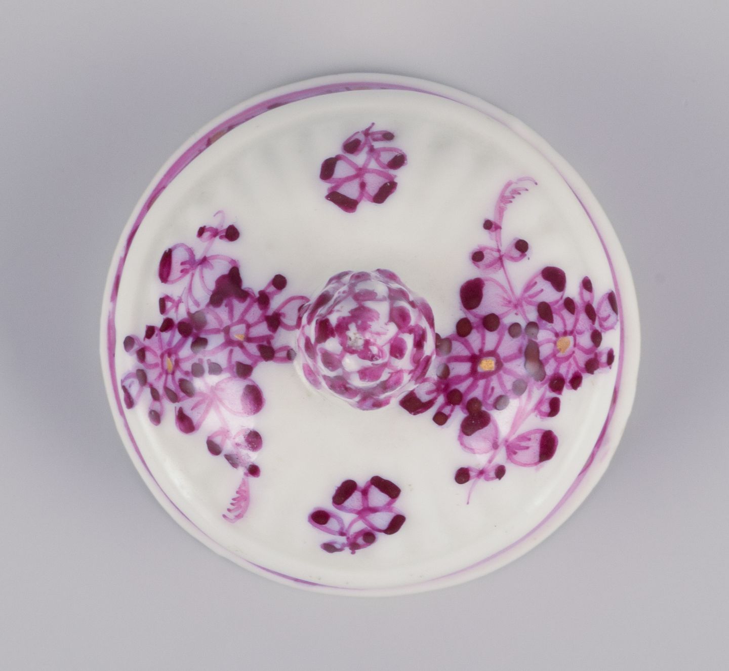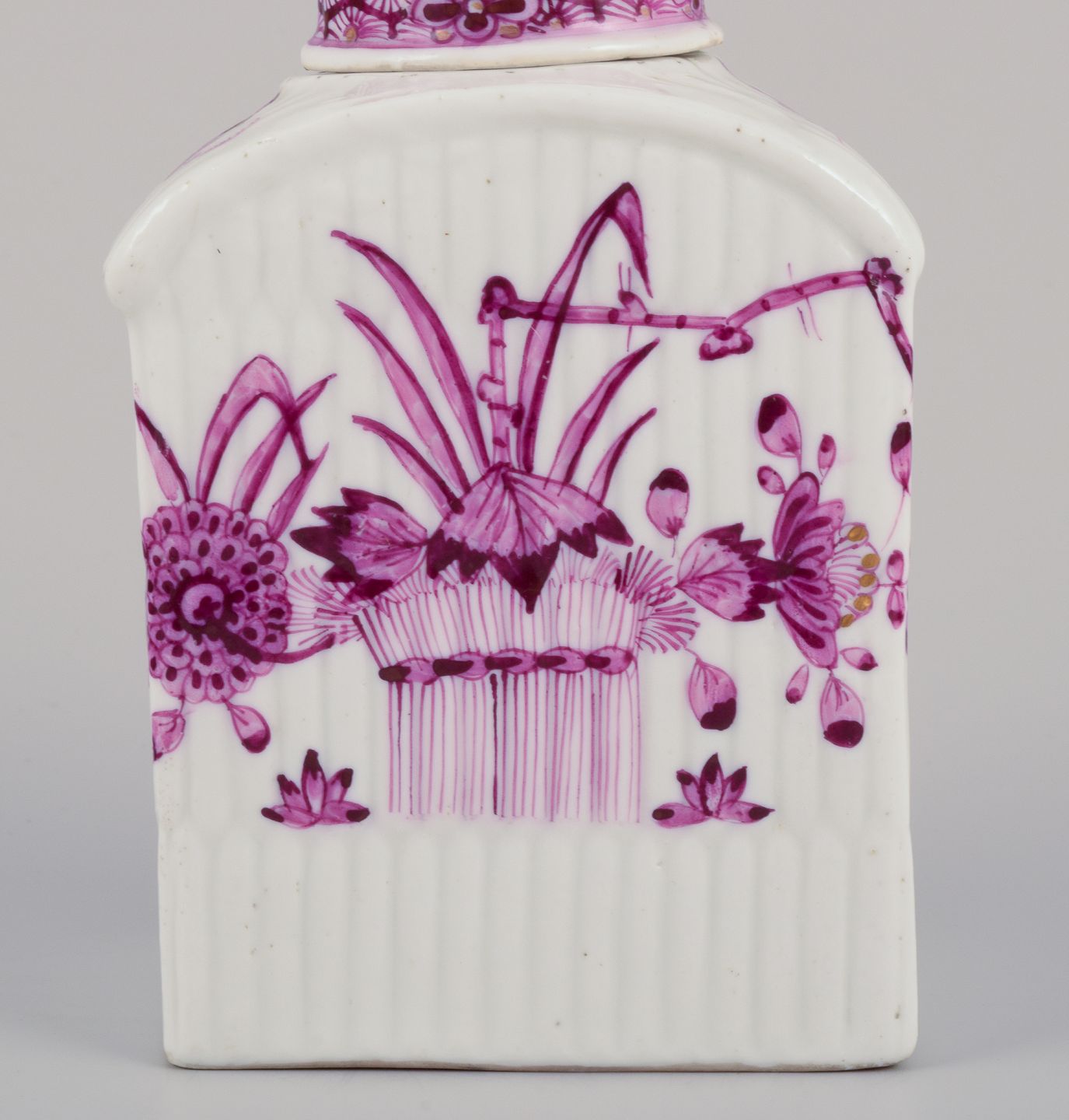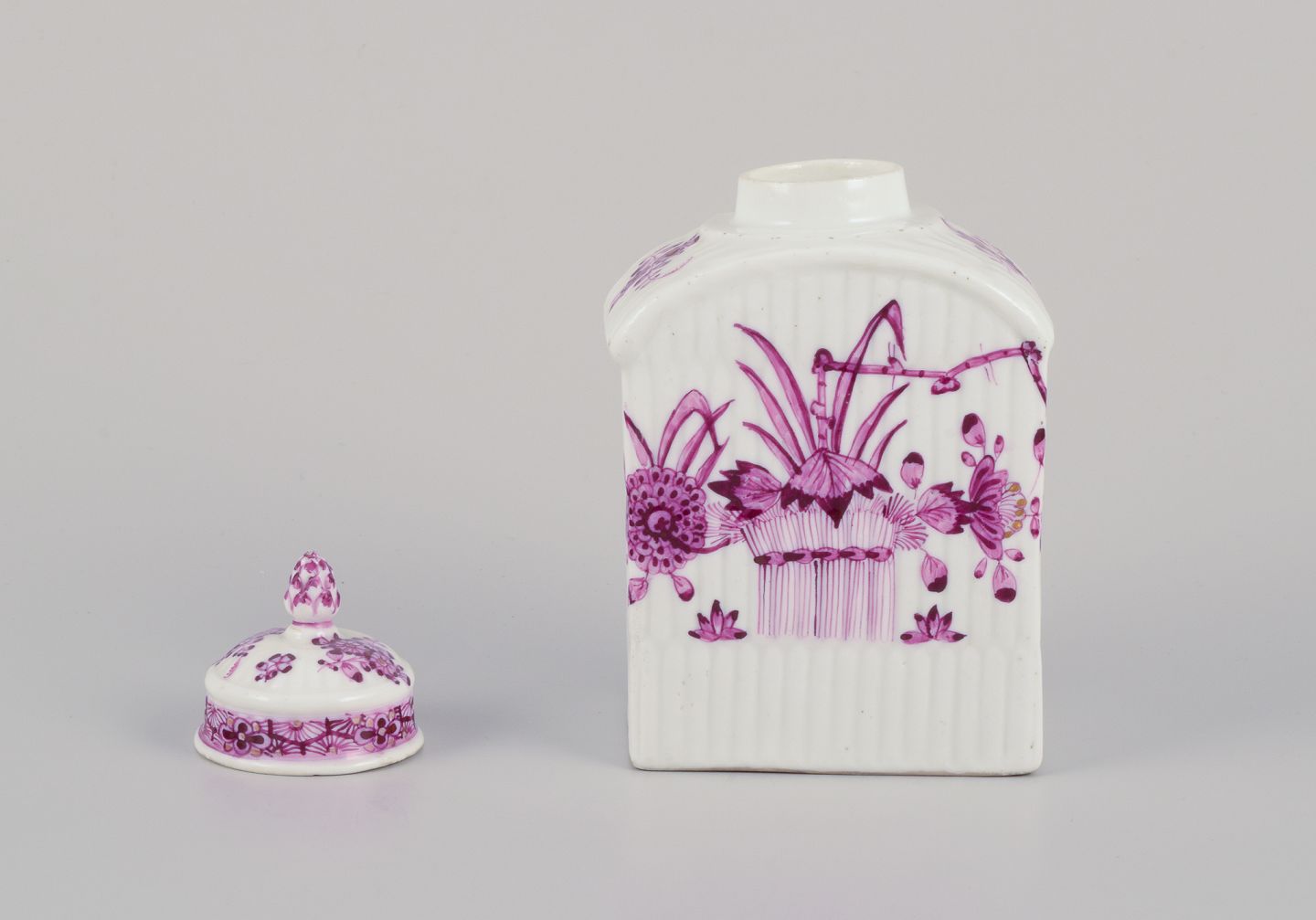 Meissen, Germany. Antique tea caddy hand-painted in purple decoration. Approximately from the 1800s. Marcolini mark. In perfect condition. Dimensions: Width 7.5 cm x Depth 5.0 cm x Height 12.5 cm.