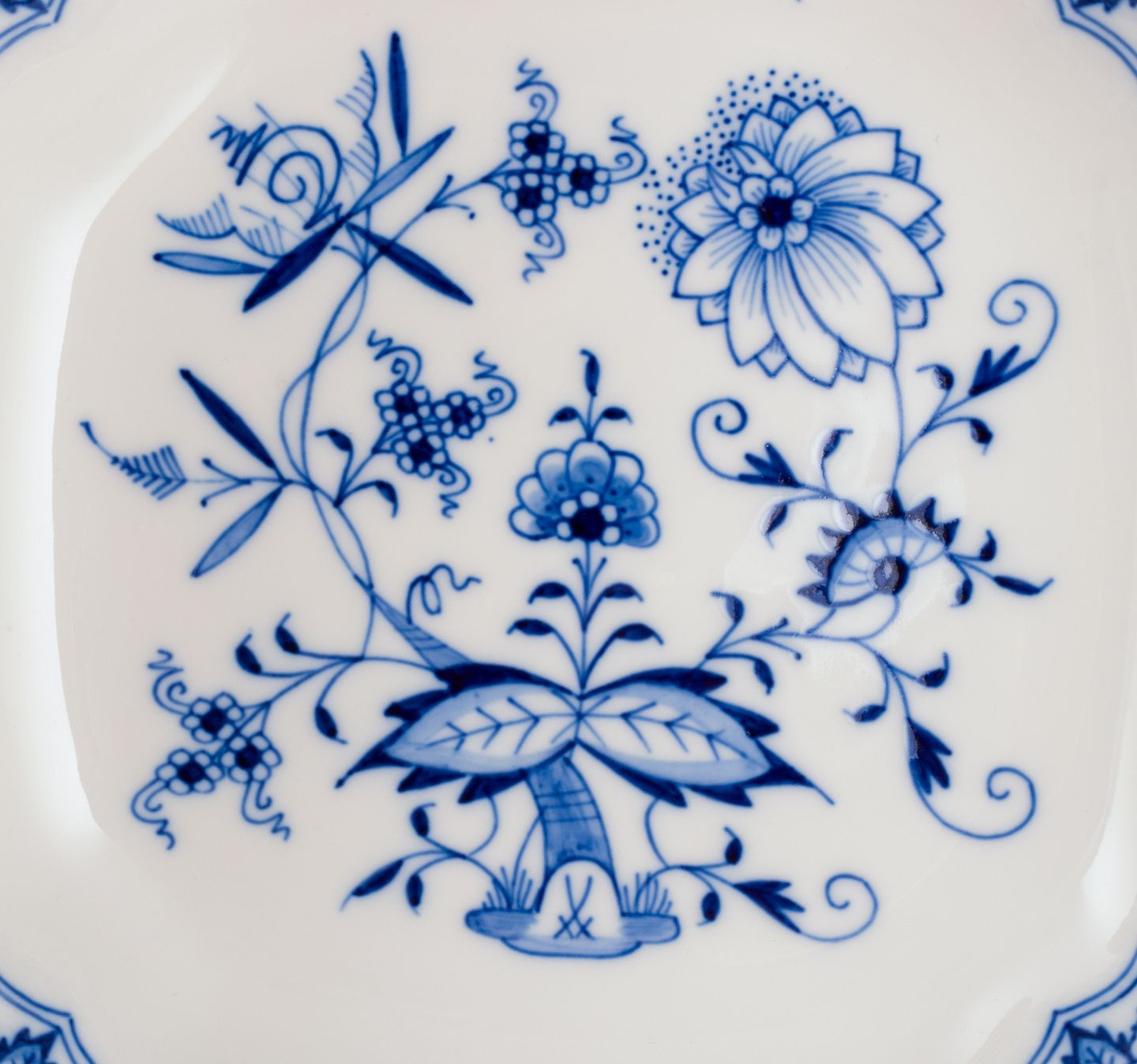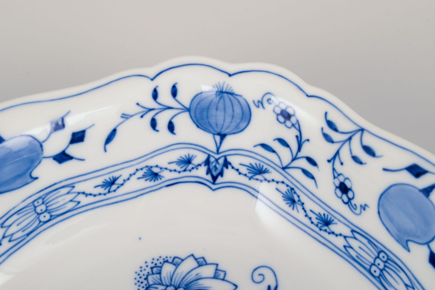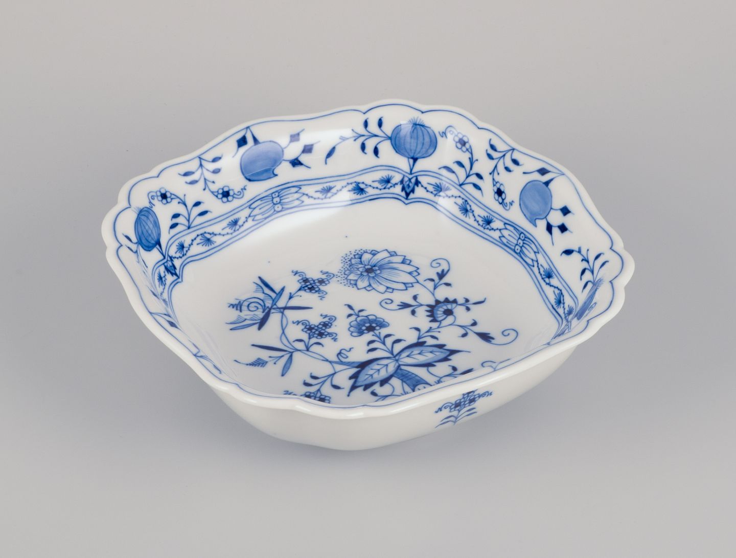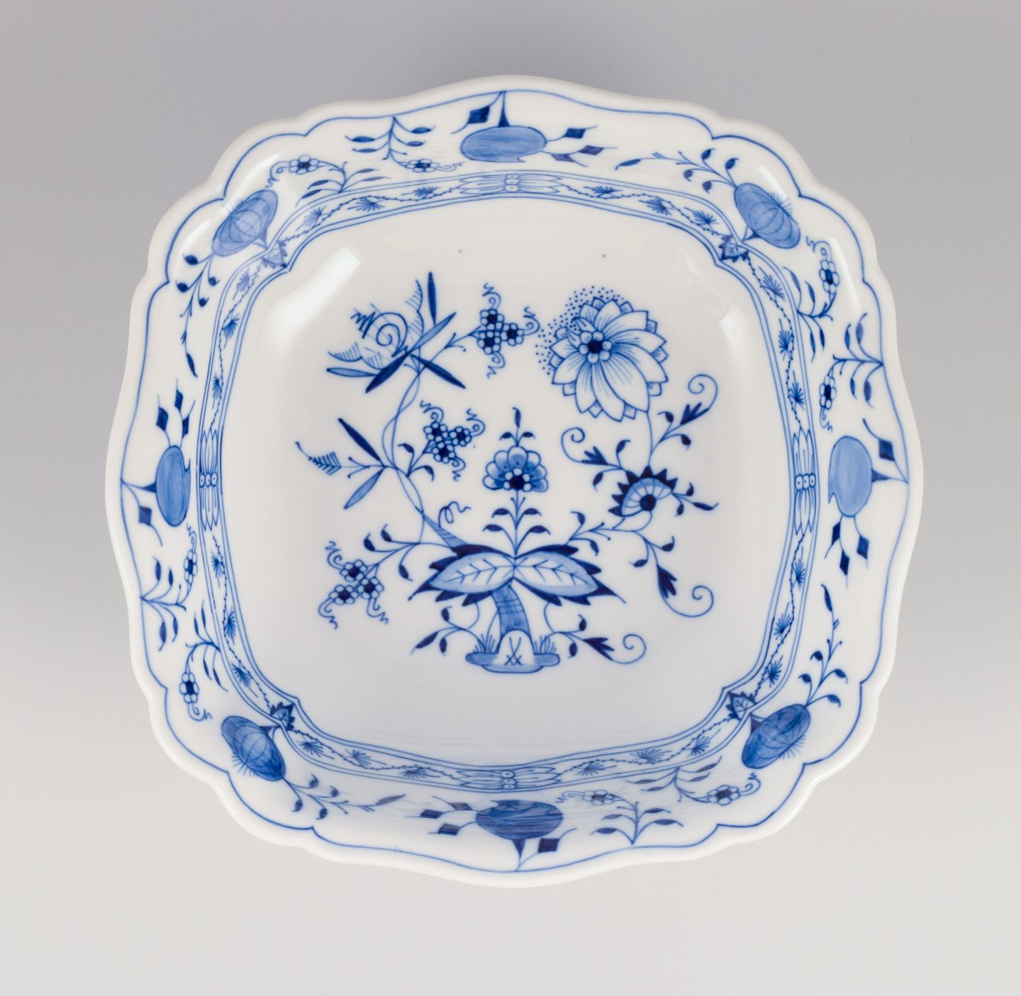 Meissen, Germany. Blue Onion pattern square bowl. Hand-painted porcelain.
