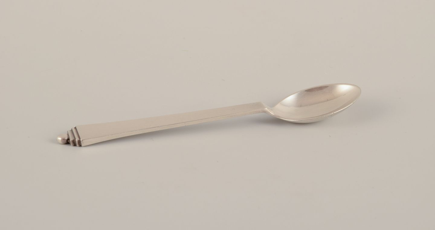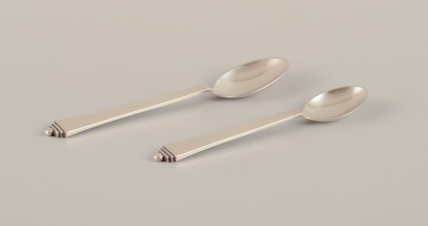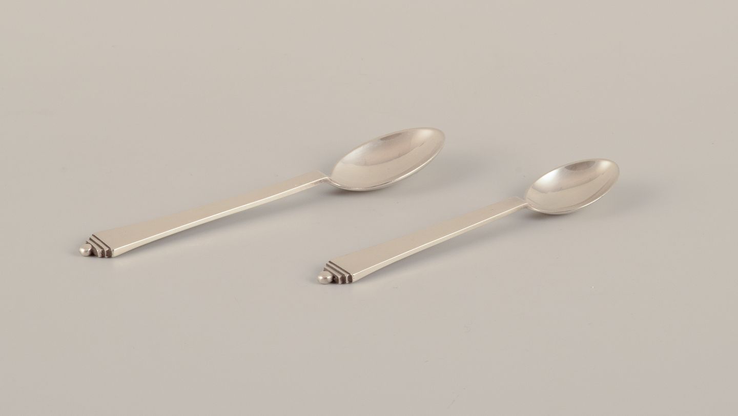 Georg Jensen Pyramid. Two coffee spoons in sterling silver. With 1933-1944 hallmarks. Perfect condition. Length: 12.0 cm. Length: 10.5 cm.