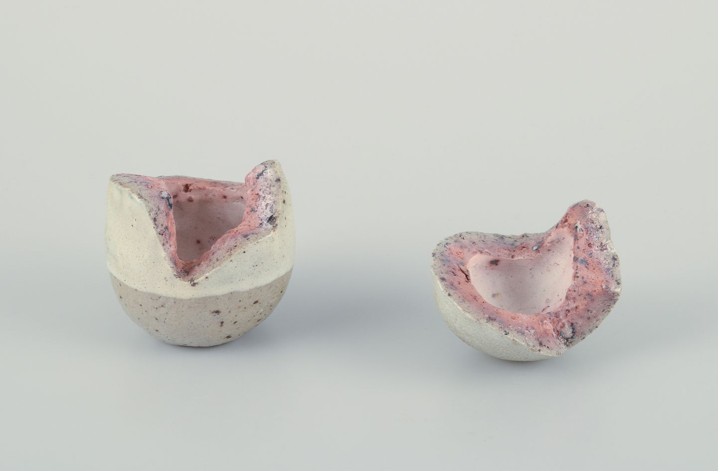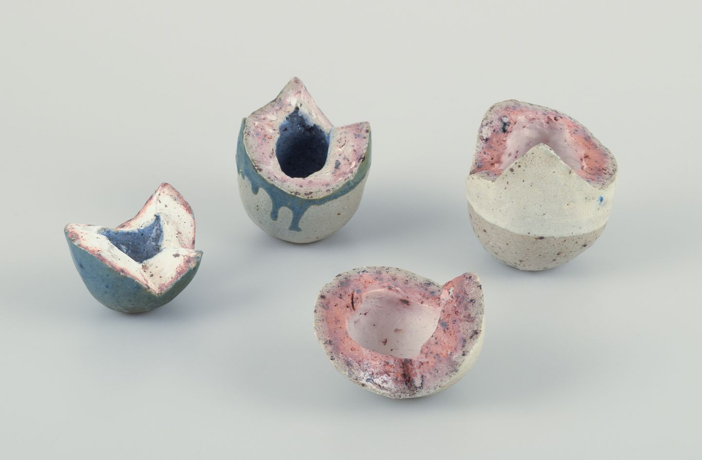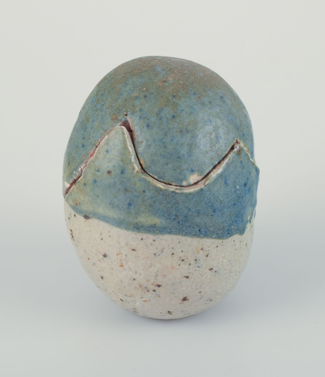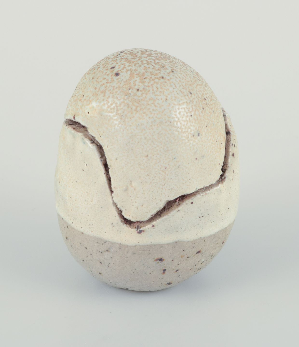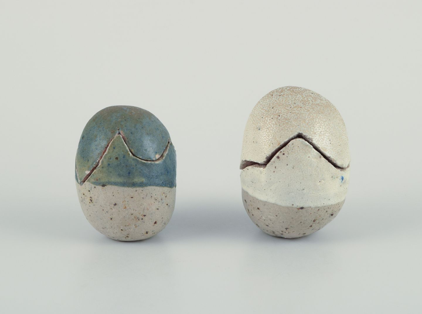 Two egg-shaped unique ceramic sculptures. Divided into two parts.