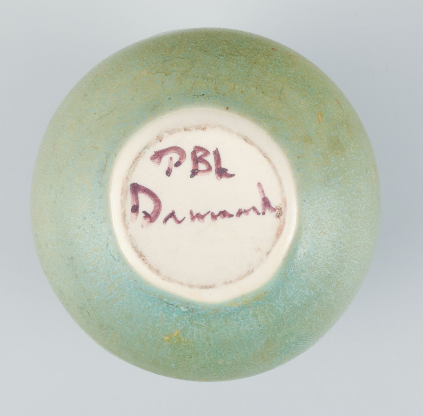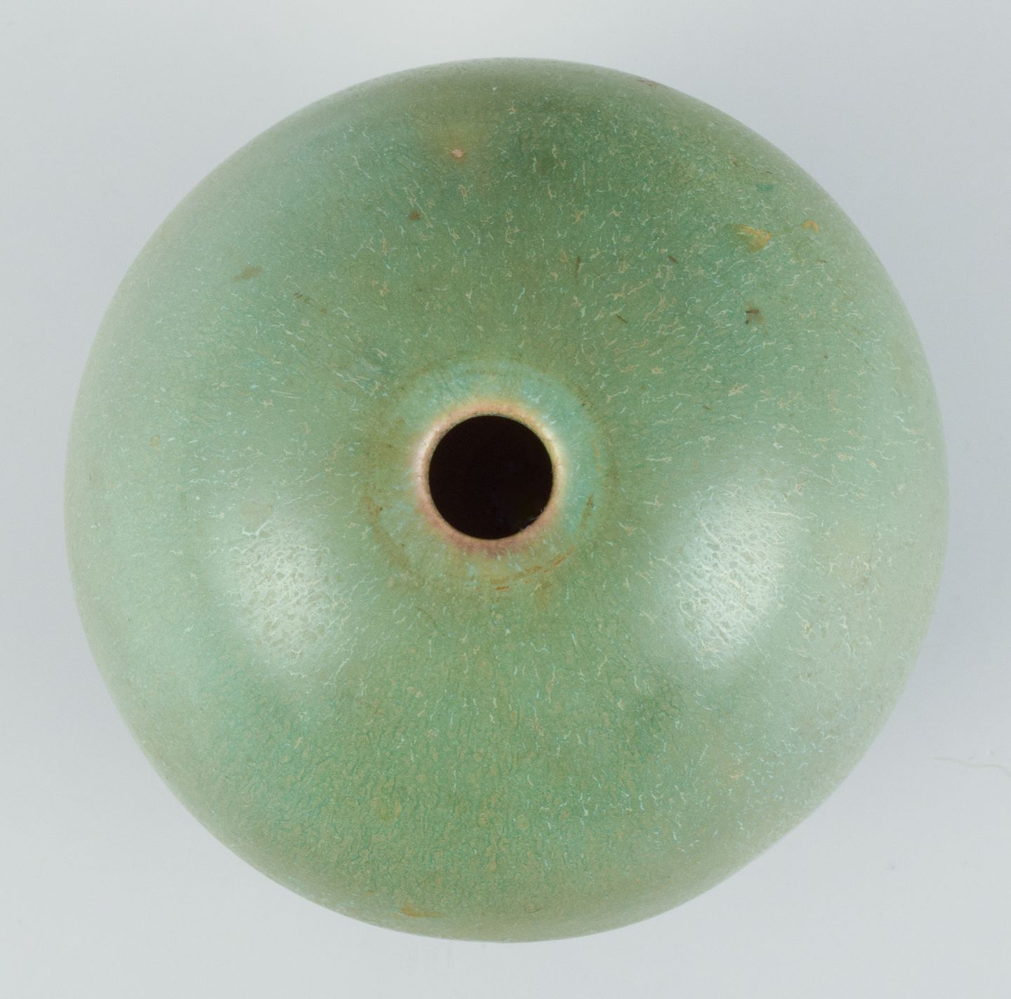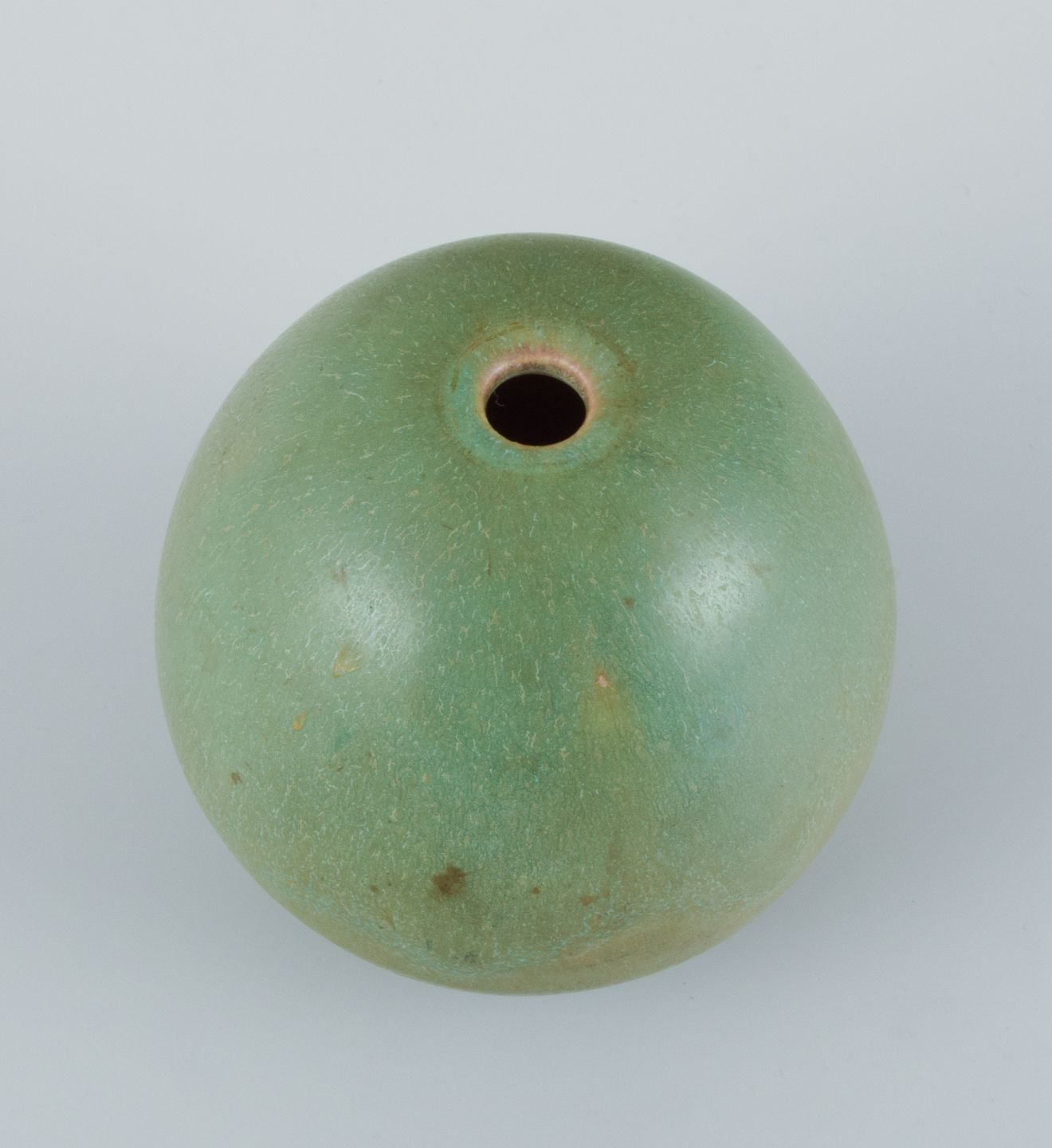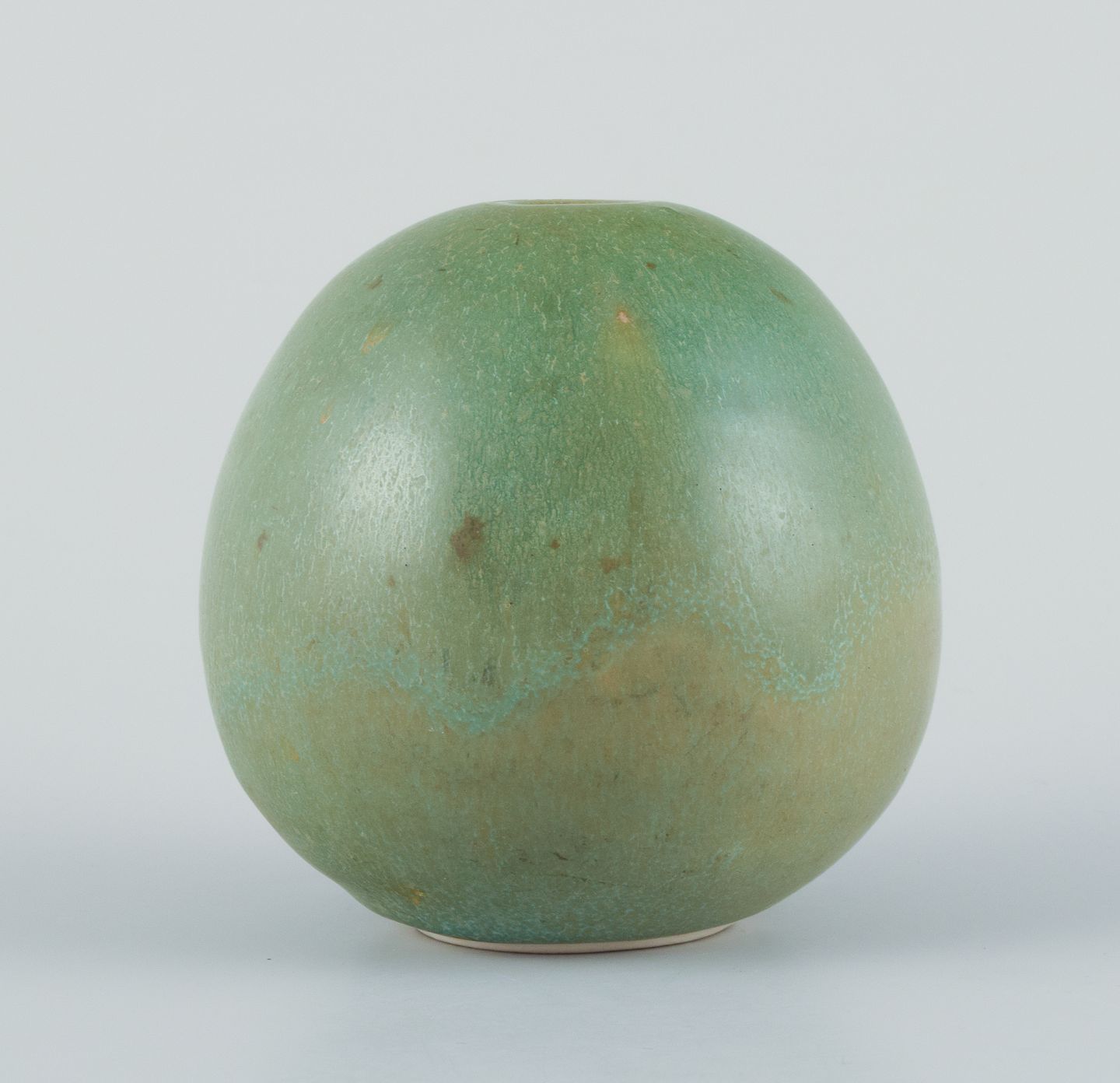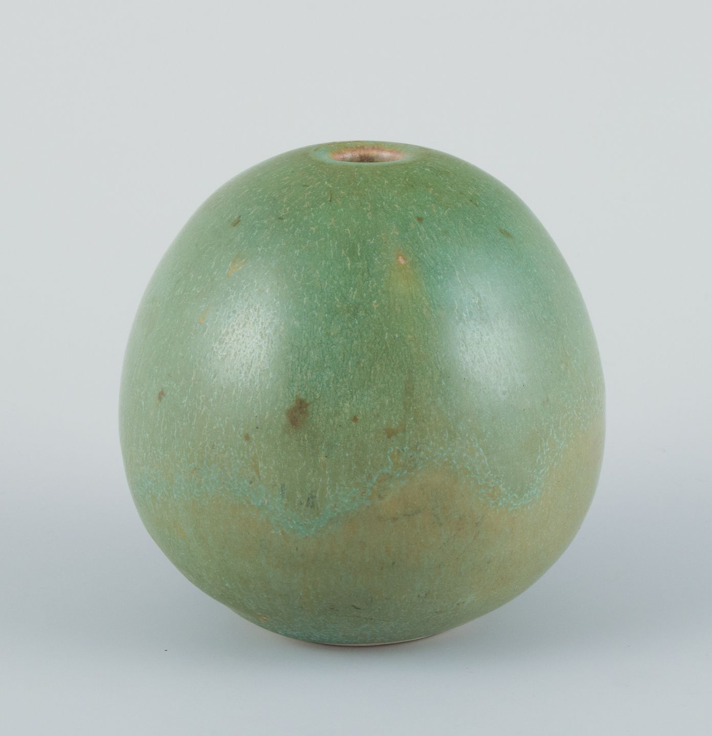 Preben Brandt Larsen, dansk keramiker. Unika keramikvase med glasur i grønne nuancer. Æggeformet.