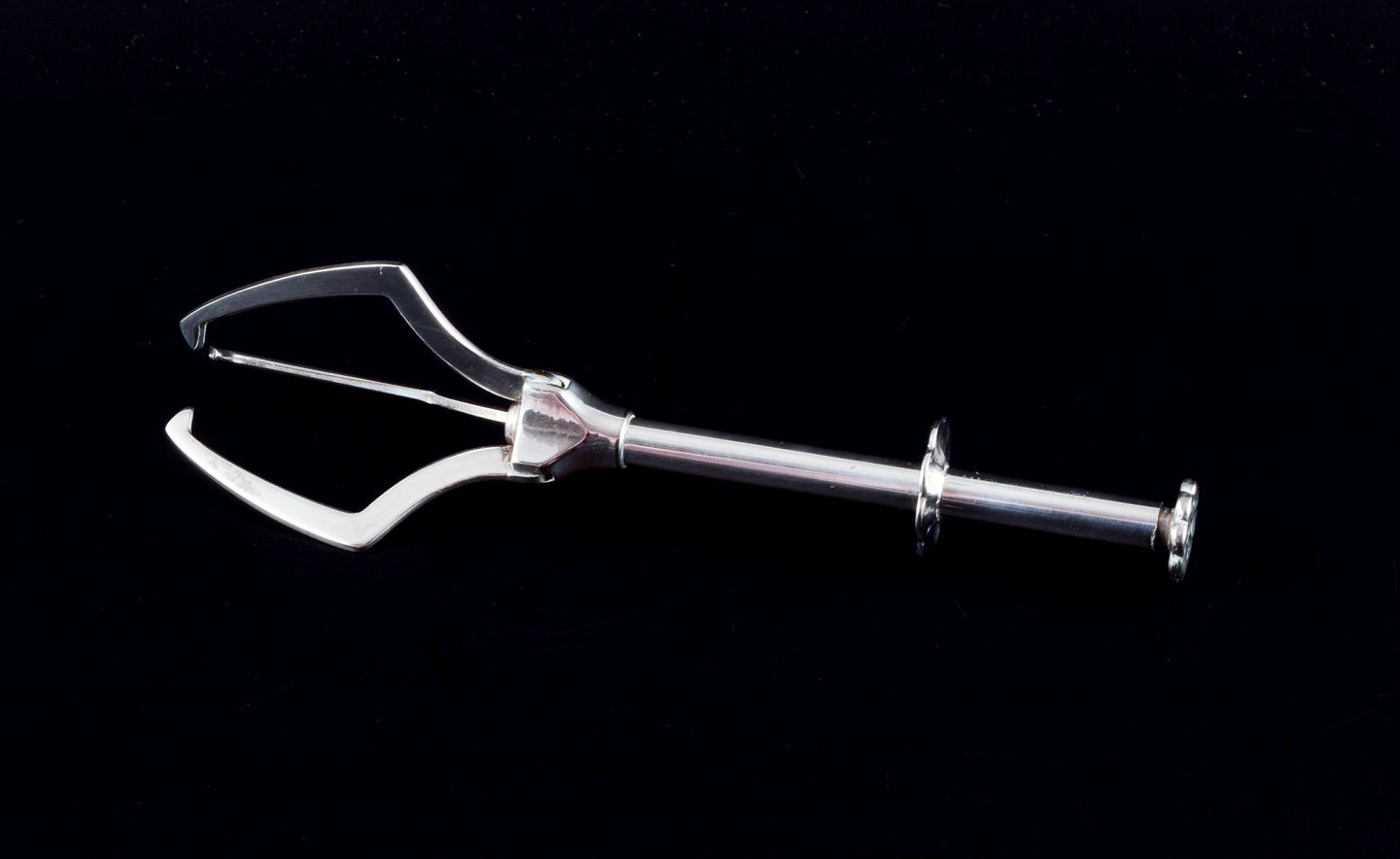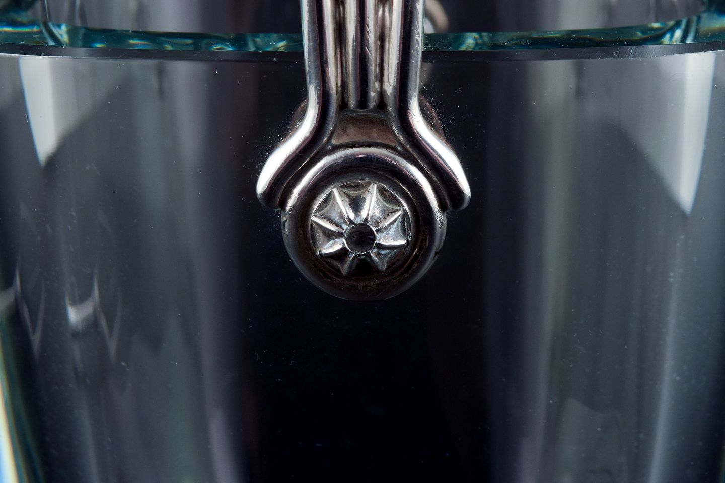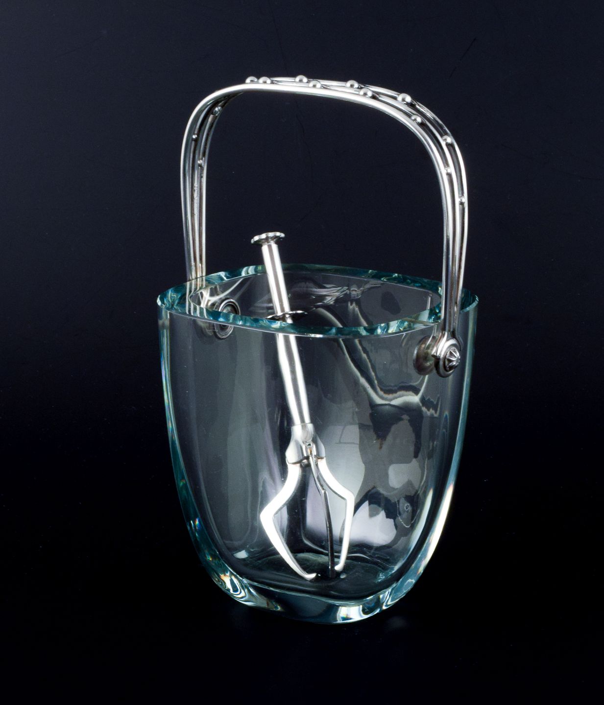 E. Dragsted, Dansk design. Modernistisk isspand i kunstglas med hank i sterlingsølv samt medfølgende is-tang i forsølvet metal.