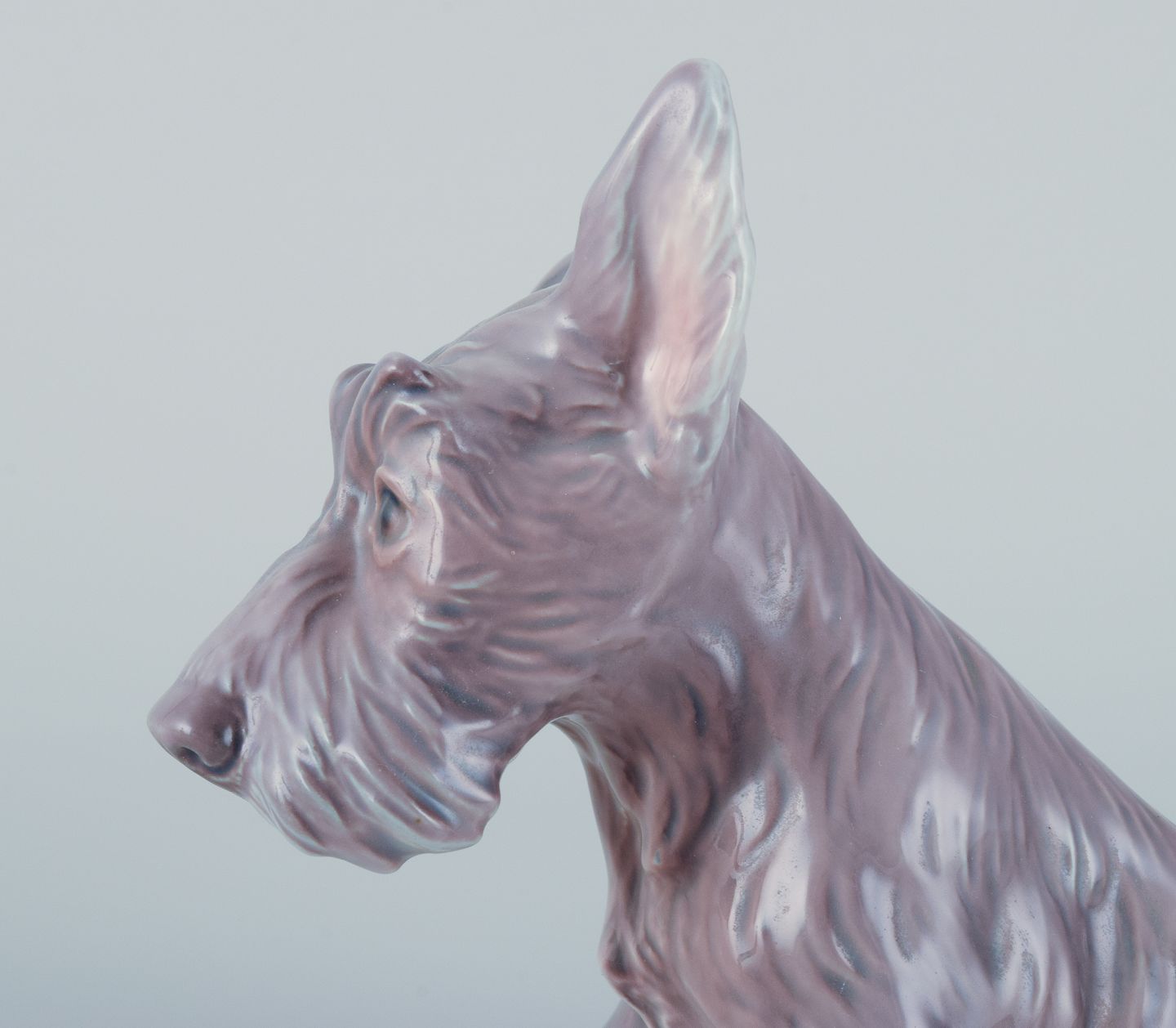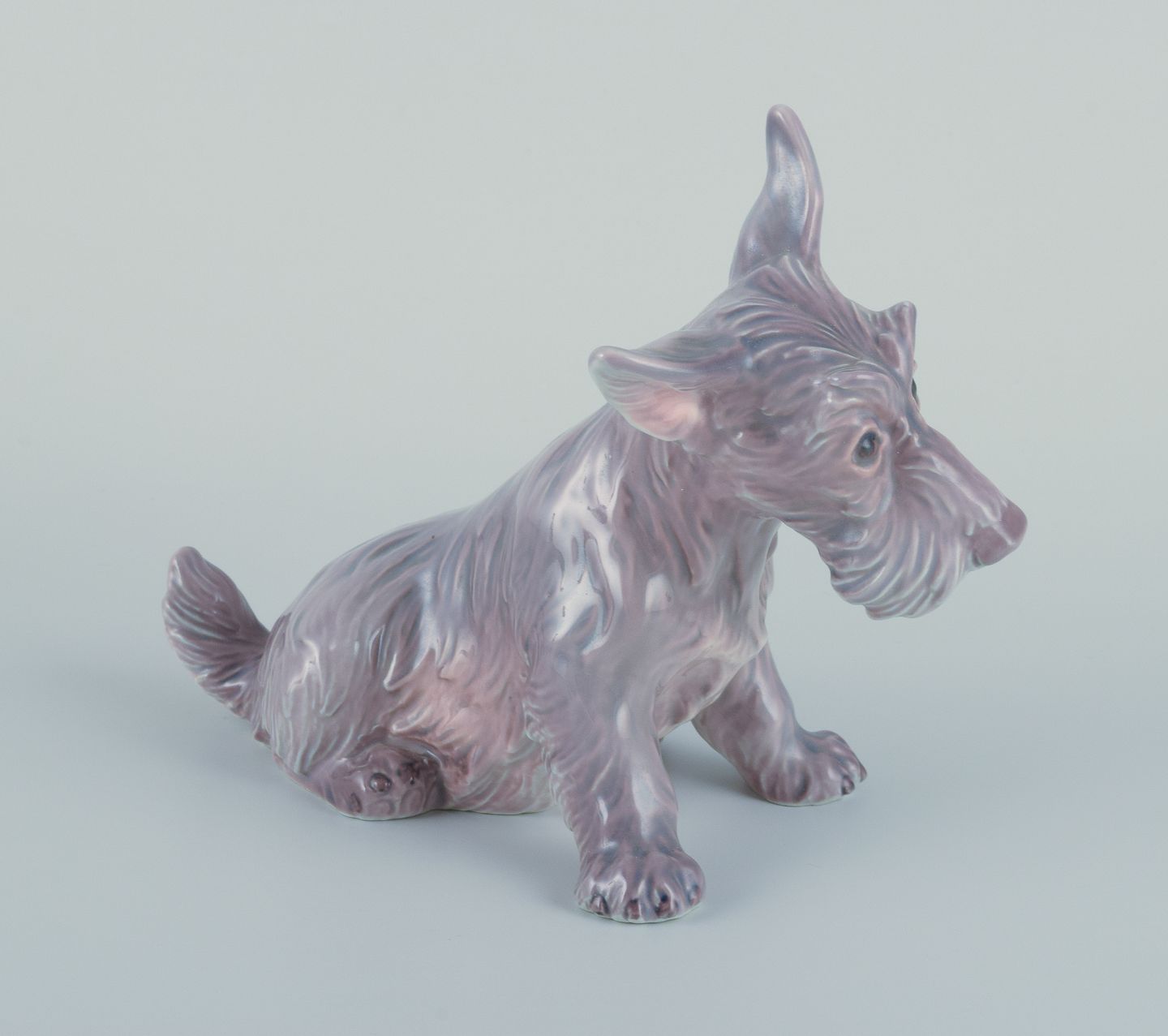 Dahl Jensen, porcelænsfigur af siddende skotsk terrier. Modelnummer 1078. Design Jens Peter Dahl Jensen (1874-1960). Ca.1930’erne. Anden sortering. Perfekt stand. Stemplet. Mål: H 14,5 cm. x L 20,5 cm.