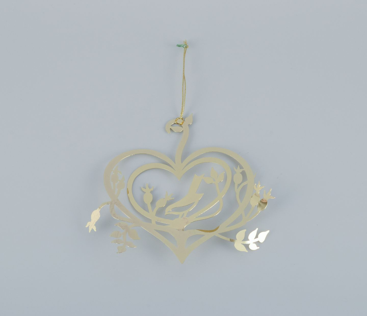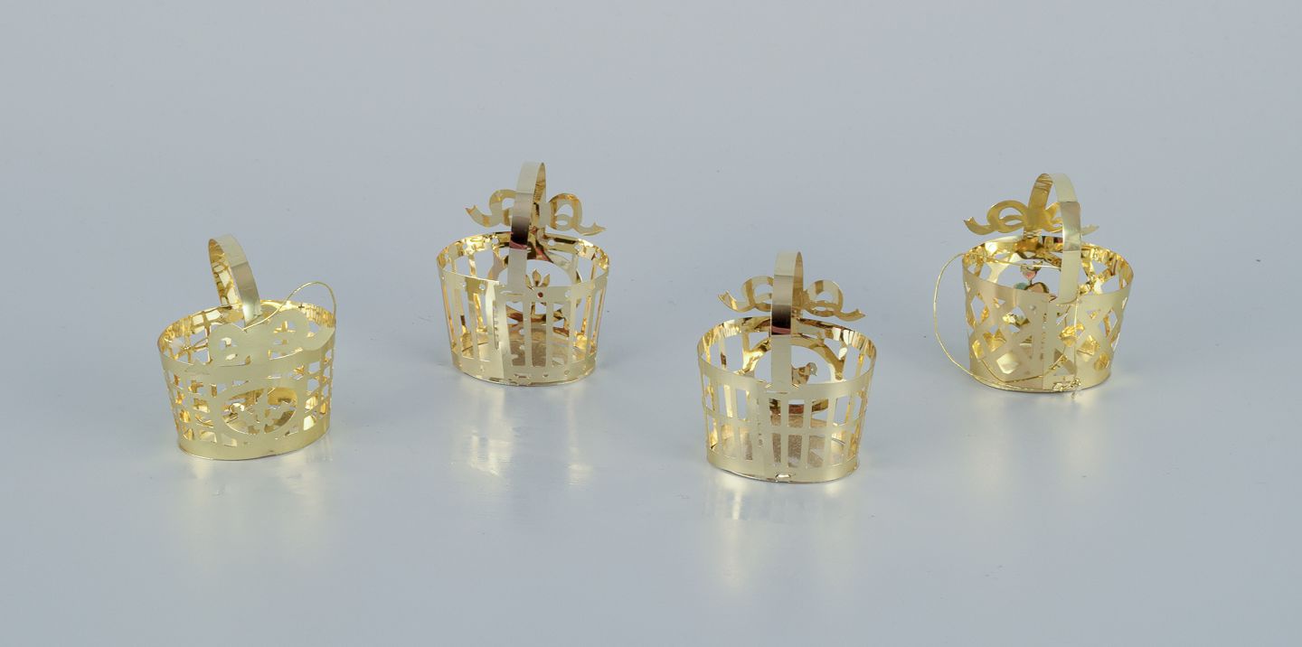Royal Copenhagen ”Royal Christmas”. Ni juledekorationer i messing til ophæng på juletræ og i vinduet.