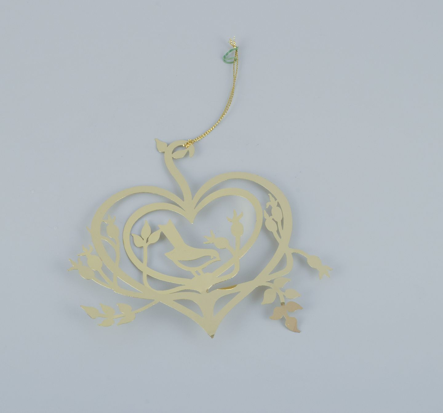 Royal Copenhagen ”Royal Christmas”. Ni juledekorationer i messing til ophæng på juletræ og i vinduet.