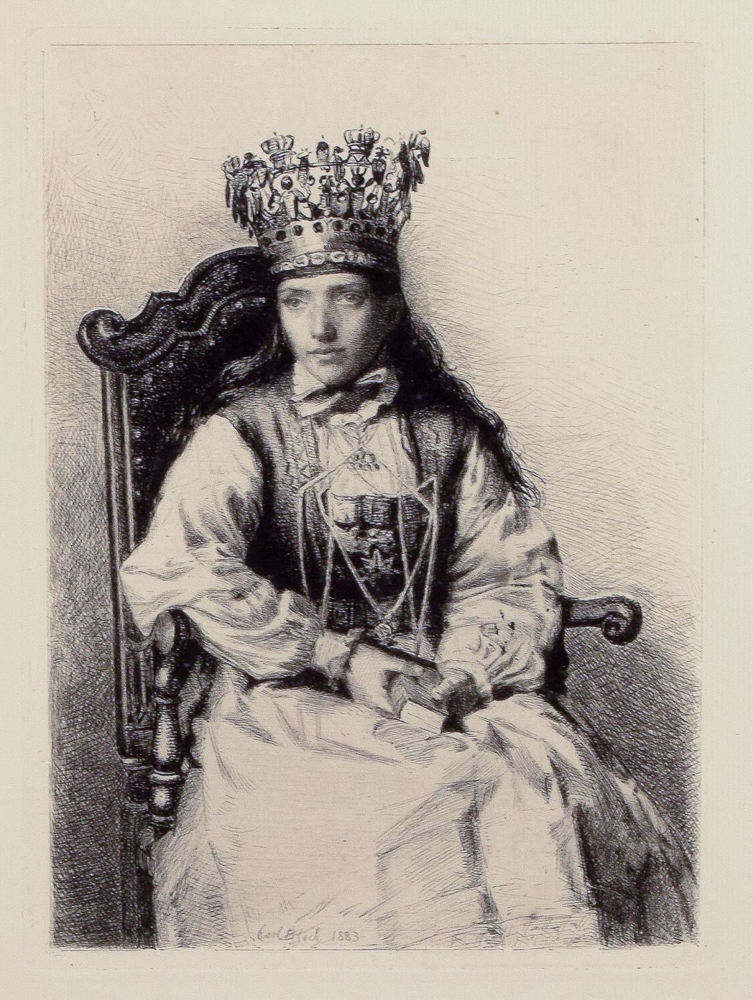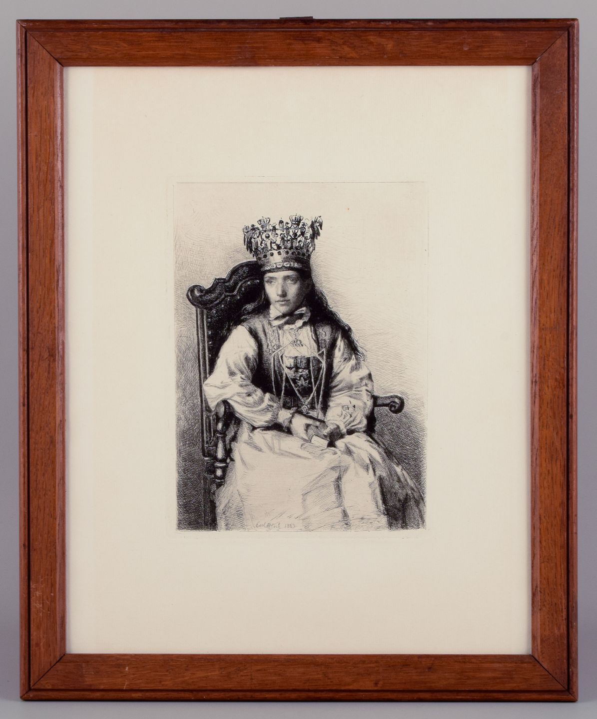 Carl Bloch (1834–1890). Etching of "A Norwegian Bride". Dated 1883. In perfect condition. Signed. Total dimensions: 32.3 cm x 39.4 cm. Antique frame in dark oak.
