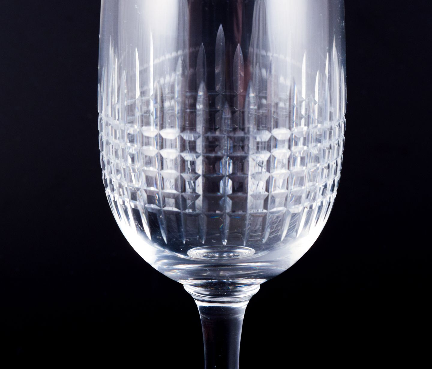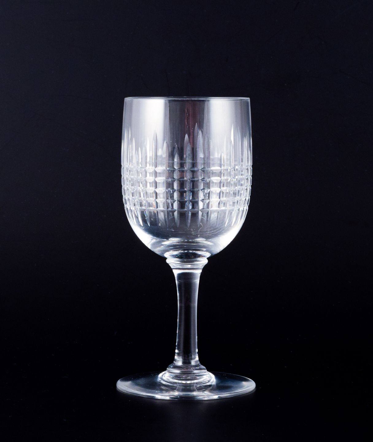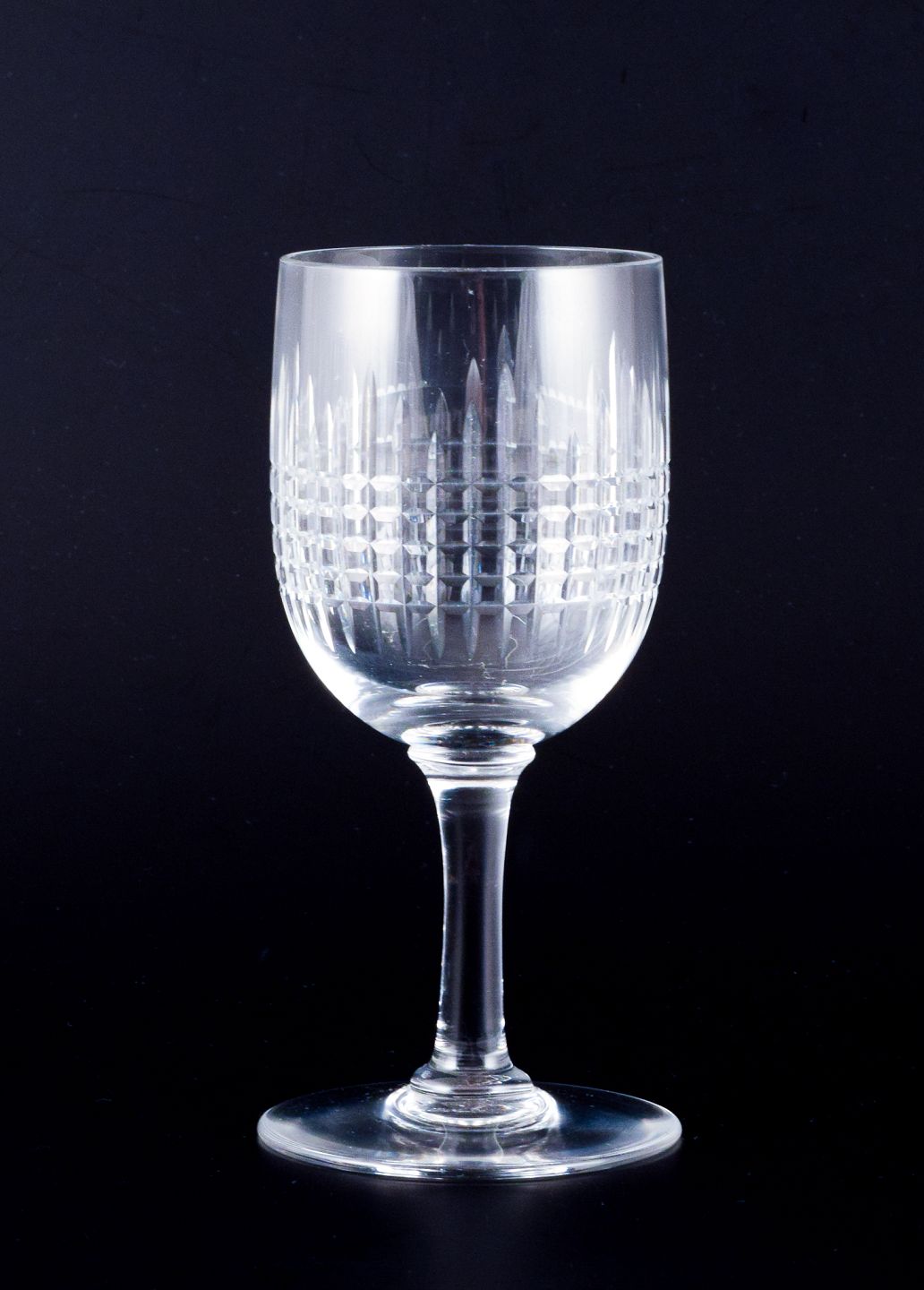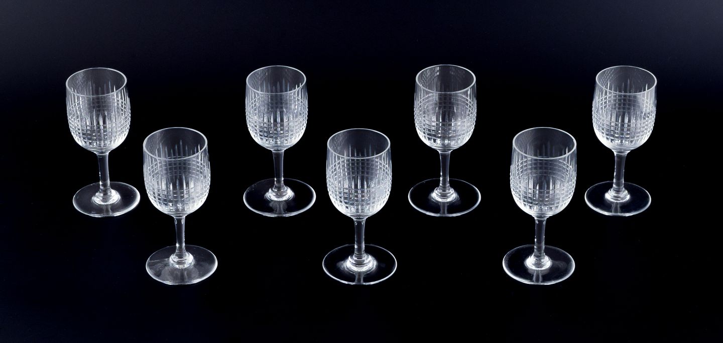 Baccarat, Frankrig. Et sæt på syv ”Nancy” rødvinsglas i klart krystalglas. Ca. 1930. I perfekt stand. Mål: H 12,5 cm. x 5,3 cm.