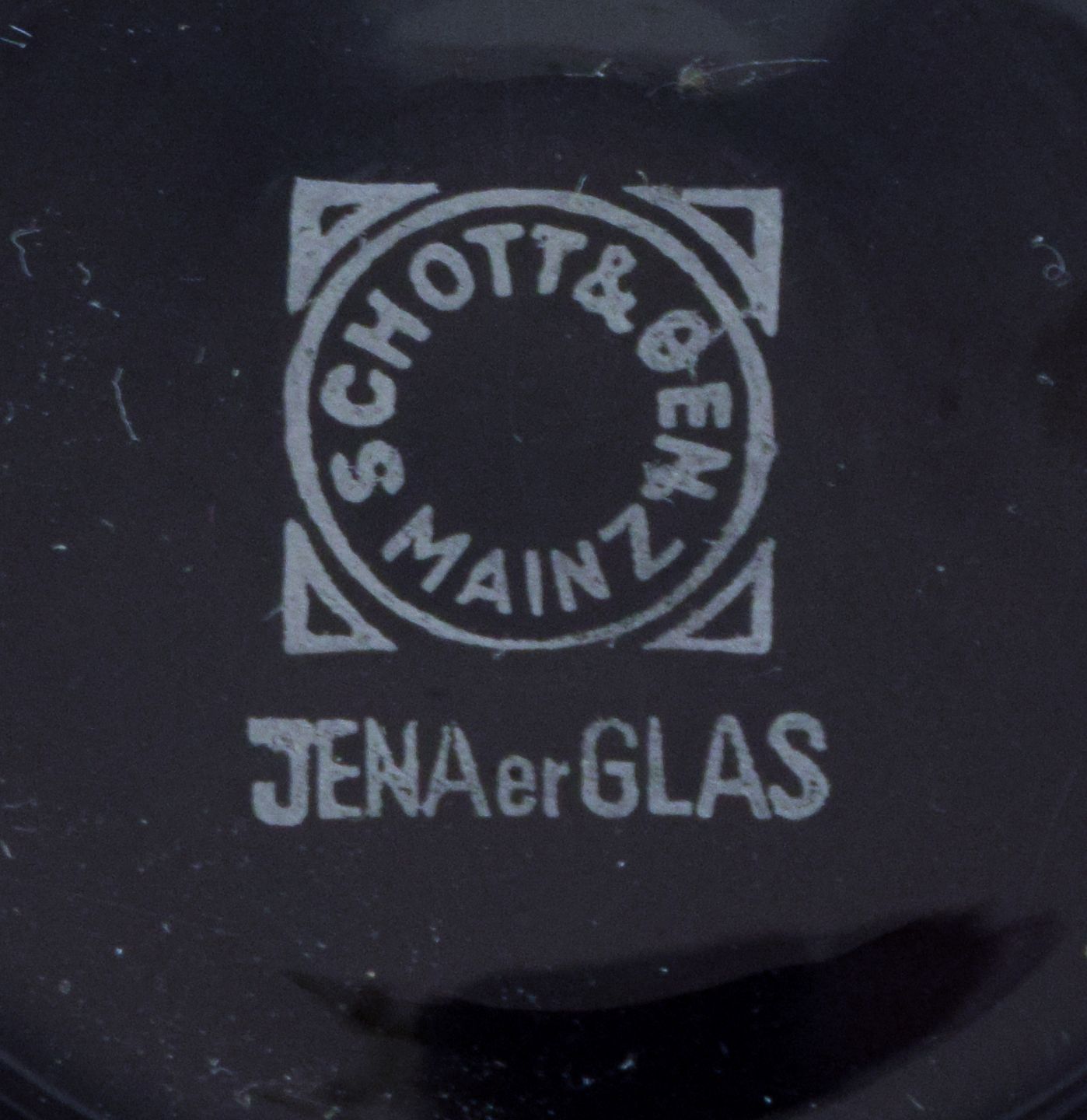 Jena-Glas, Schott & Gen/Mainz, Tyskland. Flødekande og sukkerskål på bakke.