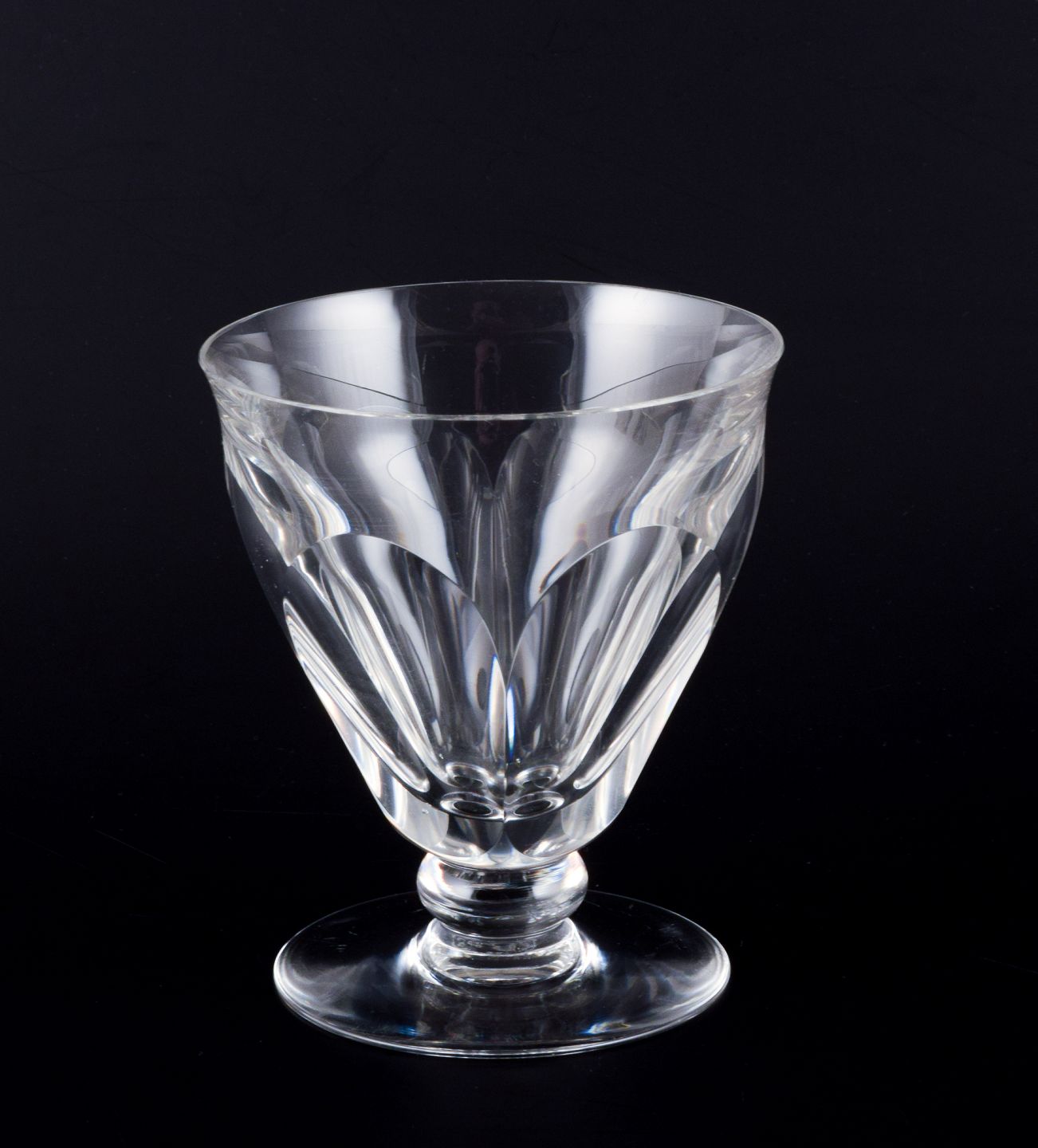 Baccarat, Frankrig. Et sæt på tre Art Deco rødvinsglas i facetslebet krystalglas.