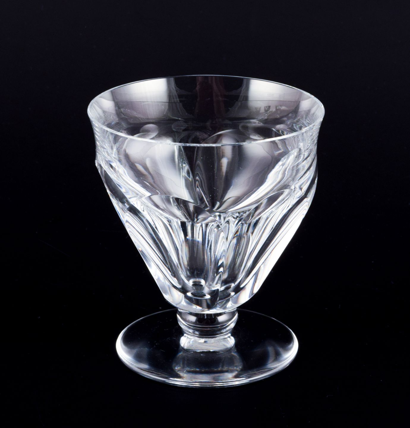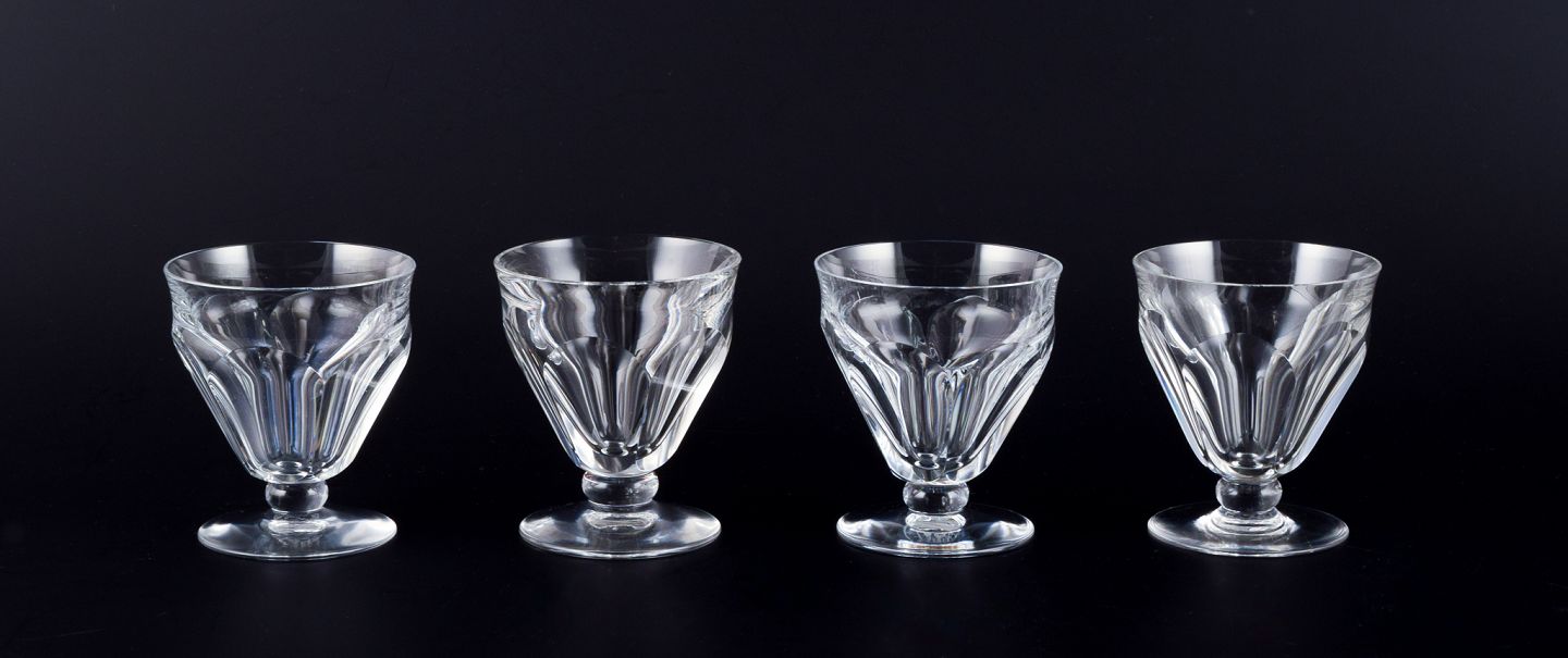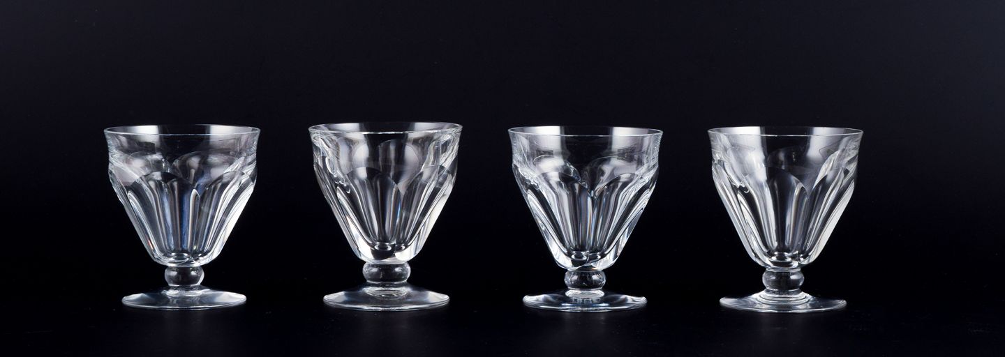 Baccarat, Frankrig. Et sæt på fire Art Deco hvidvinsglas i facetslebet krystalglas. På rund fod. 1930/40’erne. Stemplet. Perfekt stand. Mål: D 7,5 cm. x H 8,5 cm.