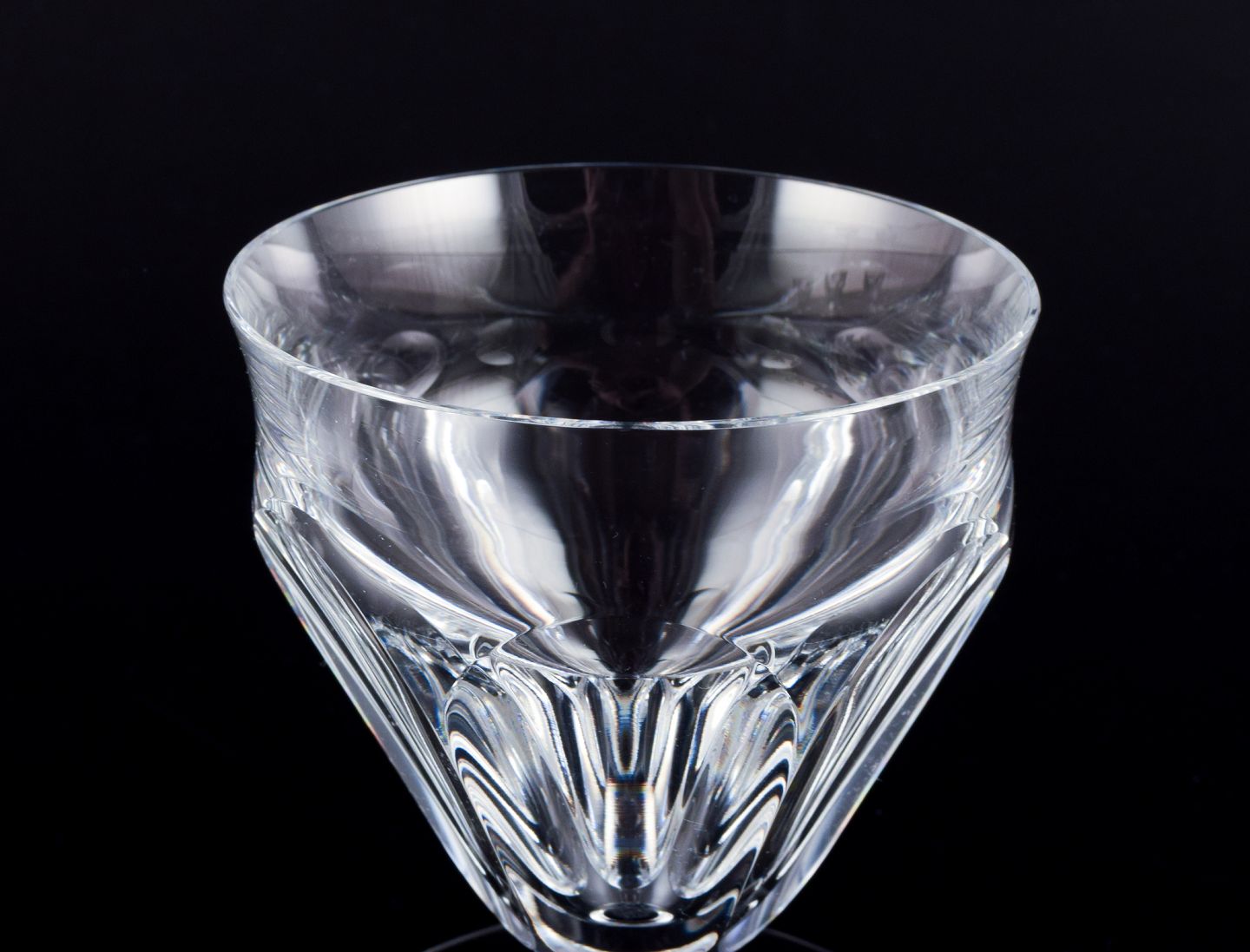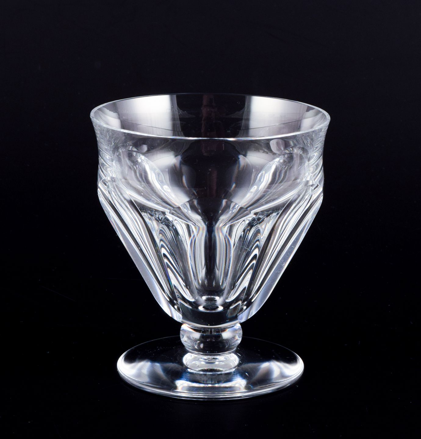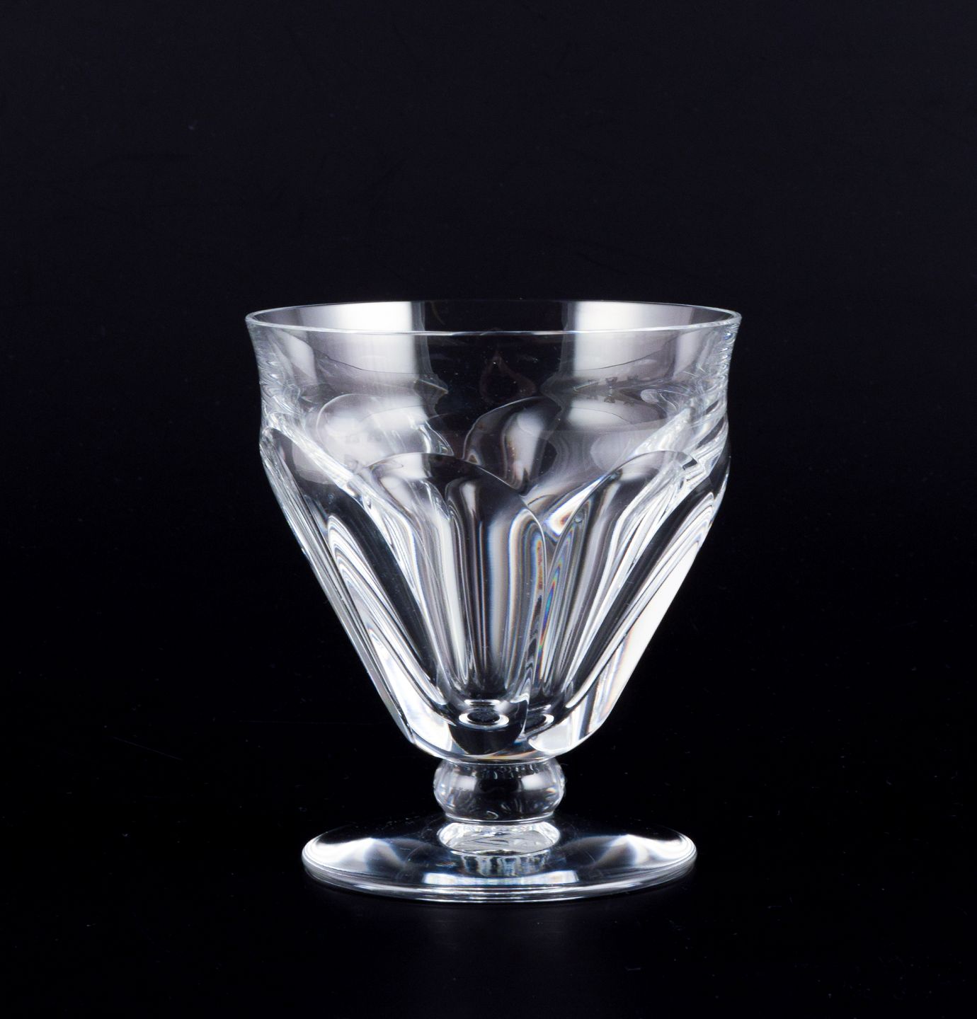 Baccarat, Frankrig. Et sæt på fire Art Deco hvidvinsglas i facetslebet krystalglas. På rund fod. 1930/40’erne. Stemplet. Perfekt stand. Mål: D 7,5 cm. x H 8,5 cm.