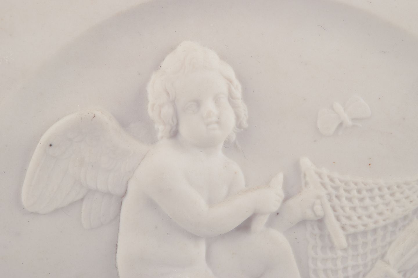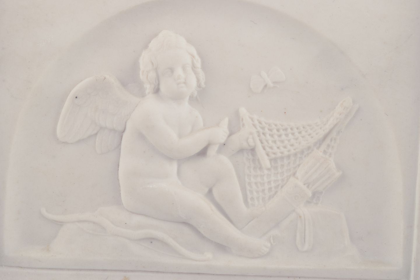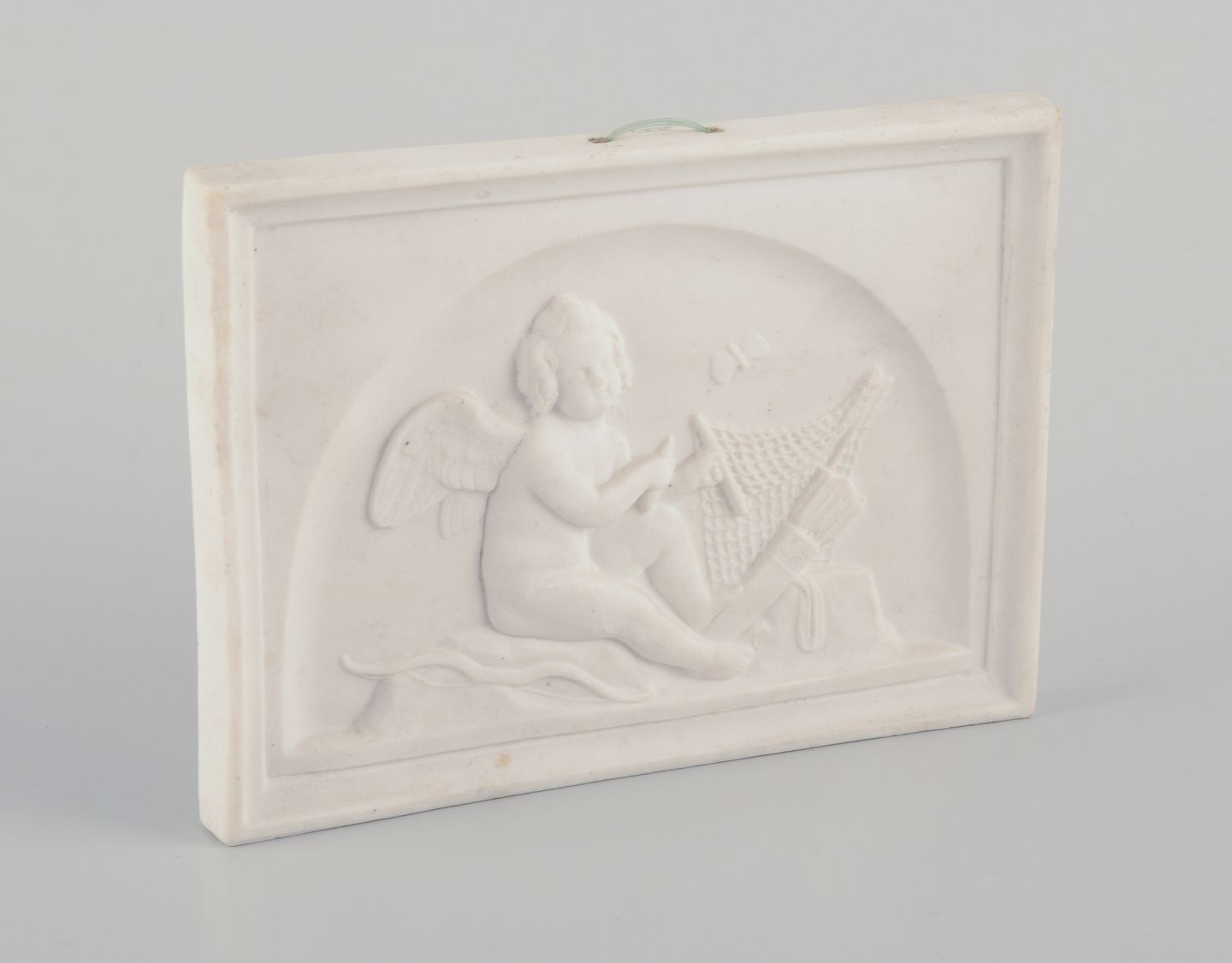 Bertel Thorvaldsen for Bing & Grøndahl. Amor makes a net. Biscuit relief.