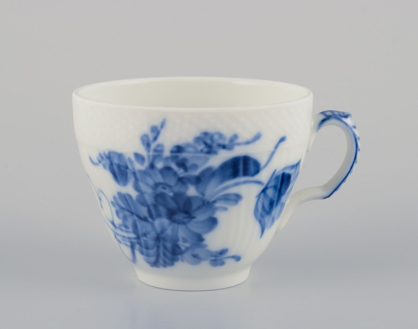 Royal Copenhagen Blå Blomst Svejfet. Et sæt på seks kaffekopper med tilhørende underkopper.