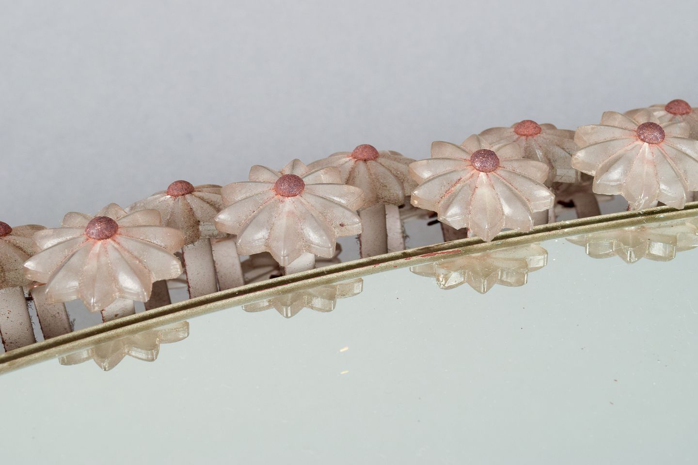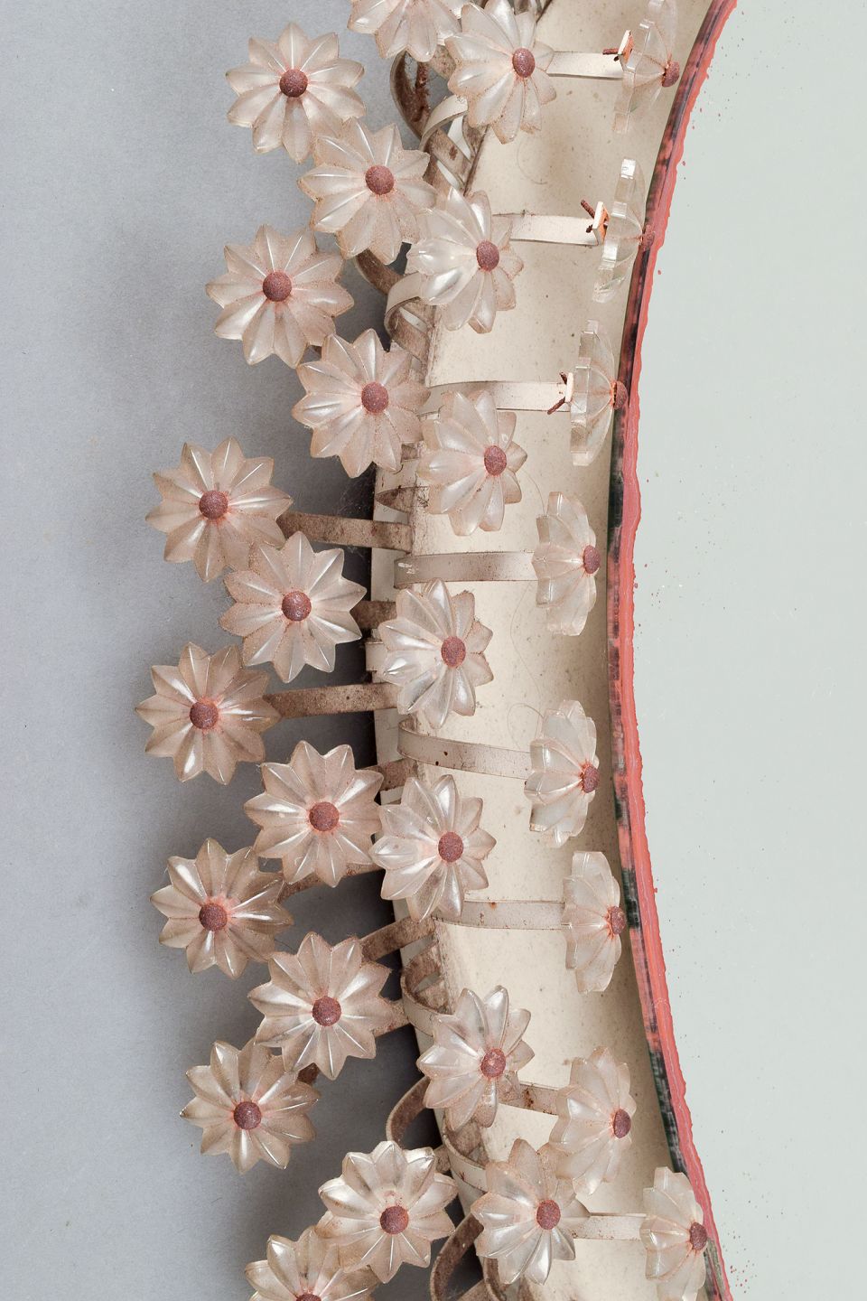 Emil Stejnar for Rupert Nikoll. Oplyst spejl omkranset af blomster i akrylplast med stilke i stål.