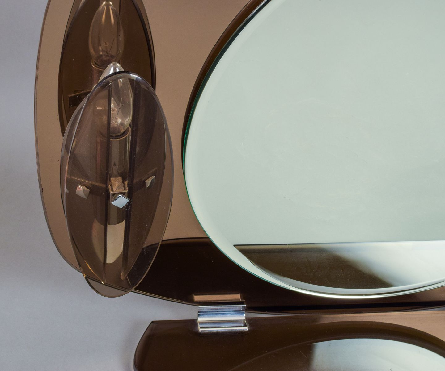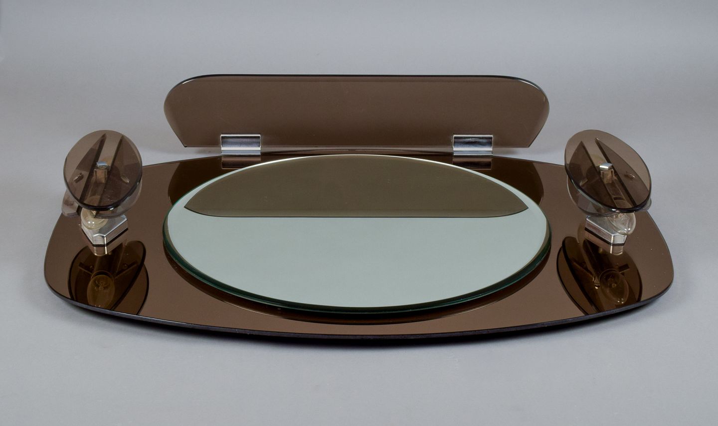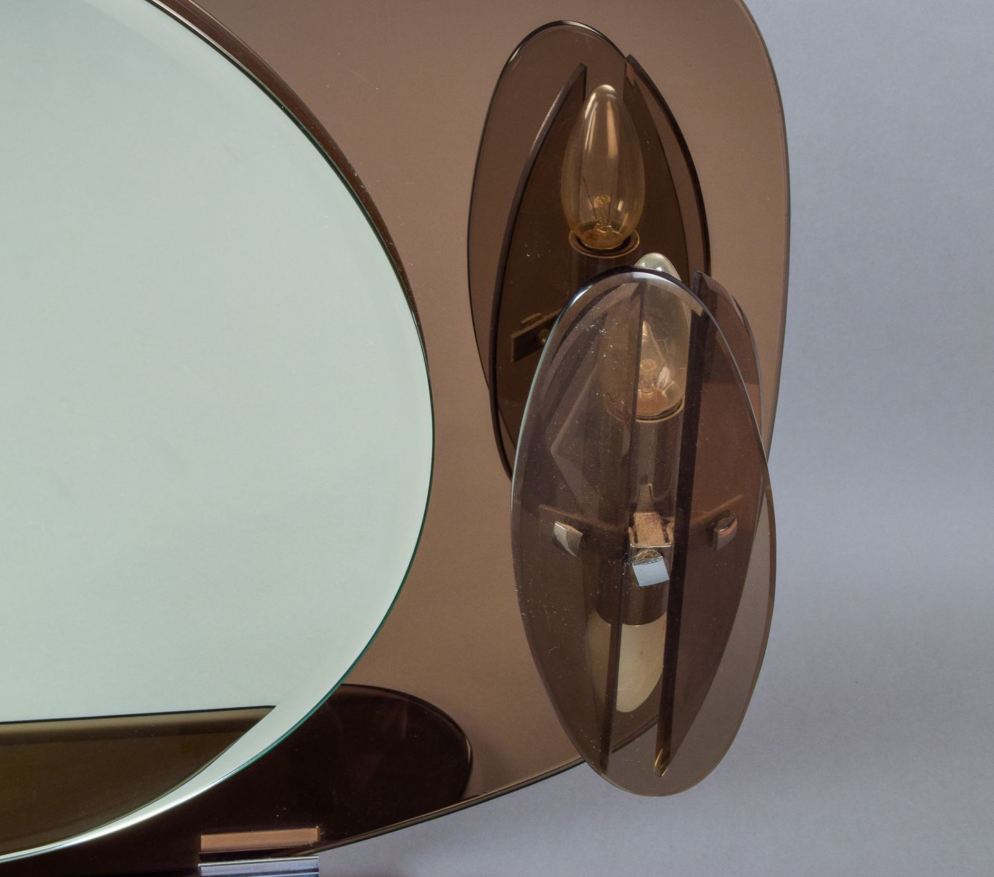 Fontana Arte, Italien. Stort vægspejl i røgfarvet glas. 1980´erne. I perfekt stand. Mål: B 81,0 cm. x H 61,0 cm. x D 10,5 cm.