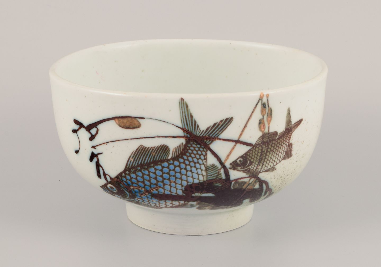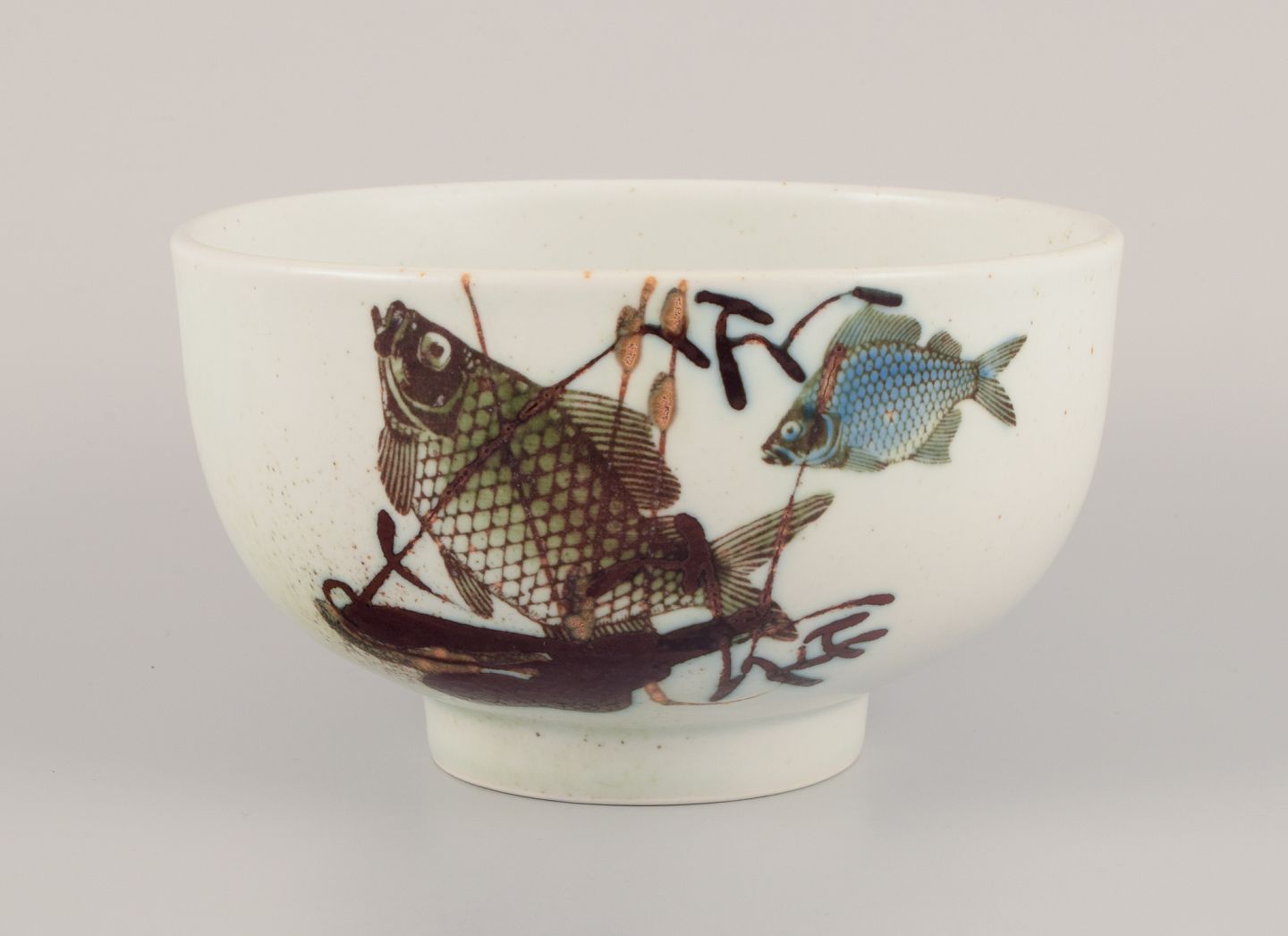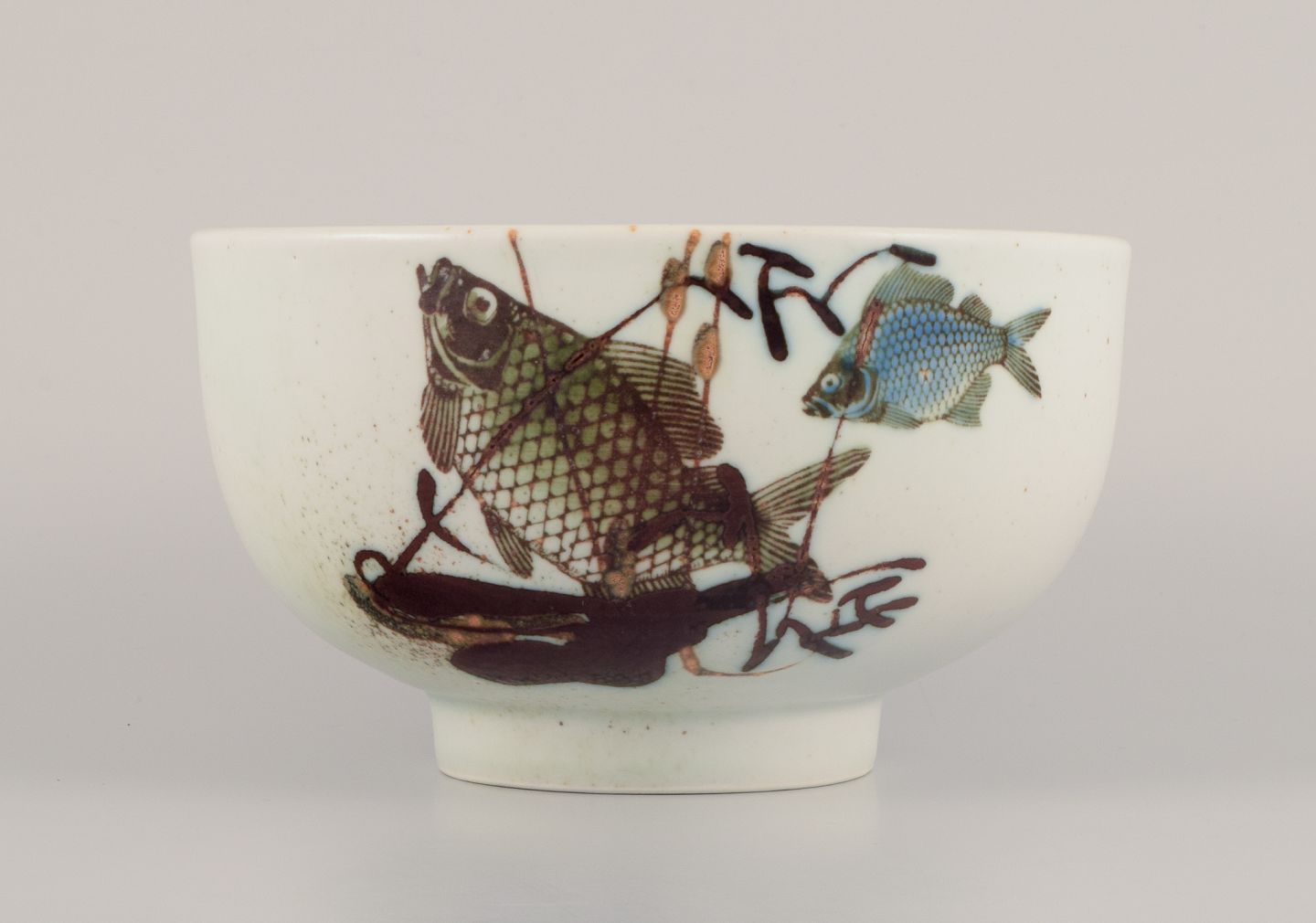 Nils Thorsson for Royal Copenhagen. Faience bowl with fish motifs. Dating: 1975-1979. Perfect condition. First factory quality. Marked. Dimensions: Diameter 17.0 cm x Height 10.0 cm.