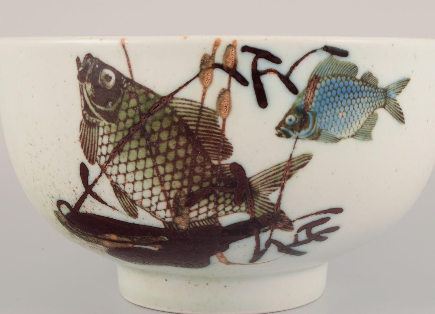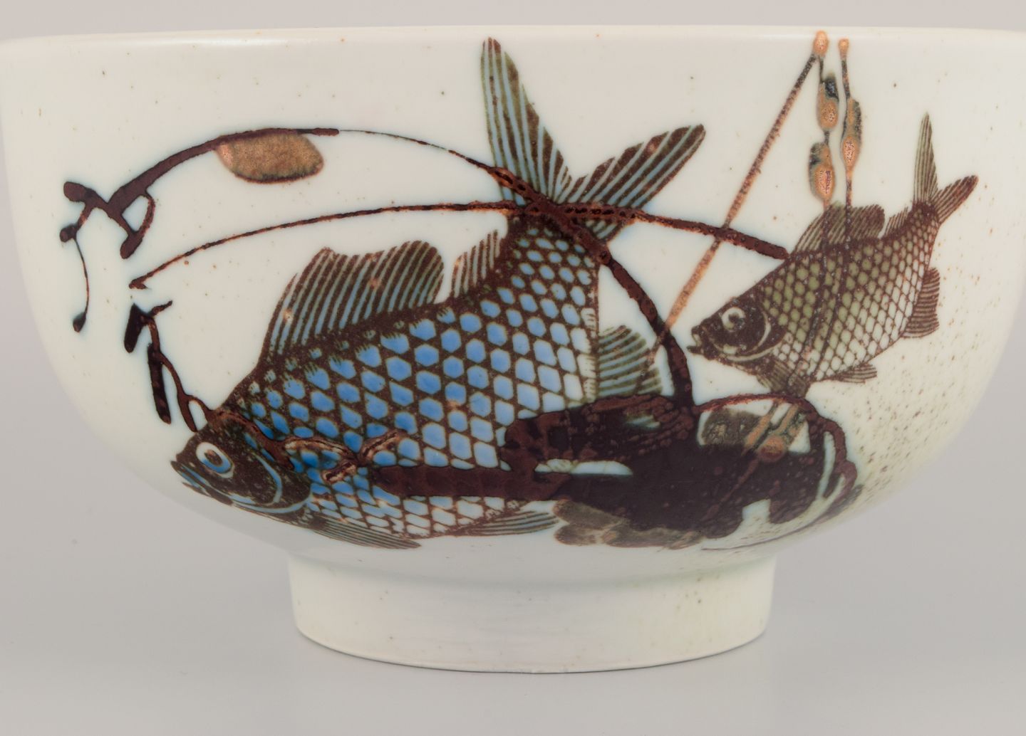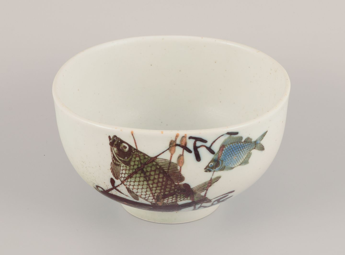 Nils Thorsson for Royal Copenhagen. Faience bowl with fish motifs. Dating: 1975-1979. Perfect condition. First factory quality. Marked. Dimensions: Diameter 17.0 cm x Height 10.0 cm.