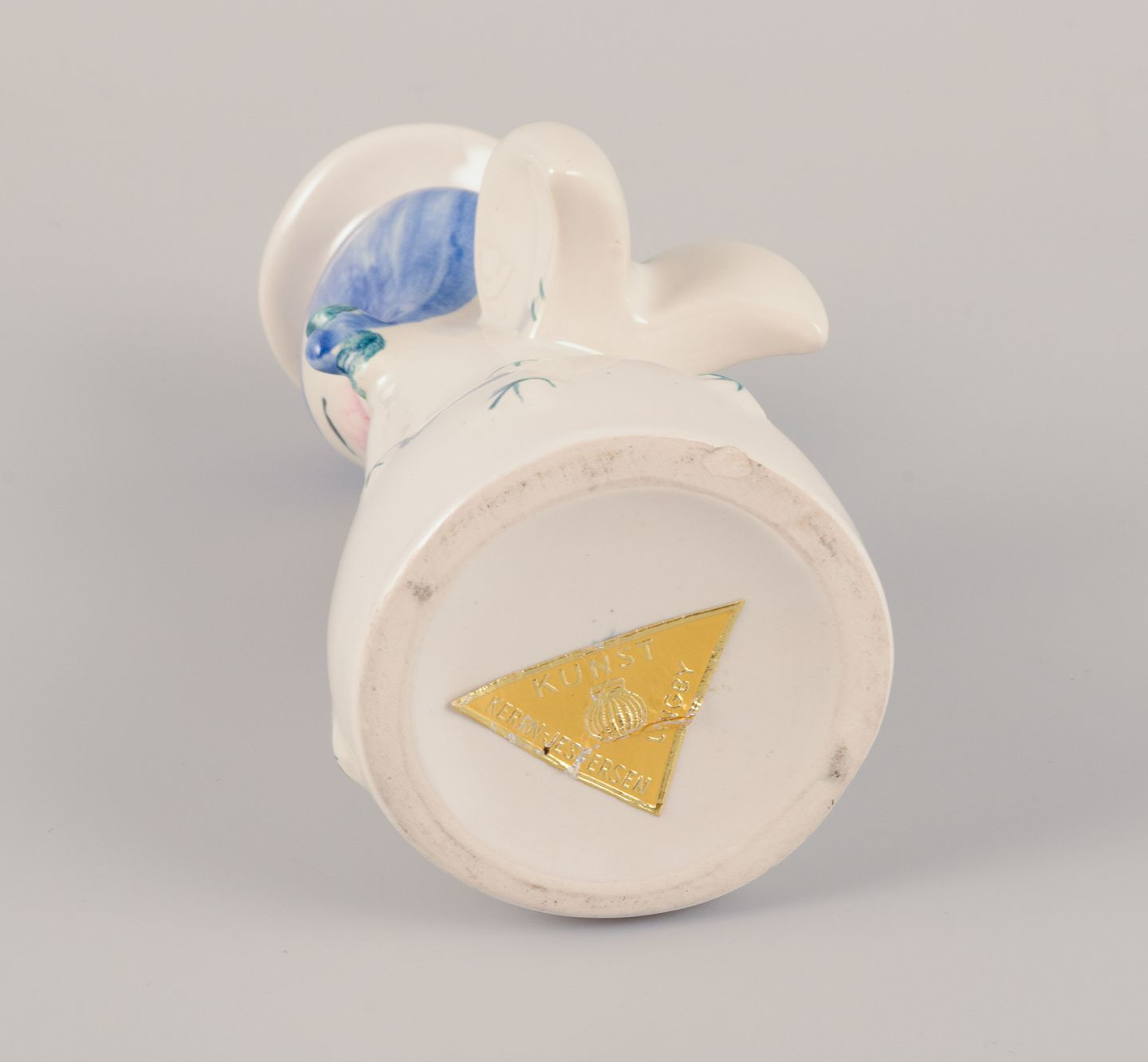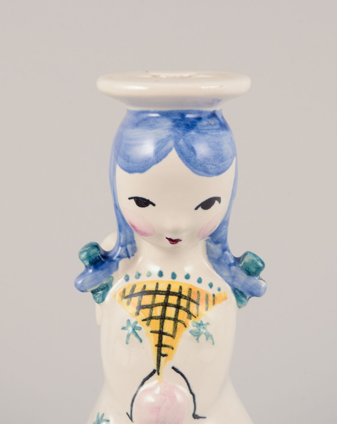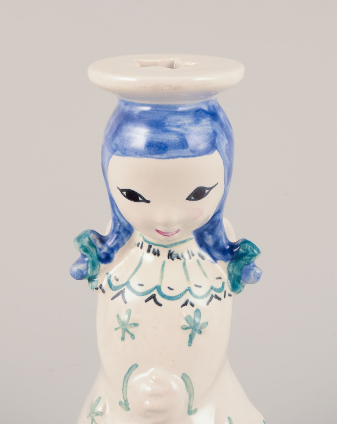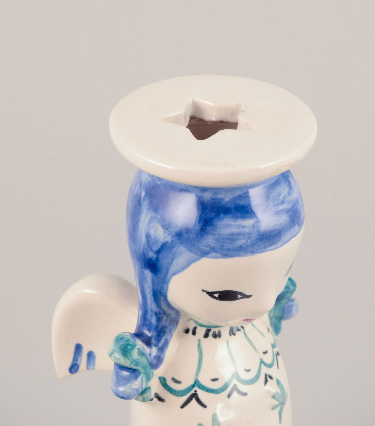 Nymølle, Danmark. Et par lysestager af engle i fajance. Hånddekoreret. Ca. 1960. Stemplet. Perfekt stand. Mål: D 5,0 cm. x H 12,0 cm.
