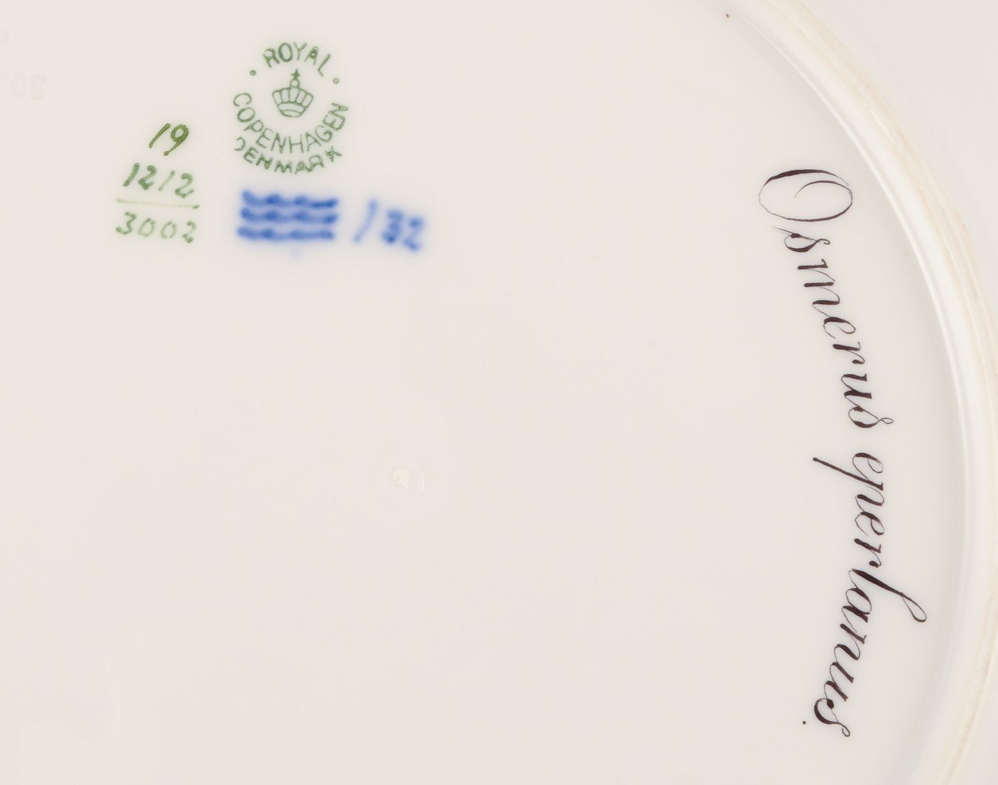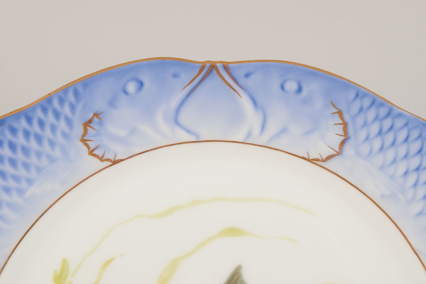 Royal Copenhagen Fauna Danica fisketallerken. Håndmalet fiskemotiv og gulddekoration.