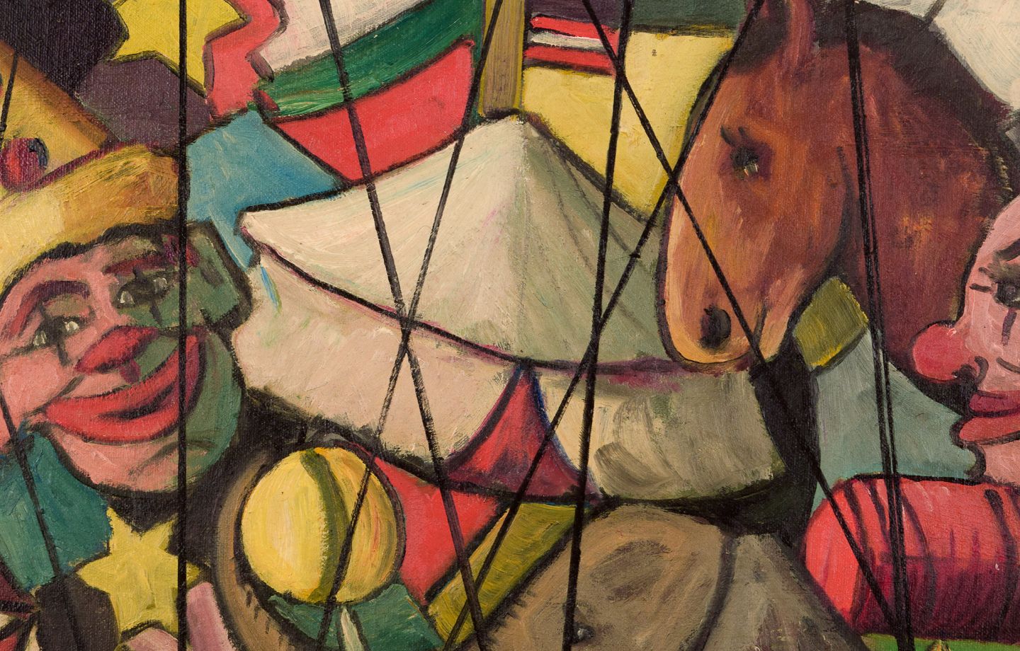 Swedish artist. Oil on board. Circus motif with clowns, horses, and elephants. "Circus." Indistinctly signed. In excellent condition. Board dimensions: 41.0 cm x 19.5 cm. Total dimensions: 56.0 cm x 34.5 cm.