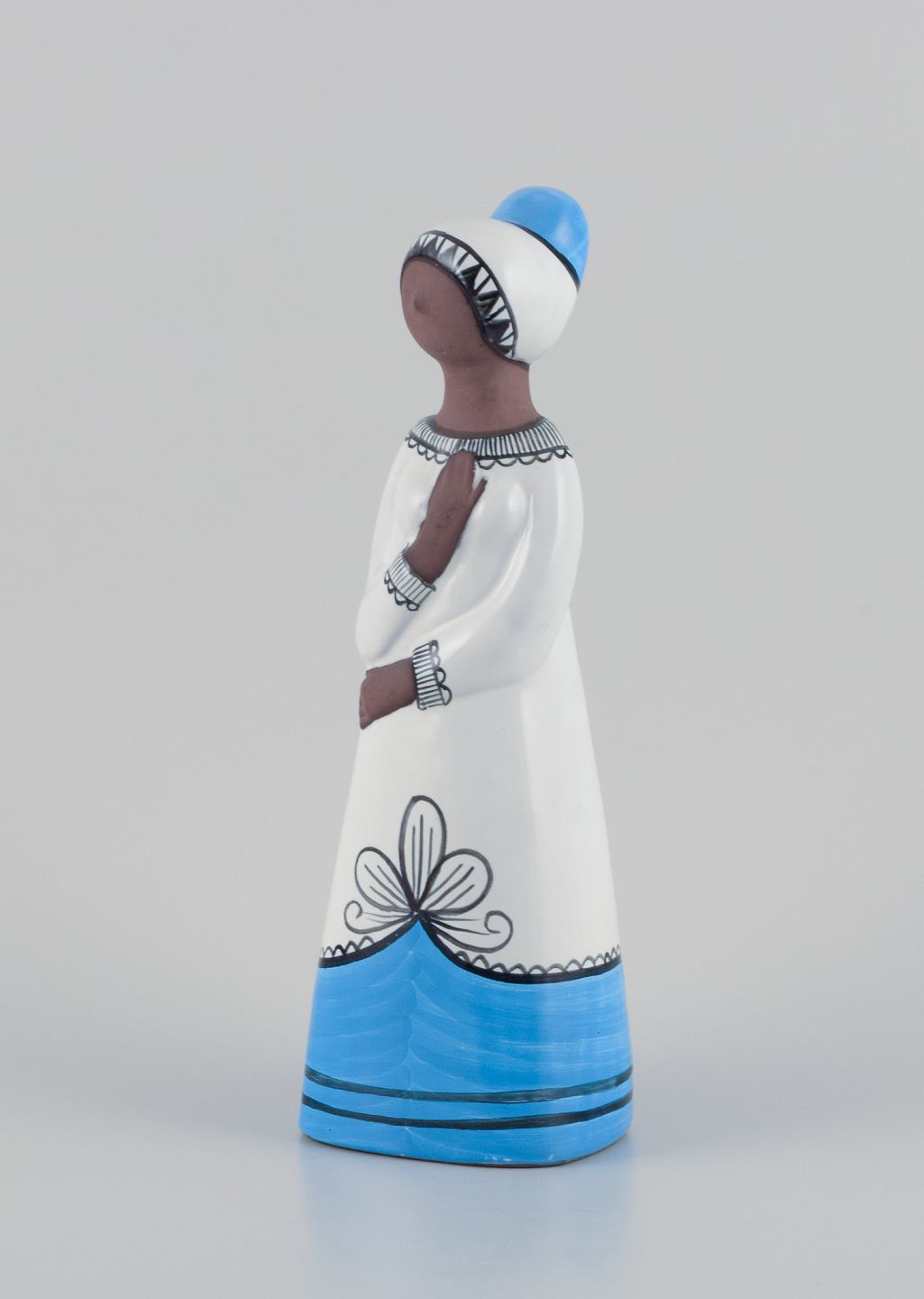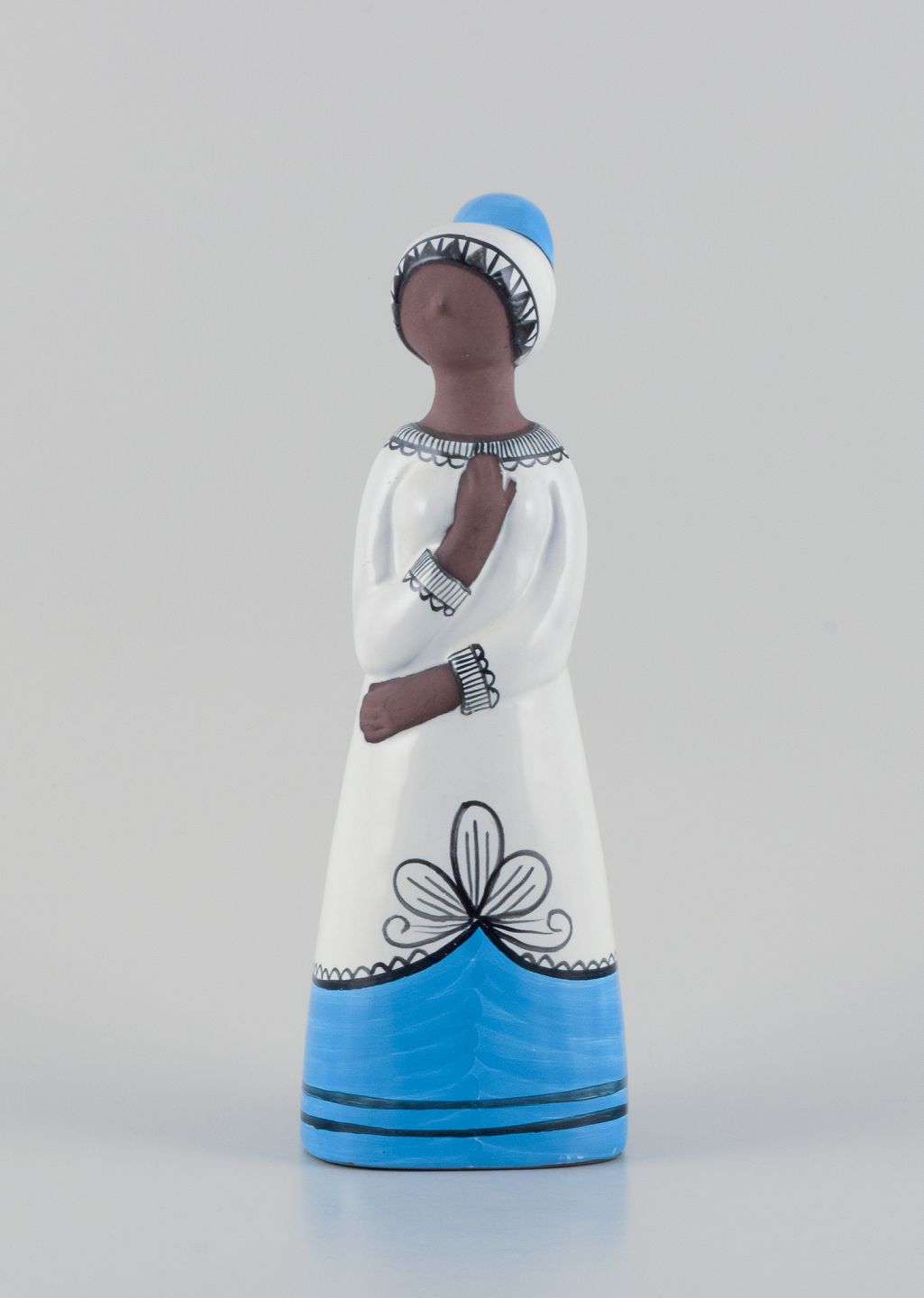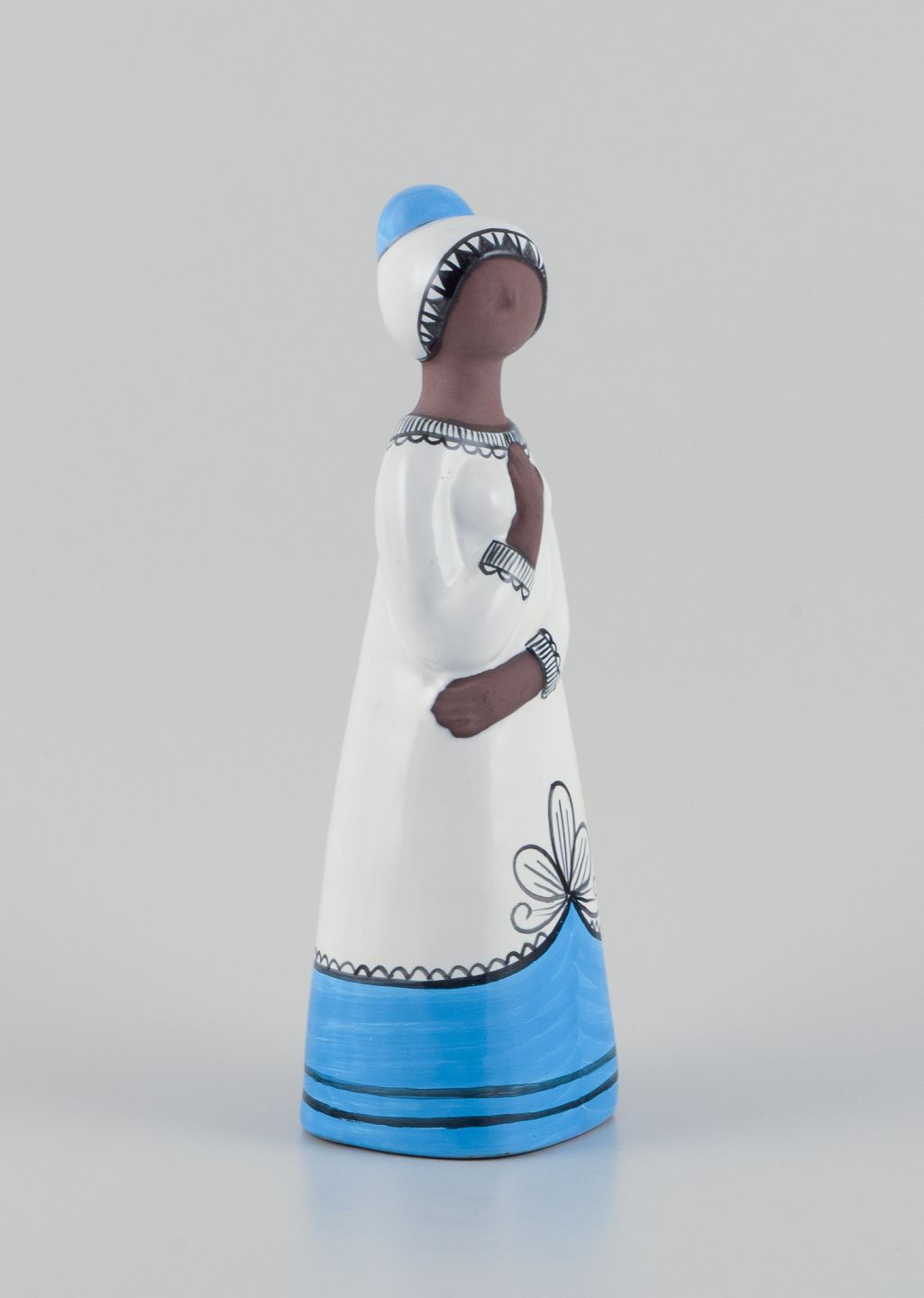 Mari Simmulson (1911-2000) for Upsala Ekeby, Sverige. Stor keramikfigur af kvinde. Hånddekoreret. Model 9033M Ca. 1960. Stemplet. Perfekt stand. Mål: H 32,0 cm. x B 11,0 cm. x D 10,0 cm.