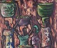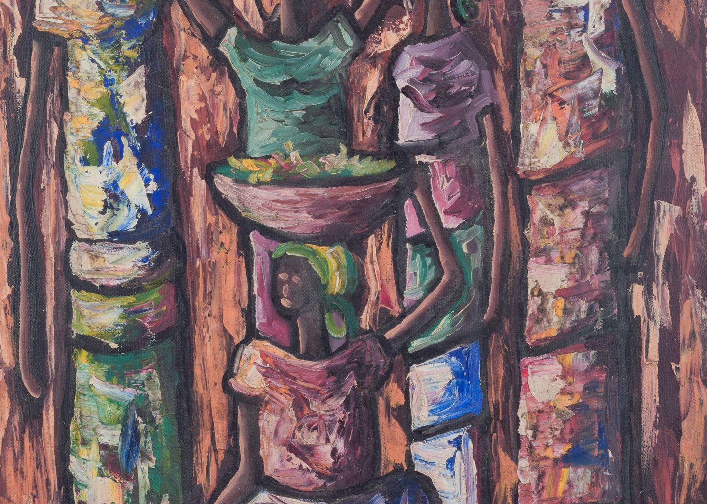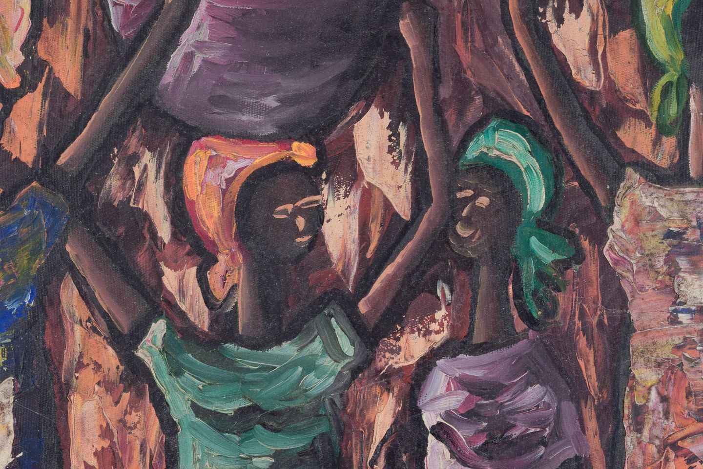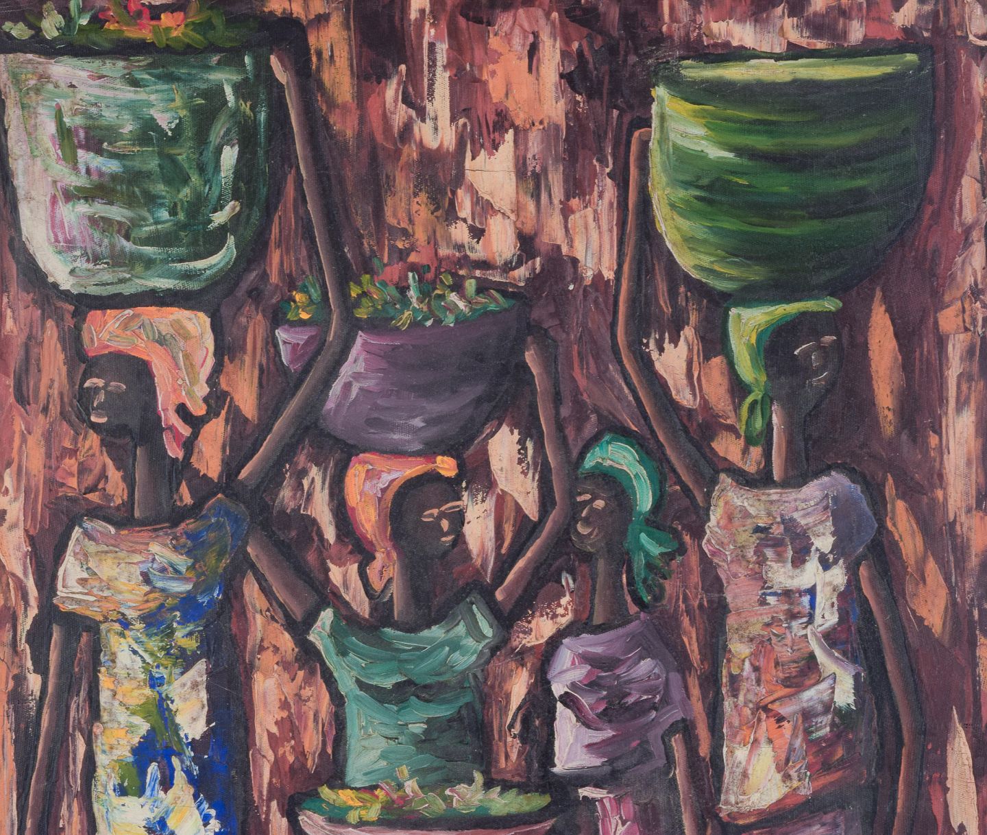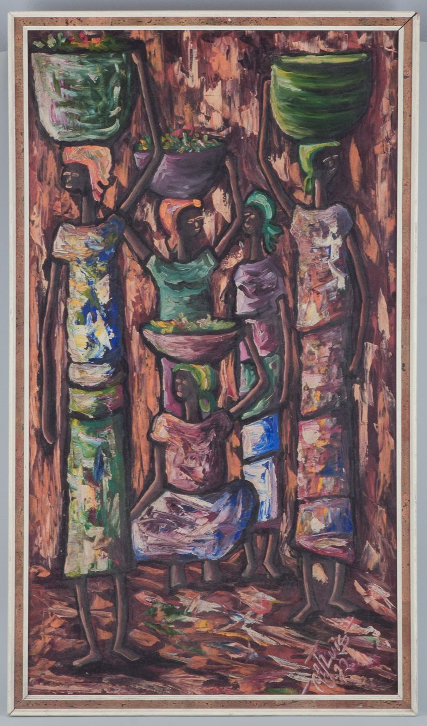 A. J. Luis, Haiti. Oil on canvas. Five women in a landscape. Abstract style. Signed and dated '72. In perfect condition. Canvas dimensions: 49.0 cm x 89.0 cm. Total dimensions: 54.5 cm x 93.5 cm.