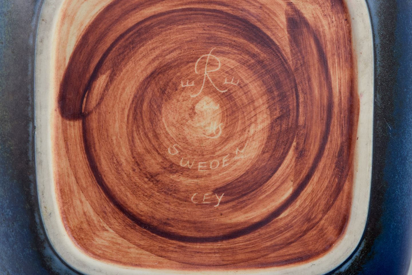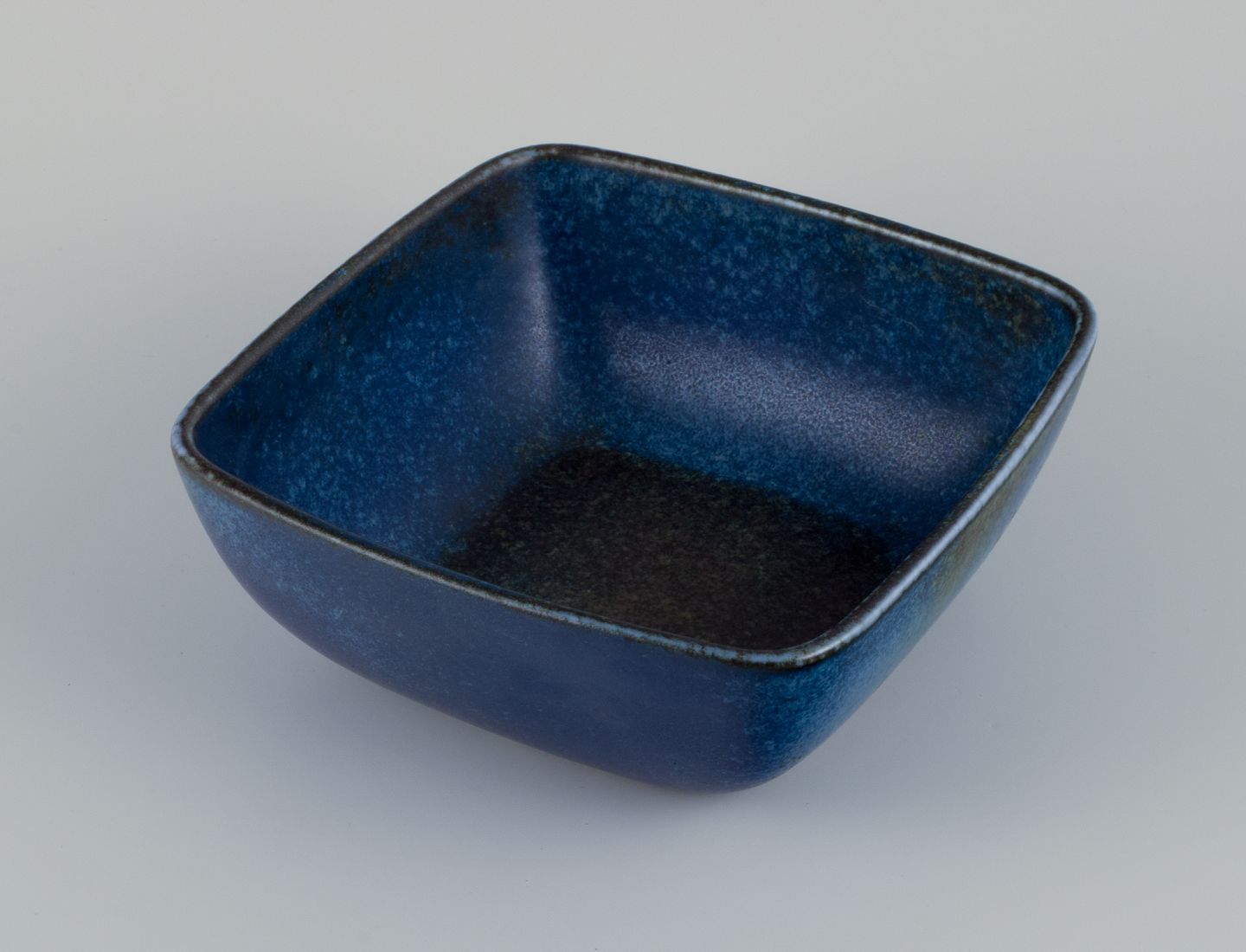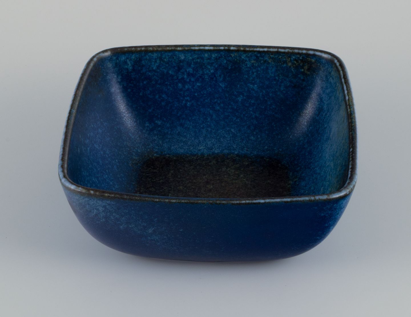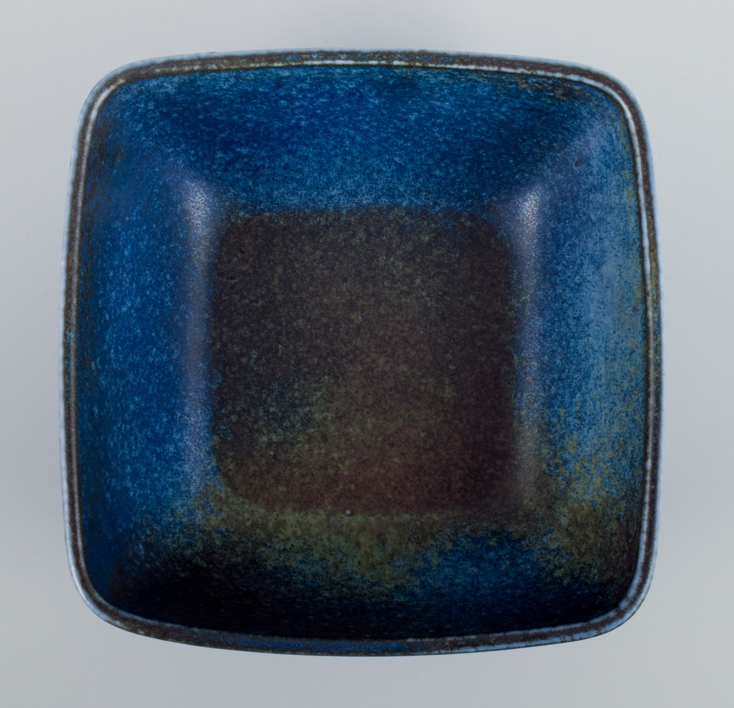 Carl Harry Stålhane (1920-1990) for Rörstrand. Stor kvadratisk keramikskål med glasur i blå og grønne nuancer. Midt 1900-tallet. Stemplet. I perfekt stand. Første sortering. Mål: D 22,2 cm. x H 8,8 cm.