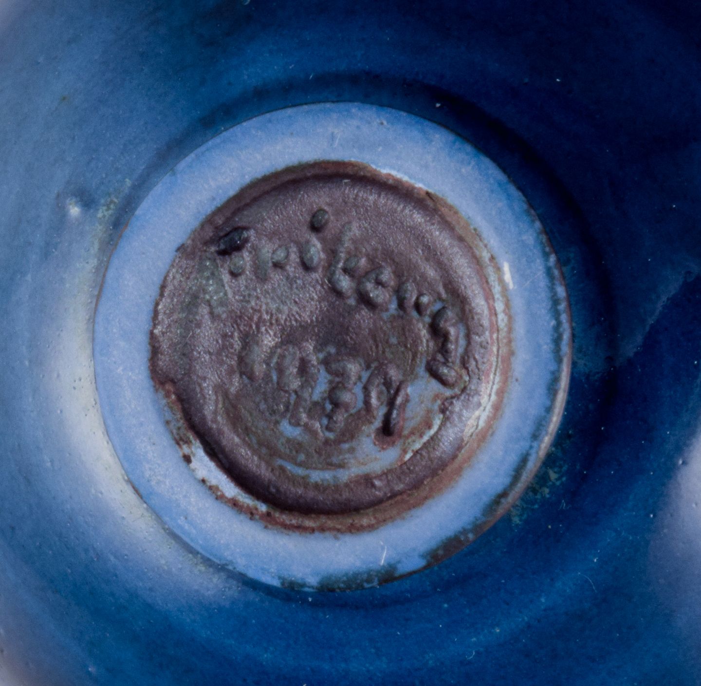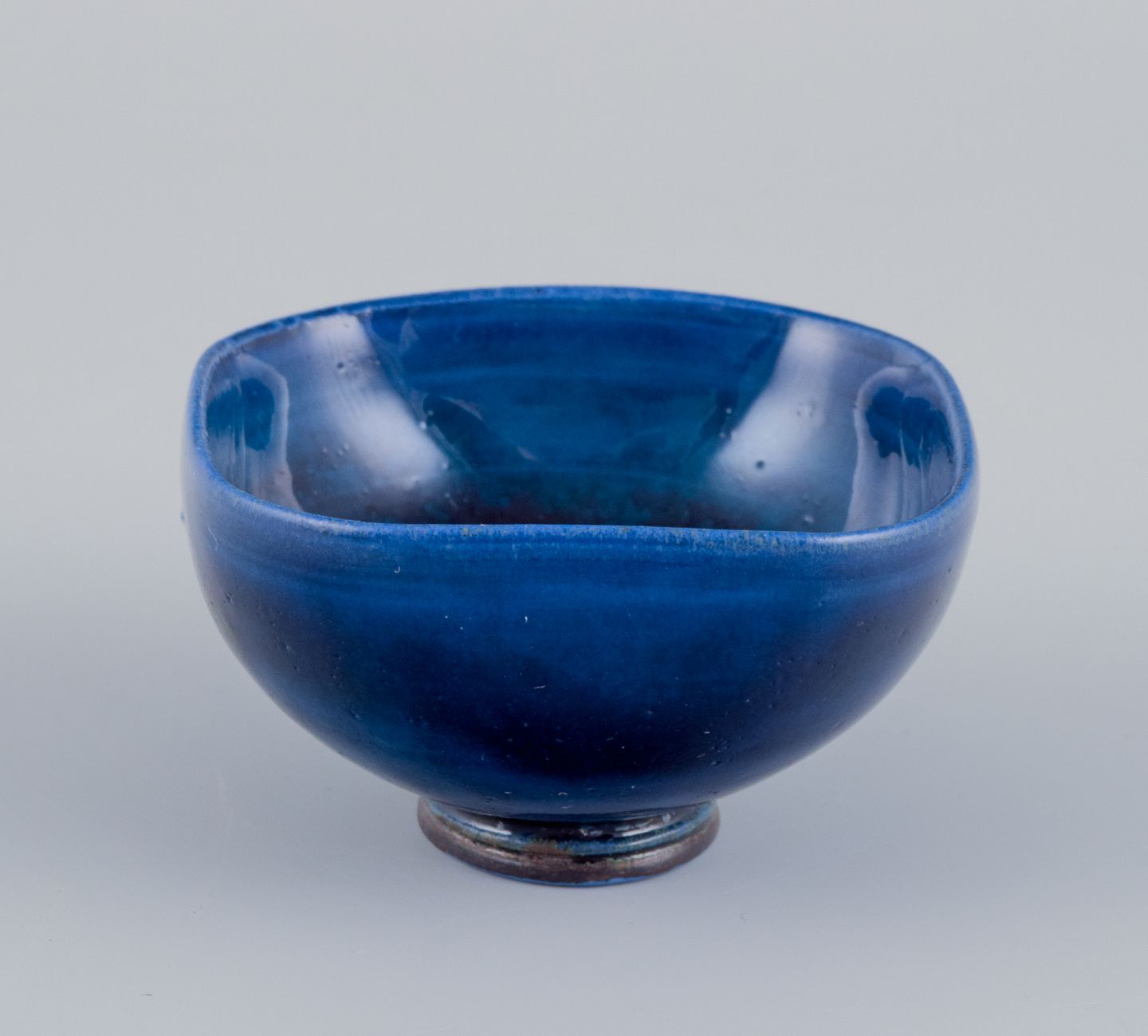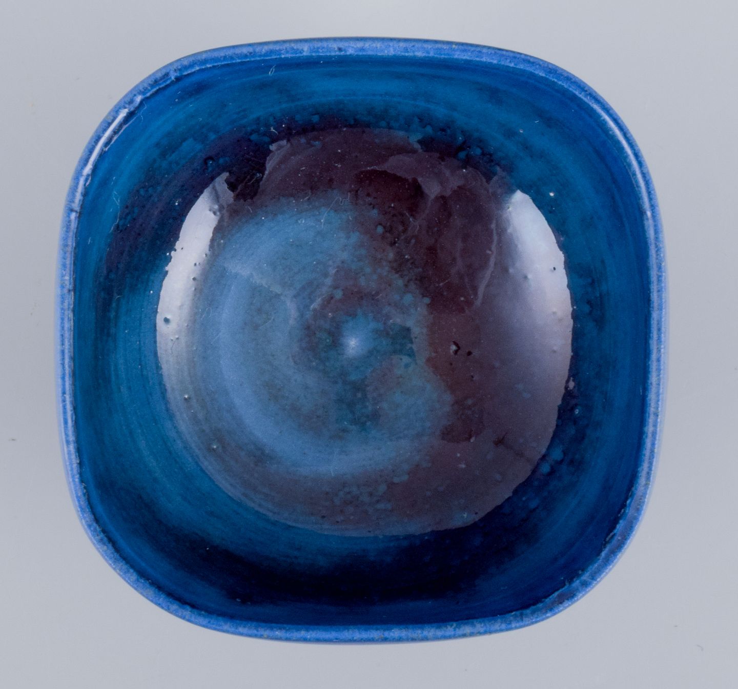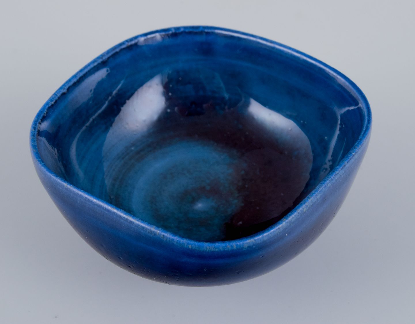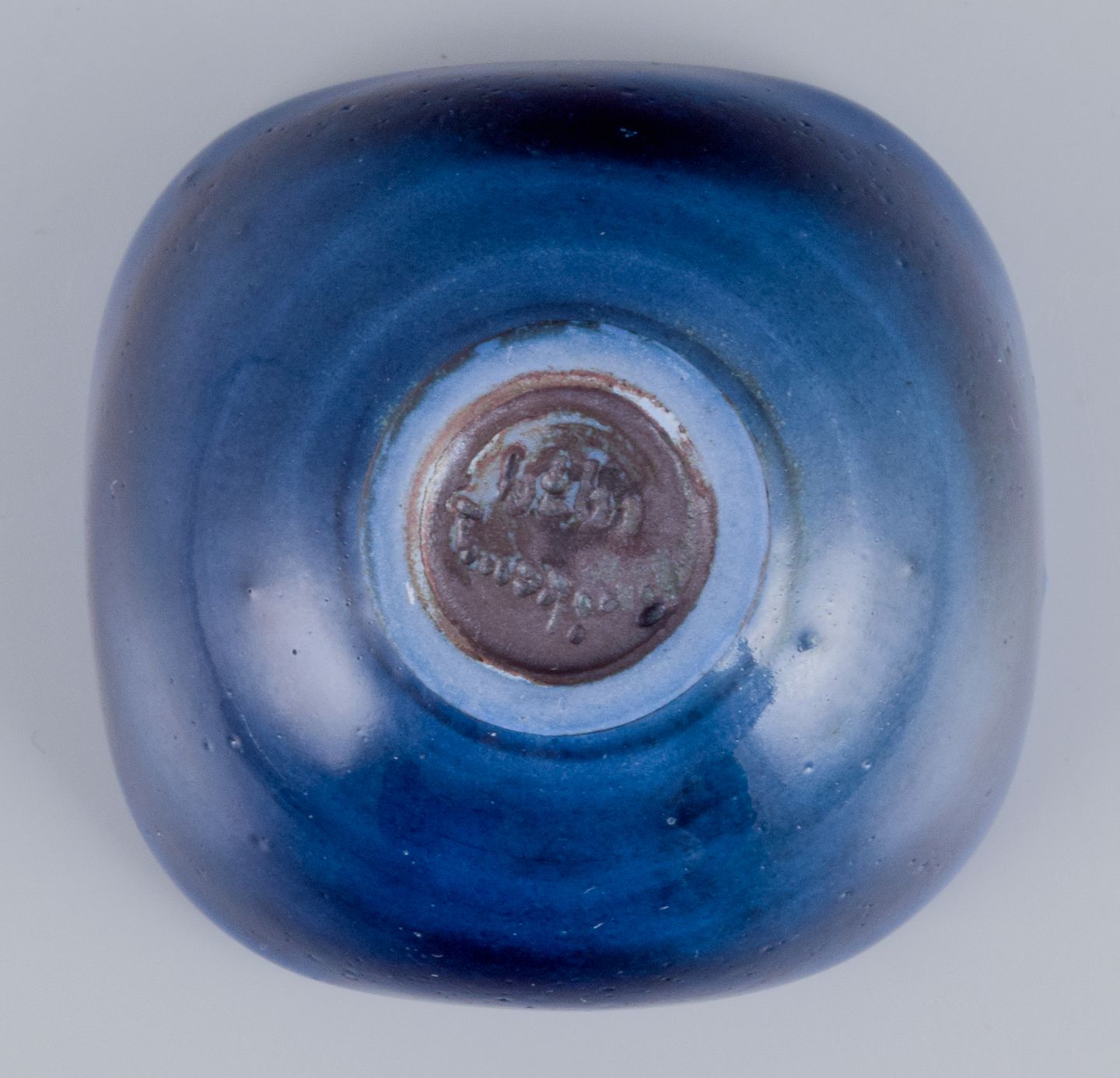 Berndt Friberg (1899-1981) for Gustavsberg, Sverige. Unika miniature keramikskål med blå glasur. Signeret og dateret ’59. Perfekt stand. Mål: D 4,5 cm. x H 2,7 cm.