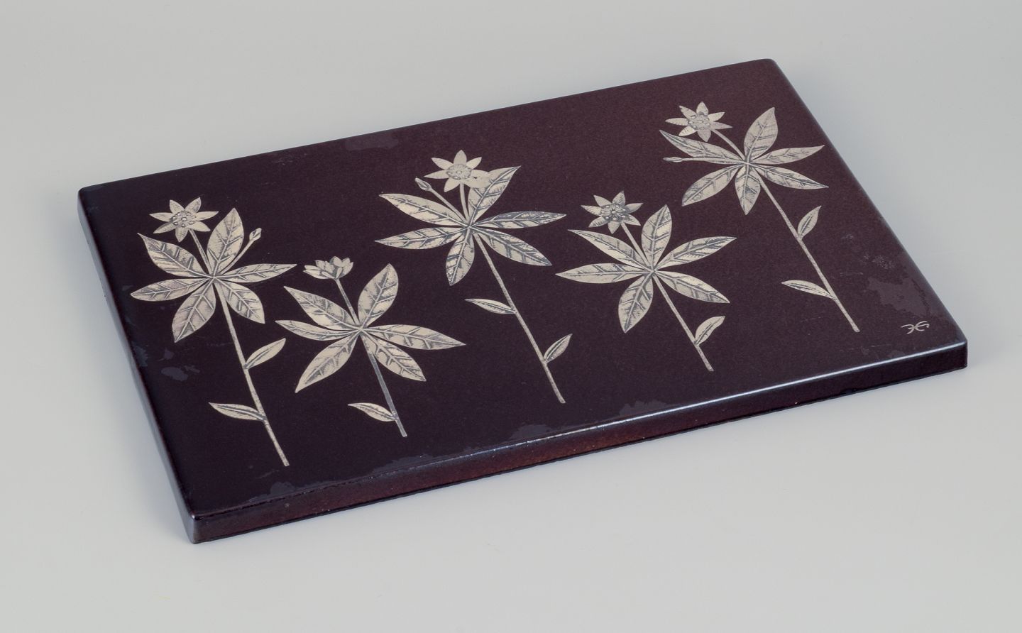 Heinz Erret (1920-2003) for Gustavsberg. "Skogsstjärna" wall plaque in glazed ceramic with silver inlay in the form of flowers.