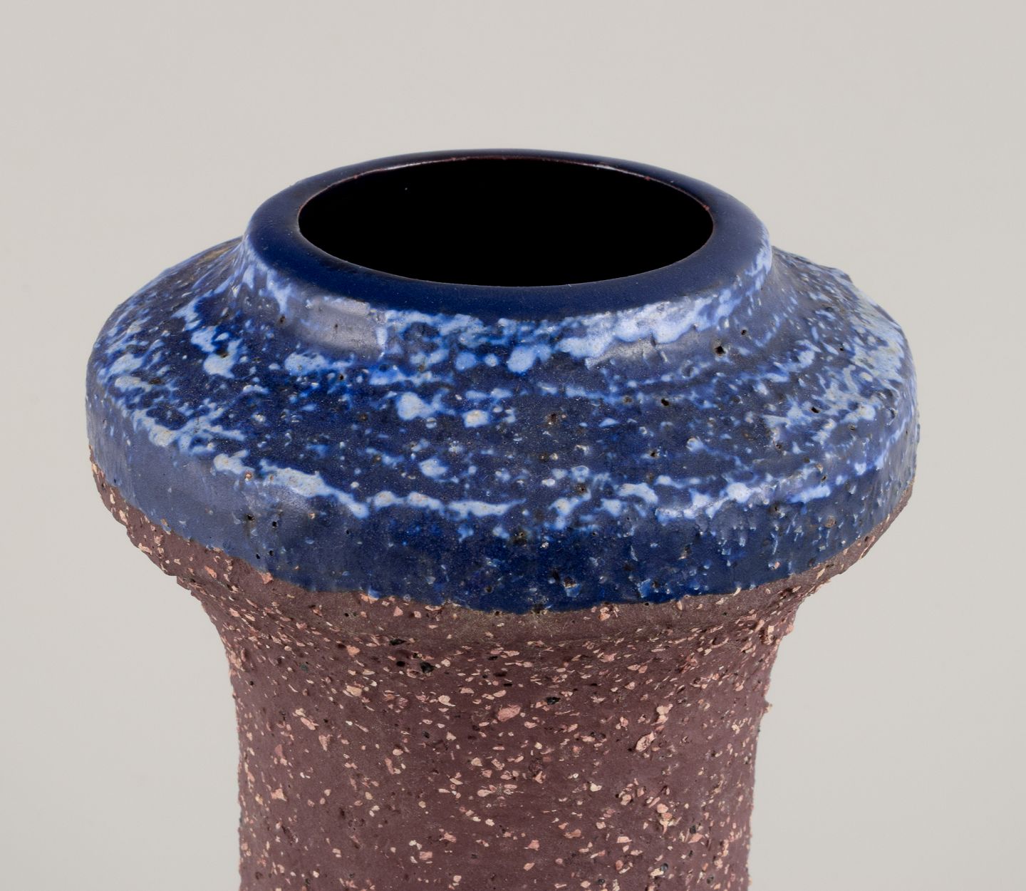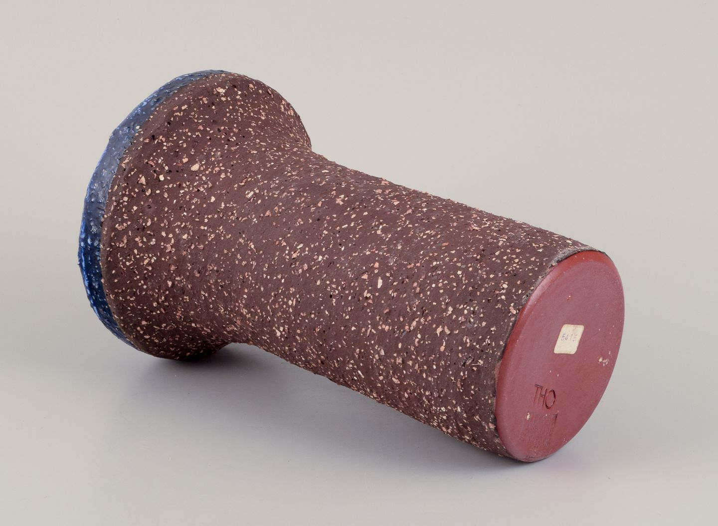Thomas Nittsjö, Sverige. Stor keramikvase med glasur i blå nuancer. Håndlavet. 1969/70’erne. Stemplet. Perfekt stand. Mål: D 13,0 cm. x H 24,0 cm.