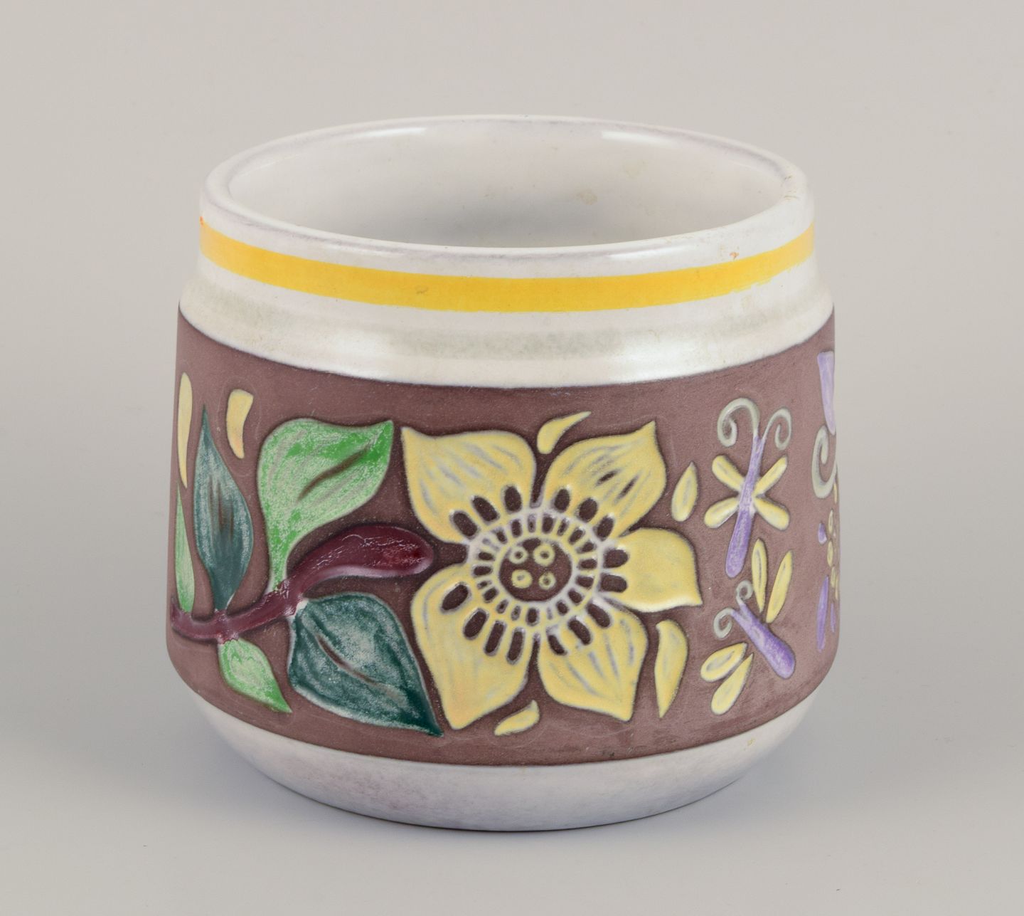 Mari Simmulson (1911-2000) for Upsala Ekeby. Urtepottekrukke i keramik. Polykrom glasur med blomstermotiver.