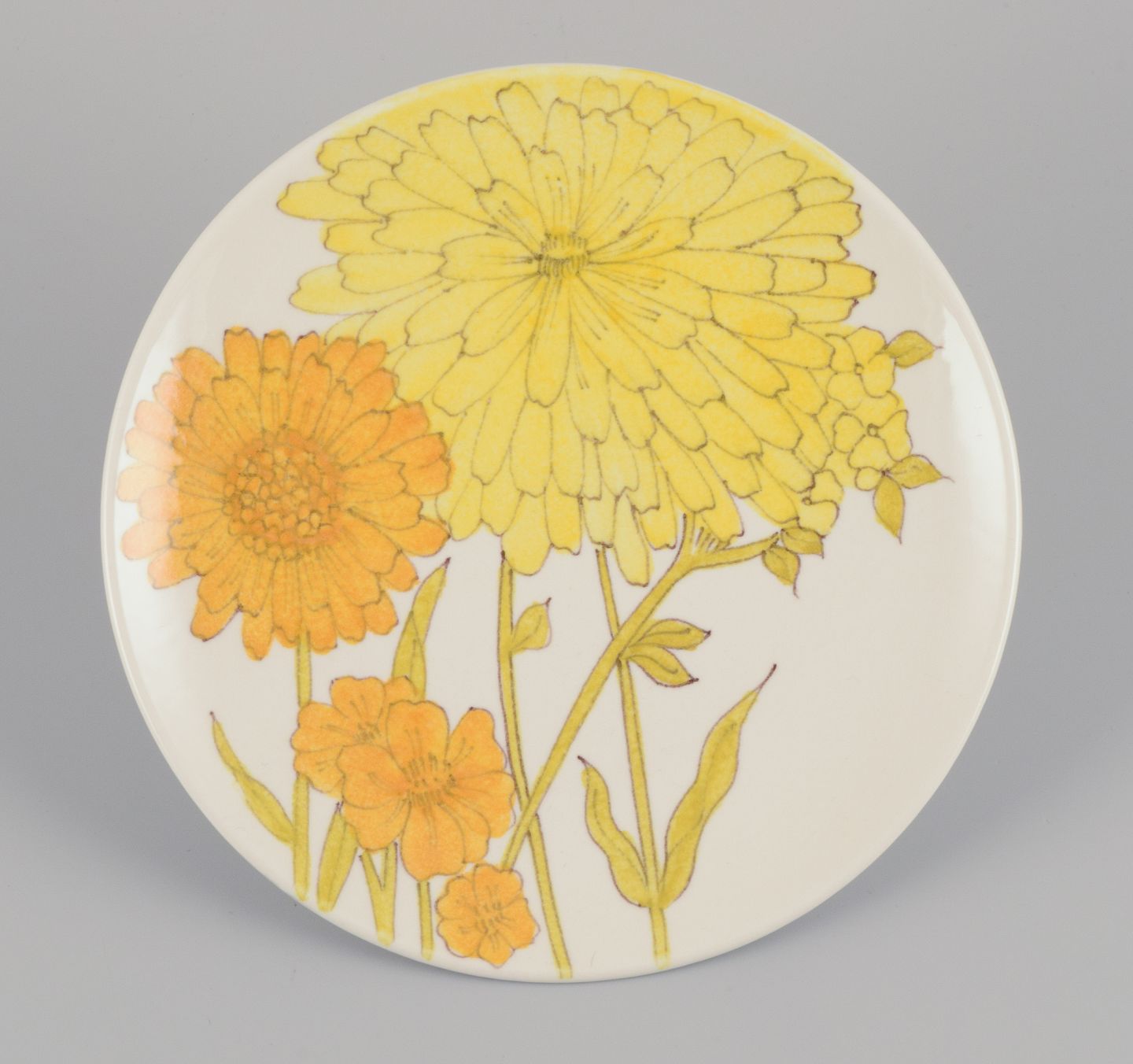Ernestine Salerno, Italy. A set of five ceramic plates. Hand-painted with sunflowers.