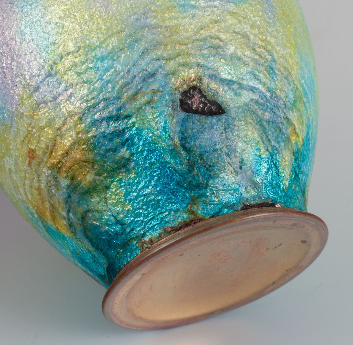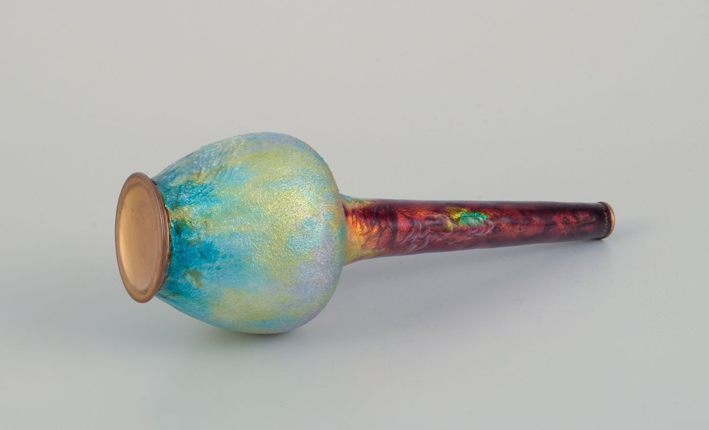 Large enamelwork vase with a narrow neck and polychrome enamel decoration.