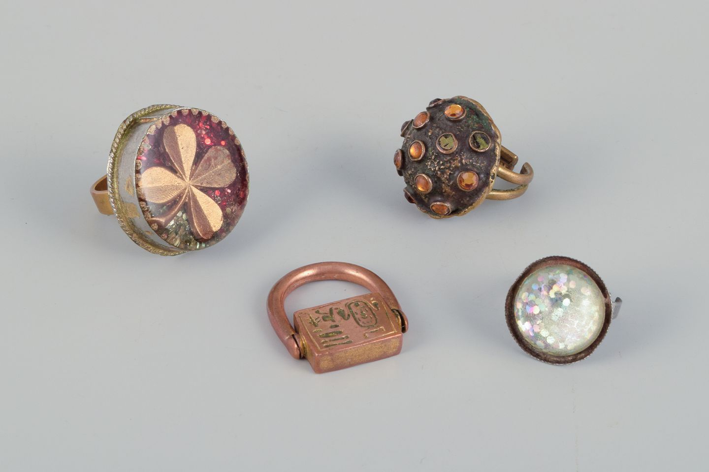 Fransk smykkekunstner. Fire designerringe i metal. Forskellige designs.