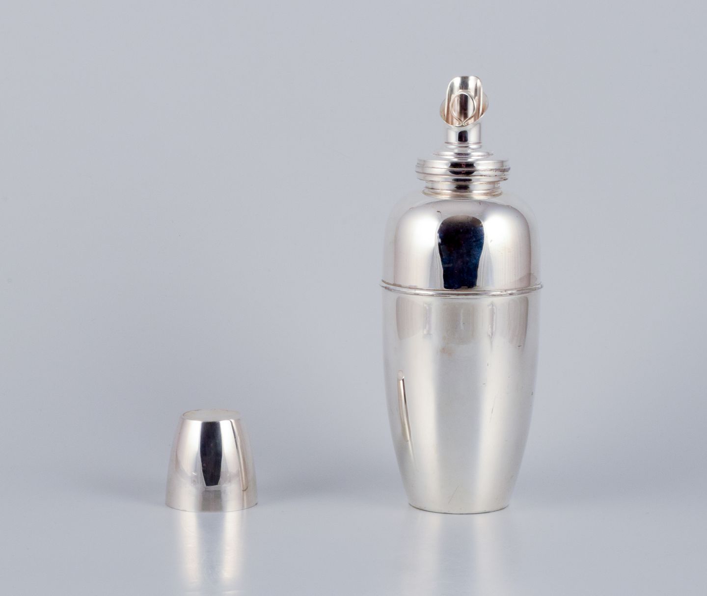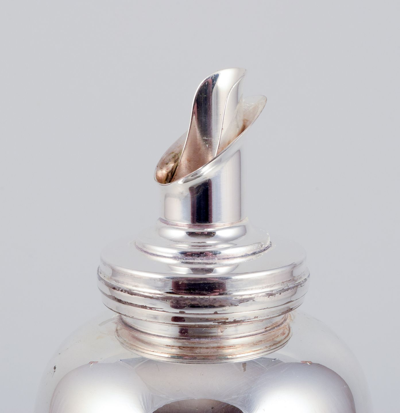 Svensk cocktailshaker i nysølv. Modernistisk design. 1960’erne. Stemplet. I flot stand med mindre brugspræg Mål: H 24,0 cm. x D 9,0 cm.