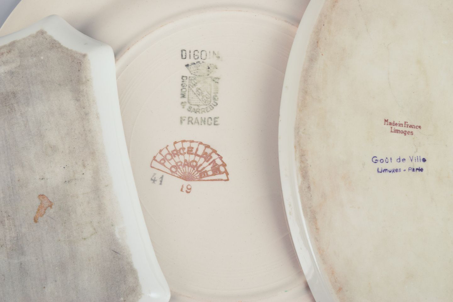 The plate and the large dish are stamped.