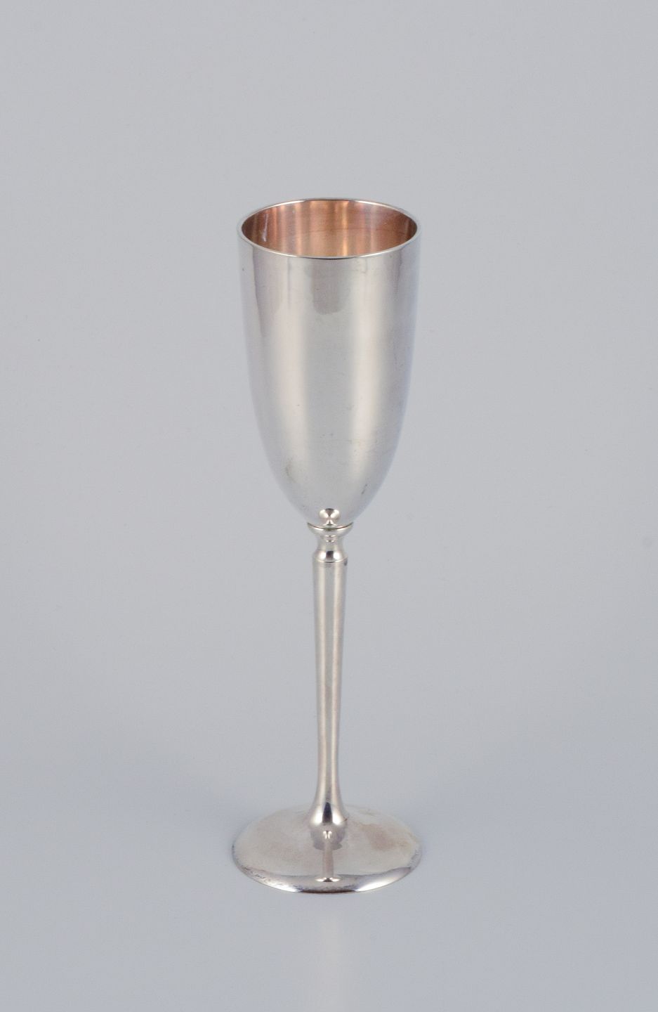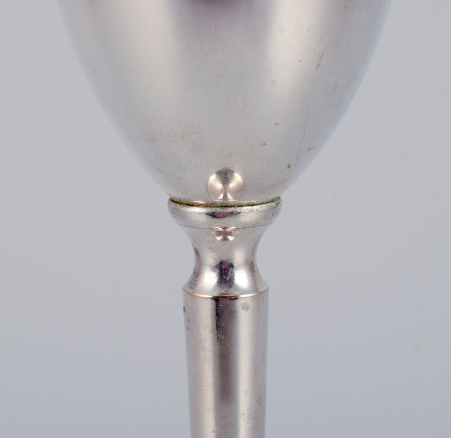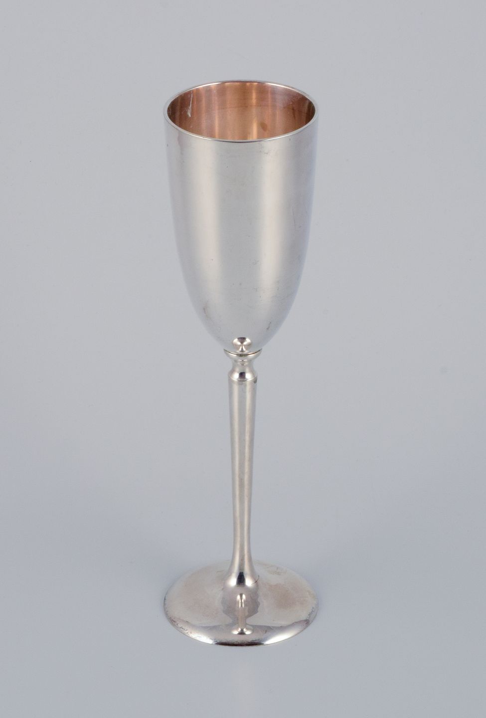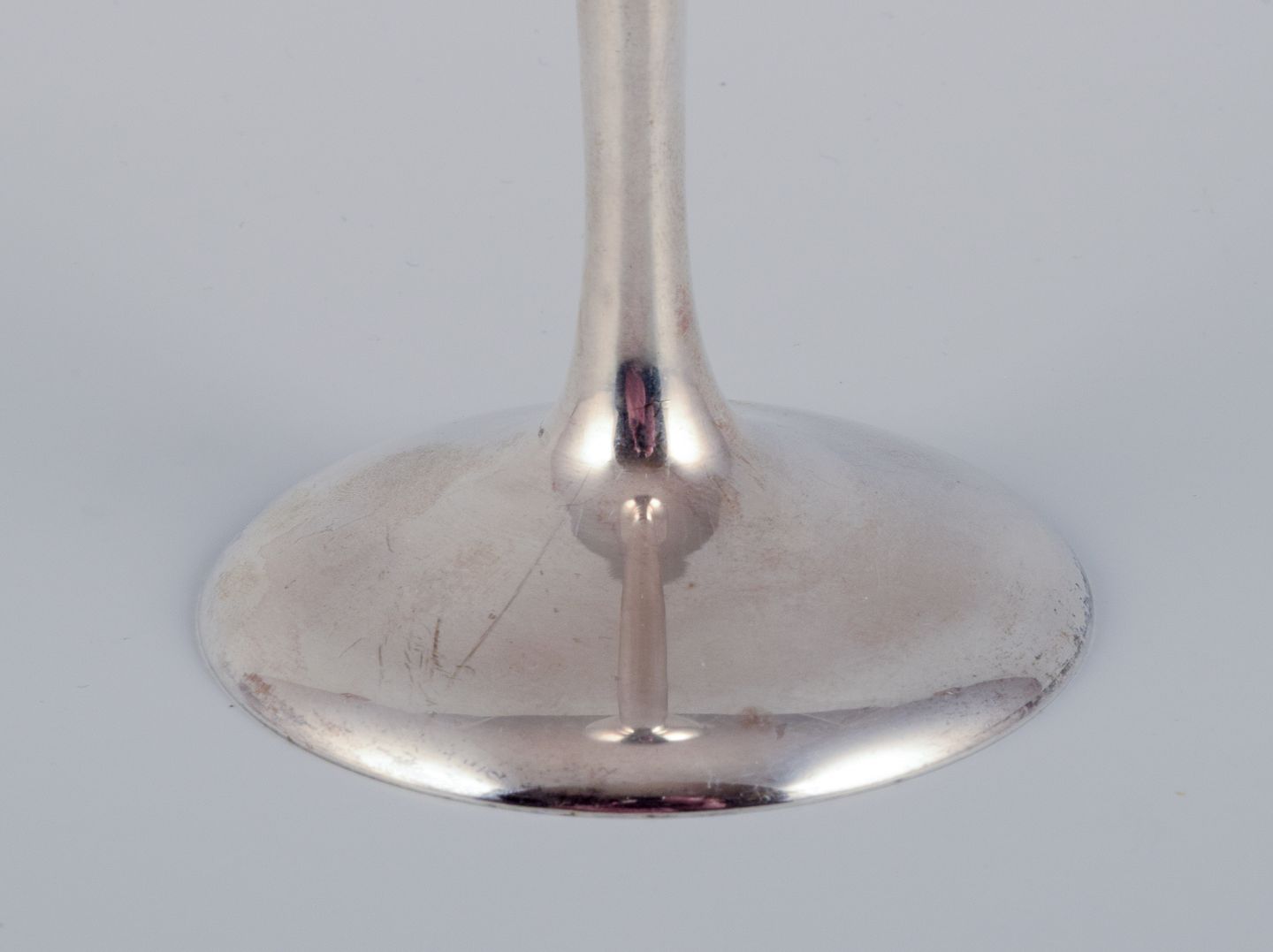 Gunilla Lindahl for Scandia Present, Sverige. To store champagnefløjter i nysølv. Håndlavet. Ca. 1980. Mærkat. I flot stand. Mål: H 24,7 cm. x D 6,5 cm.