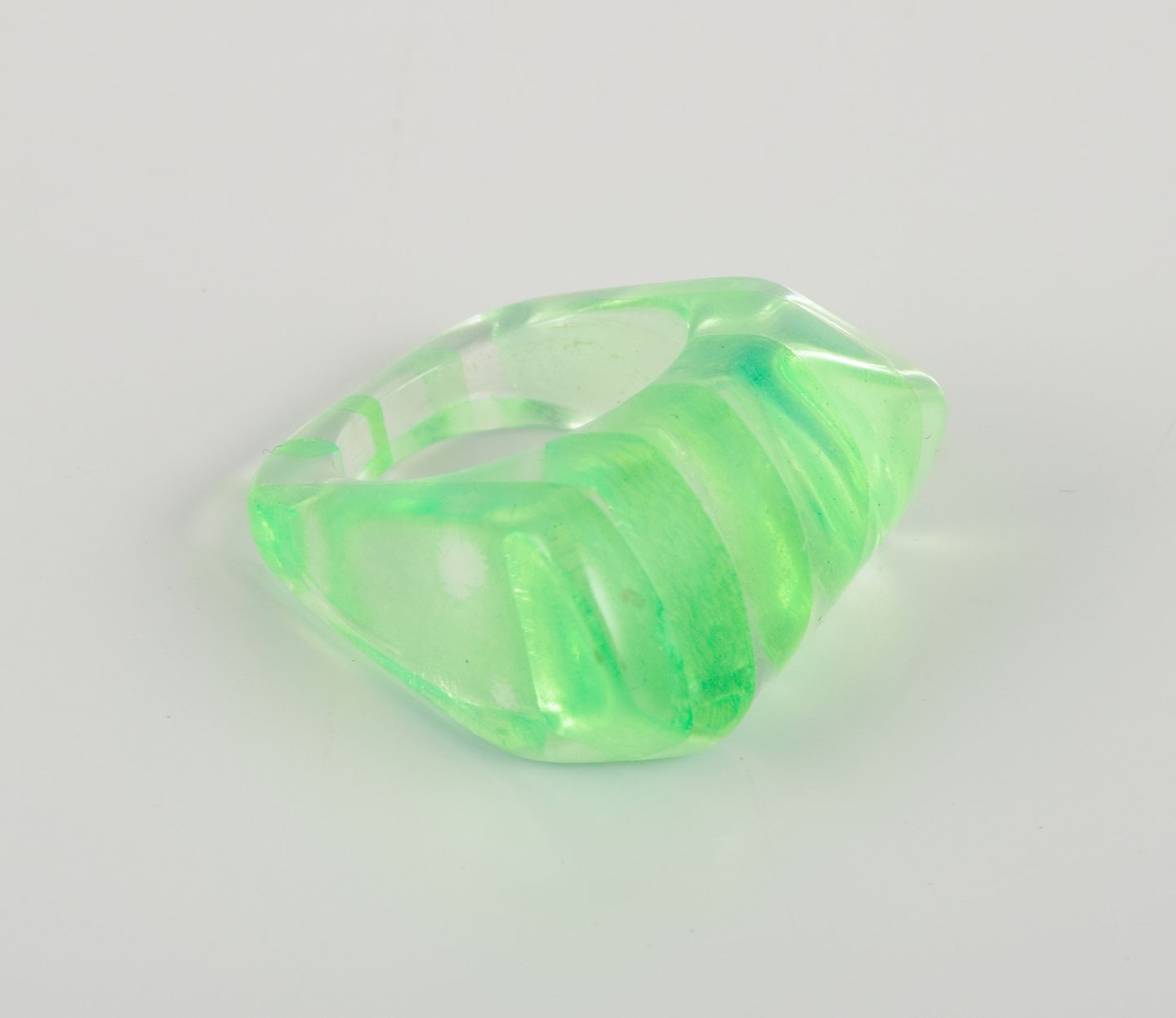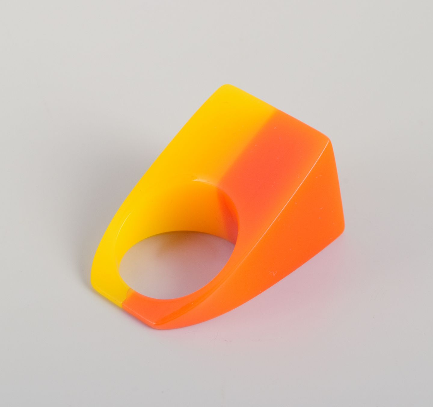 Fransk smykkekunstner. Fem designerringe i plast og metal.