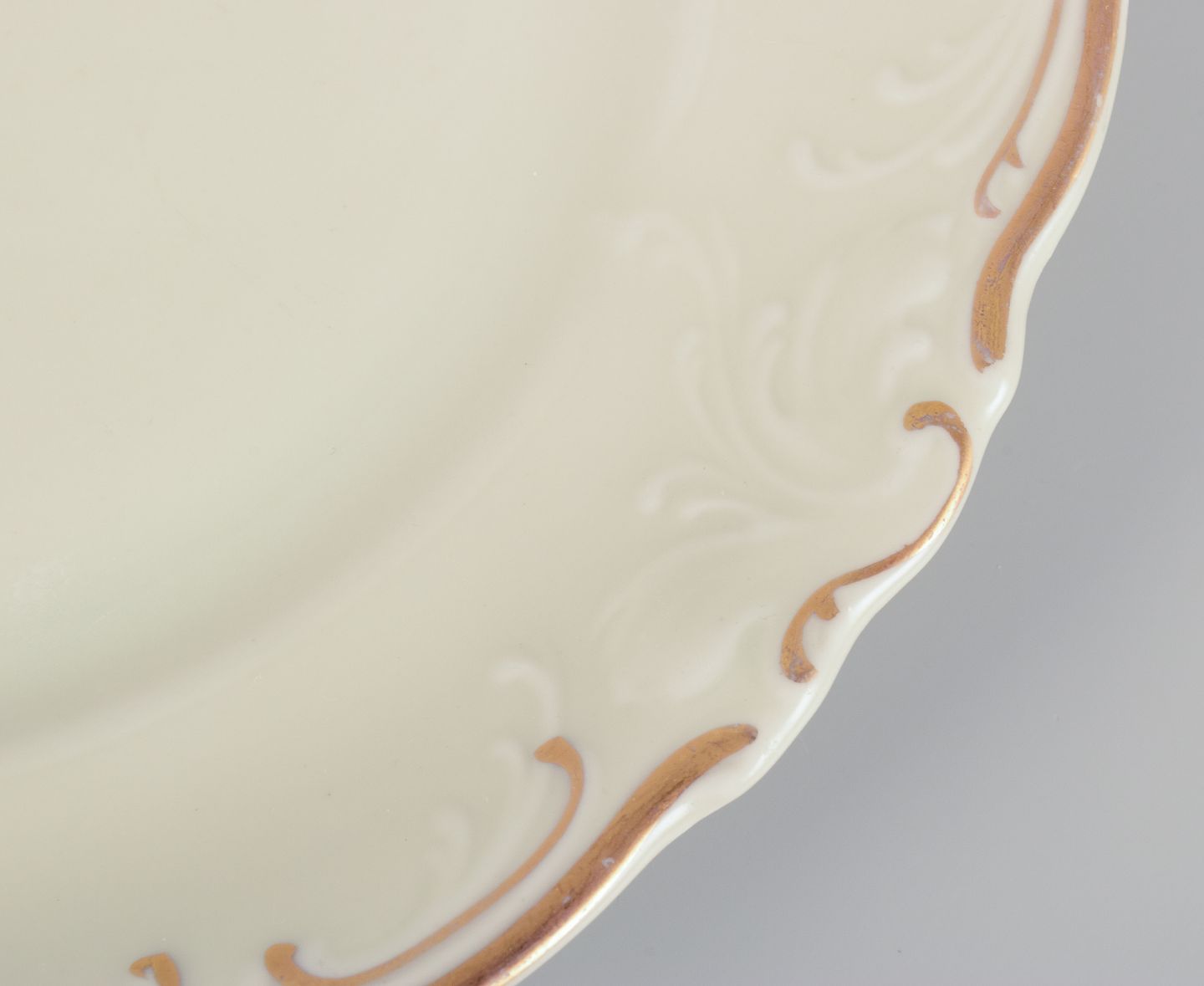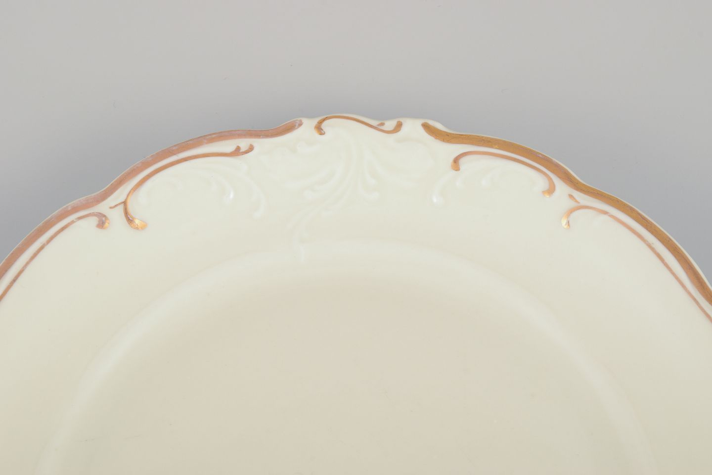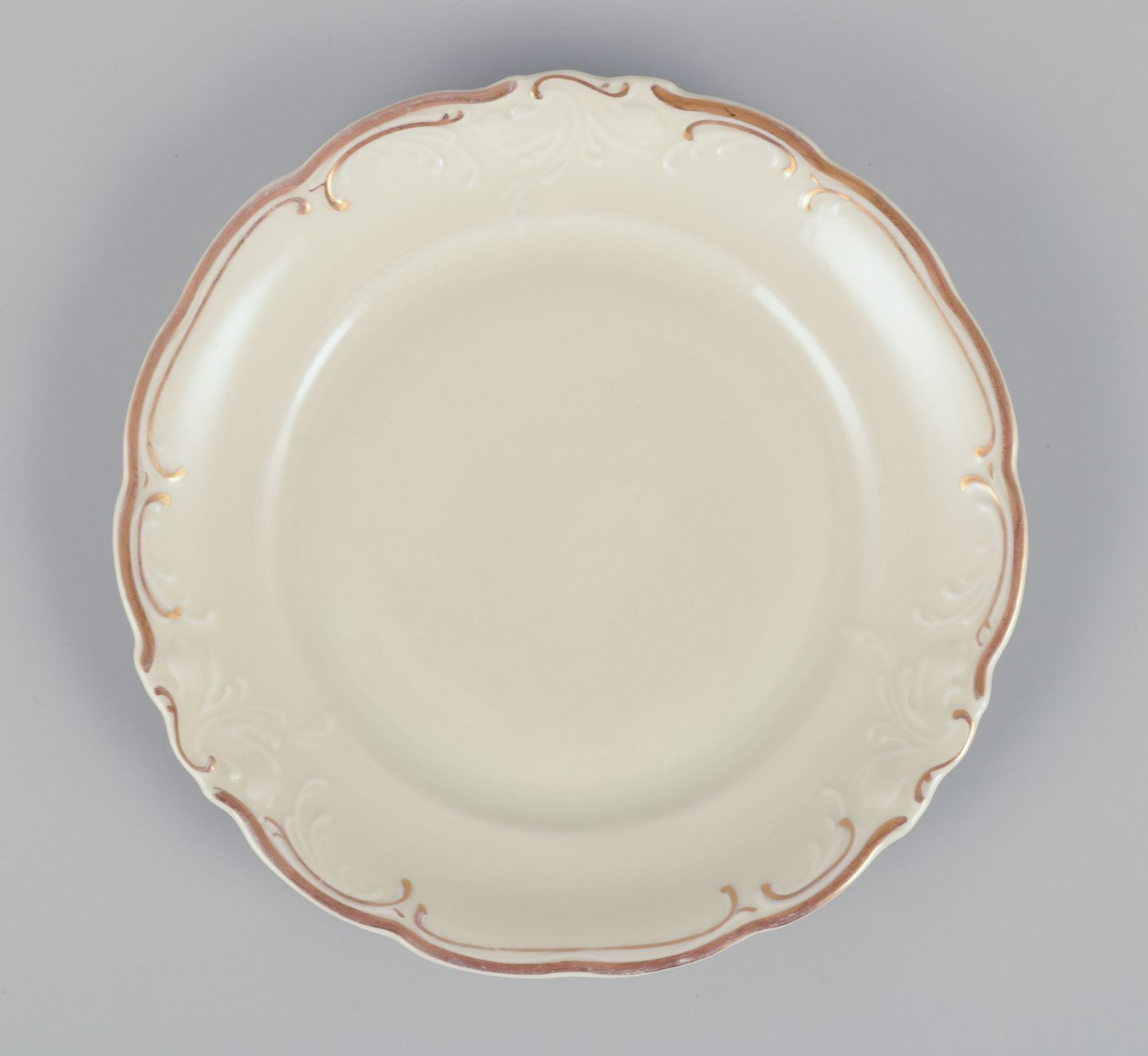 KPM, Polen. Et sæt på ti cremefarvede porcelænstallerkner med gulddekoration. 1930/40’erne. Perfekt stand. Stemplet. Mål: D 17,0 cm.