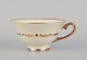 Et sæt på fem KP, Karlskrona tekopper med underkopper samt flødekande i cremefarvet porcelæn med gulddekoration.