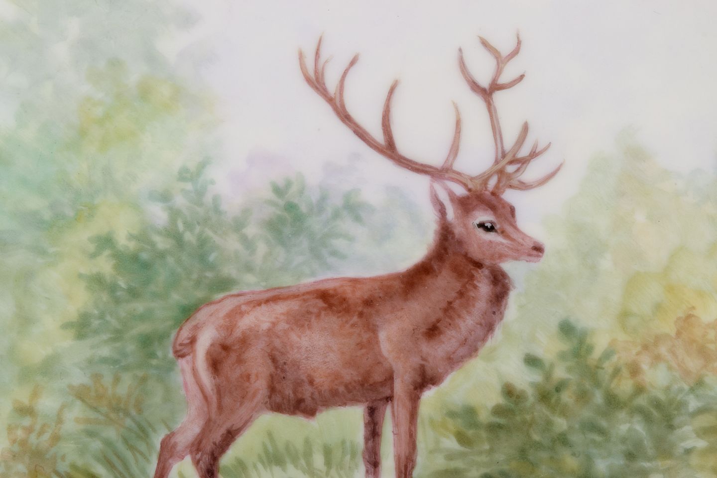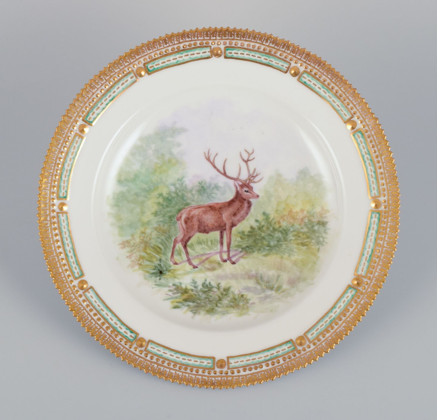 Royal Copenhagen Fauna Danica middagstallerken med motiv af hjort i landskab. Håndmalet af Einar J. Hoff. 1930-1950. Tredje sortering. Perfekt stand. Mål: D 25,0 cm. x H 3,3 cm.