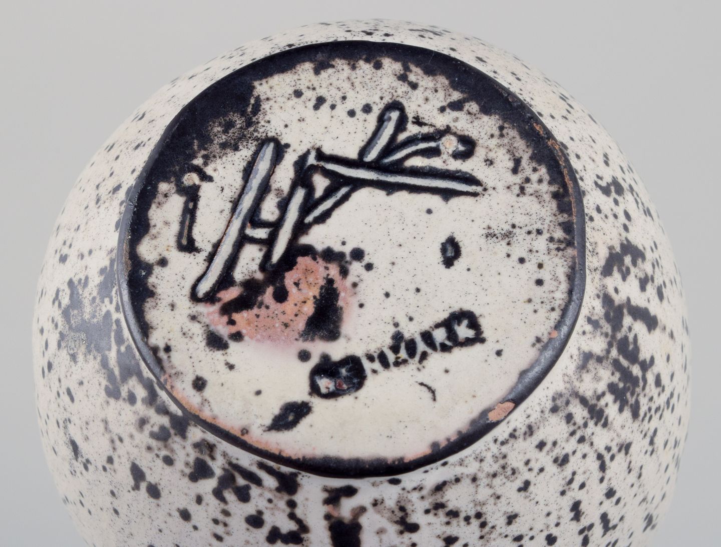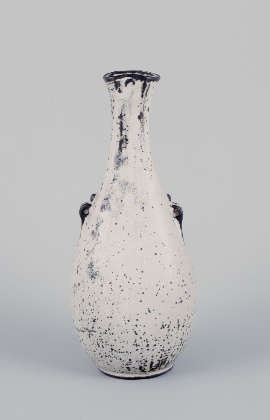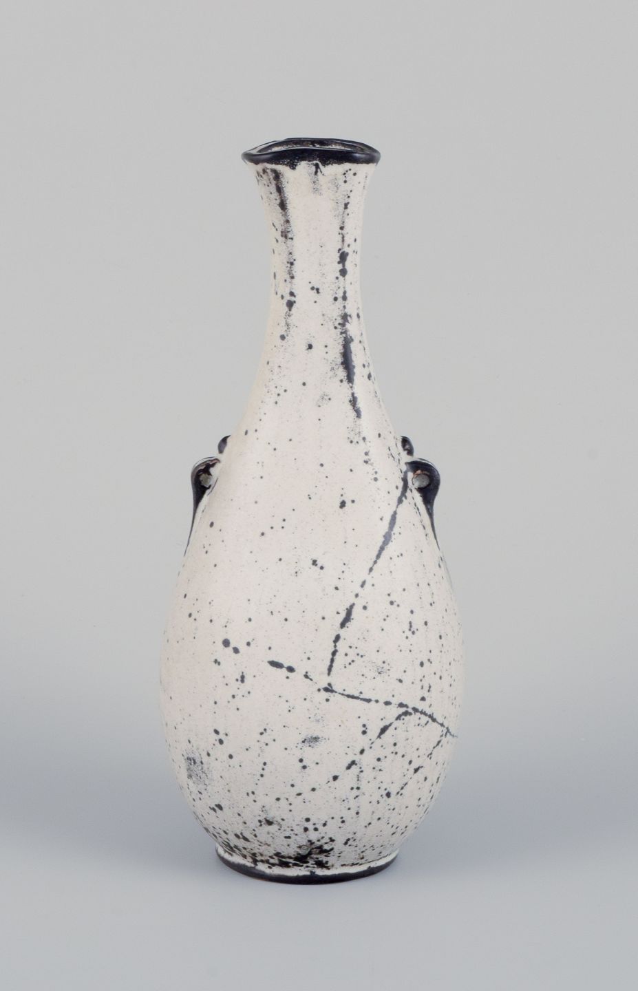 Svend Hammershøi (1873-1948) for Kähler. Ceramic vase with a narrow neck in black-grey double glaze. Ca. 1930. Marked. In excellent condition. Dimensions: Height 20.0 cm x Width 8.0 cm x Depth 7.5 cm.