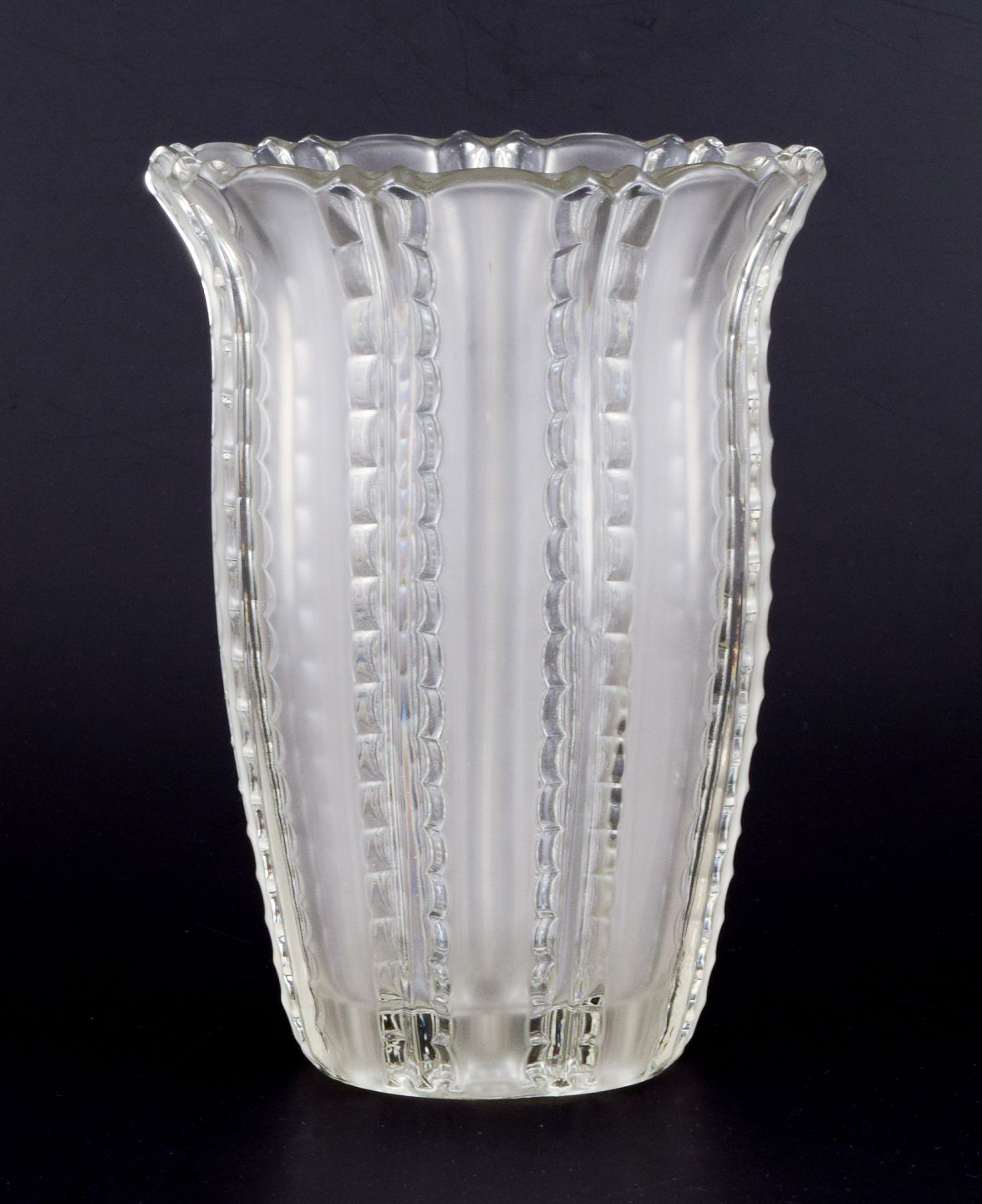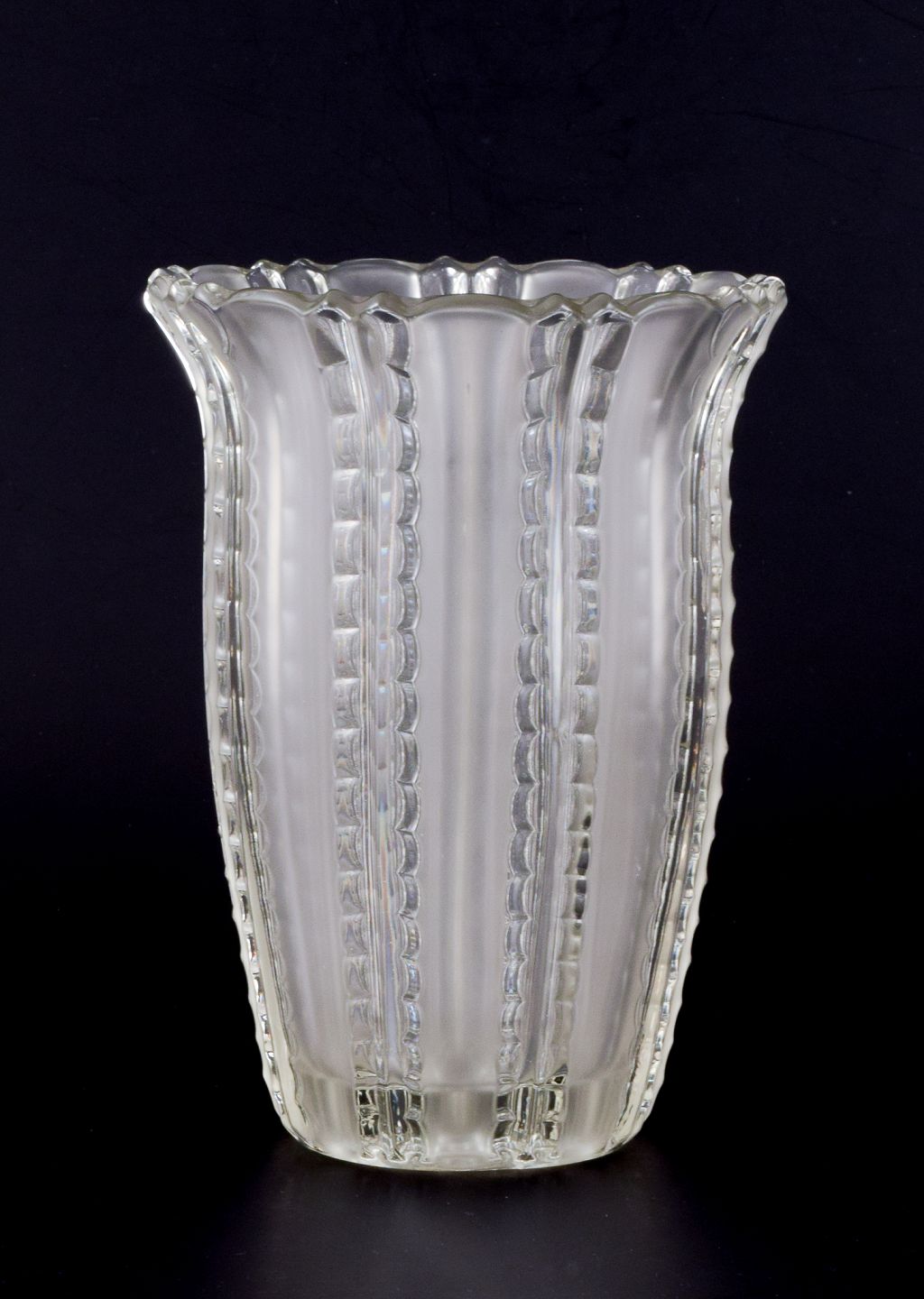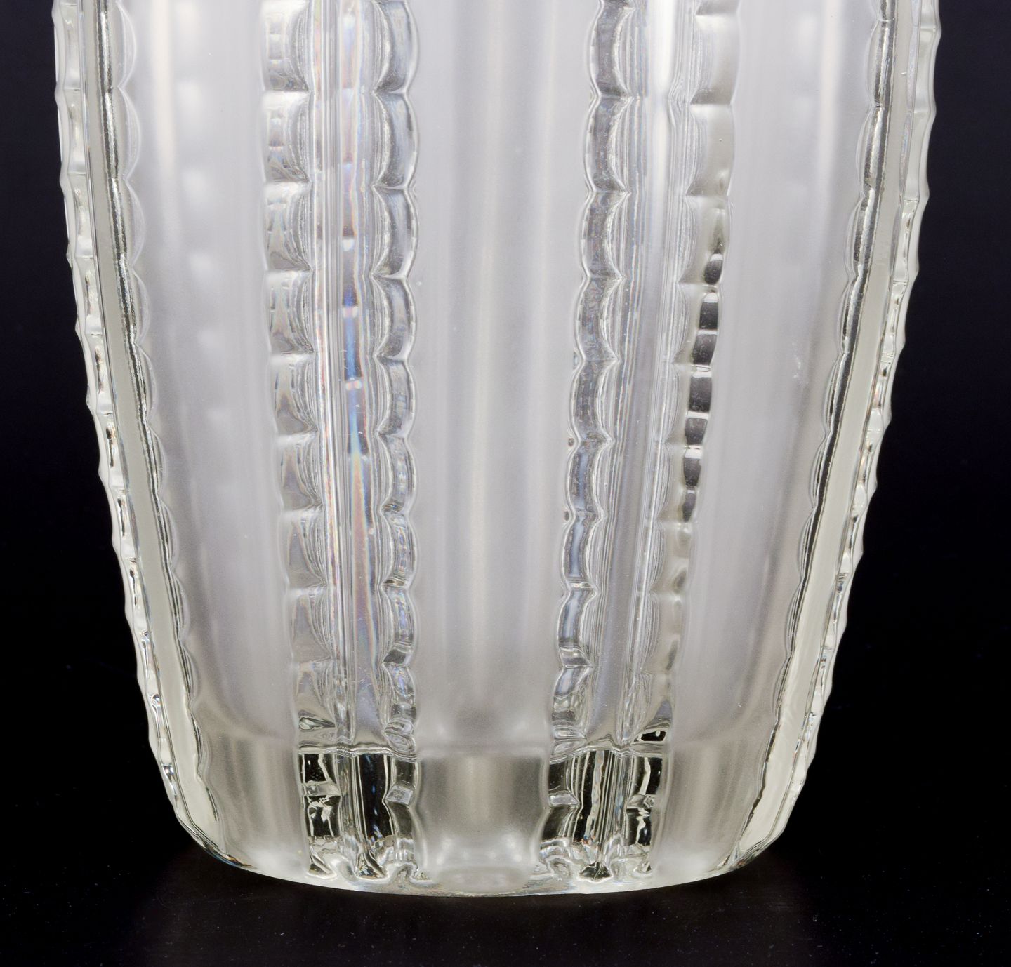 René Lalique (1860-1945), Frankrig. Stor Art Deco kunstglasvase i matteret og klart glas. Tidlig model. Ca. 1930. Tidligt R. Lalique France stempel. Perfekt stand. Mċl: H 19,0 cm. x D 14,0 cm.