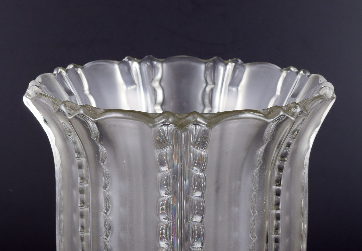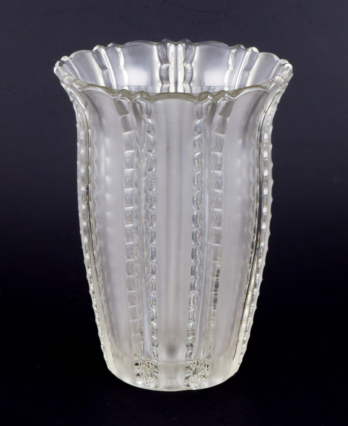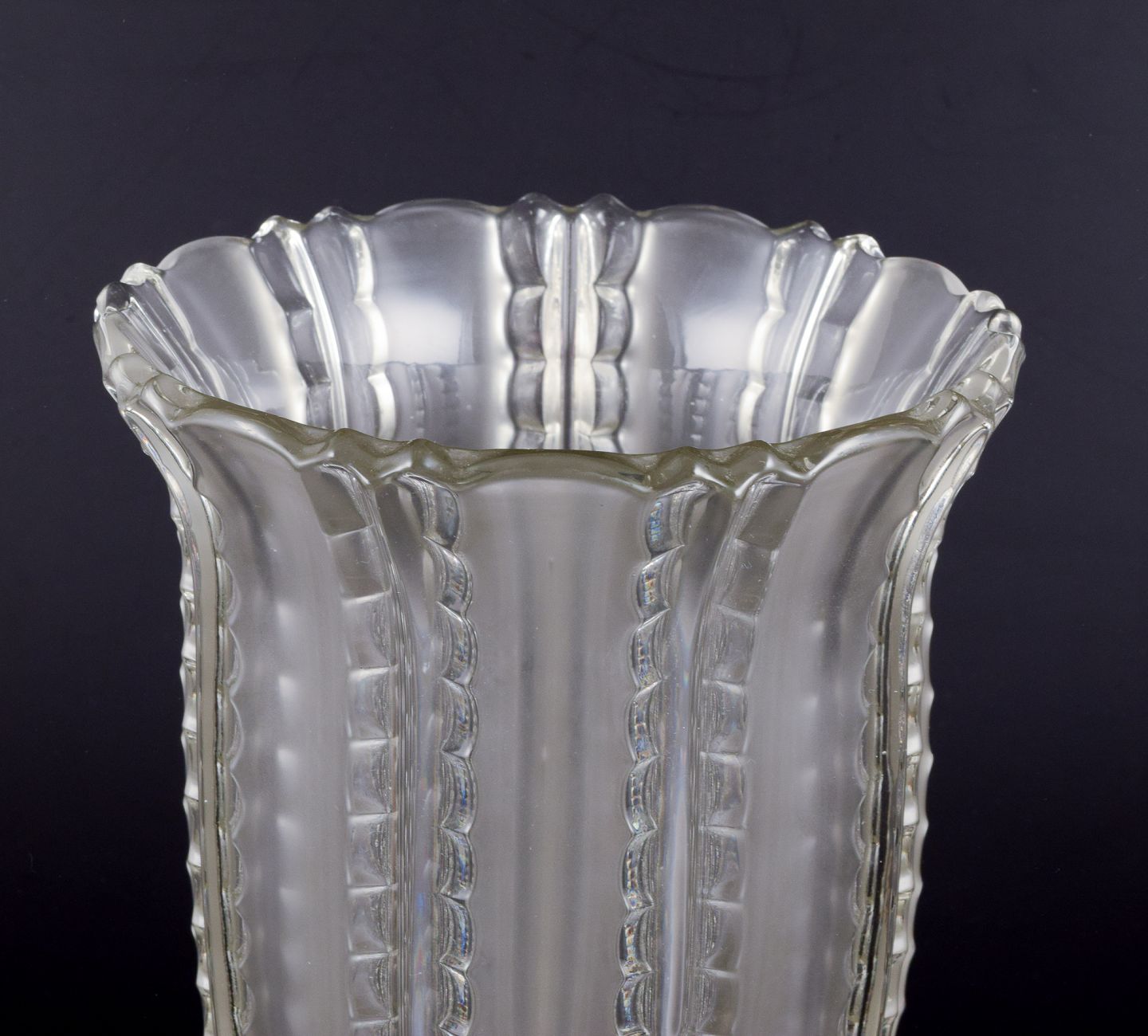 René Lalique (1860-1945), Frankrig. Stor Art Deco kunstglasvase i matteret og klart glas. Tidlig model. Ca. 1930. Tidligt R. Lalique France stempel. Perfekt stand. Mċl: H 19,0 cm. x D 14,0 cm.