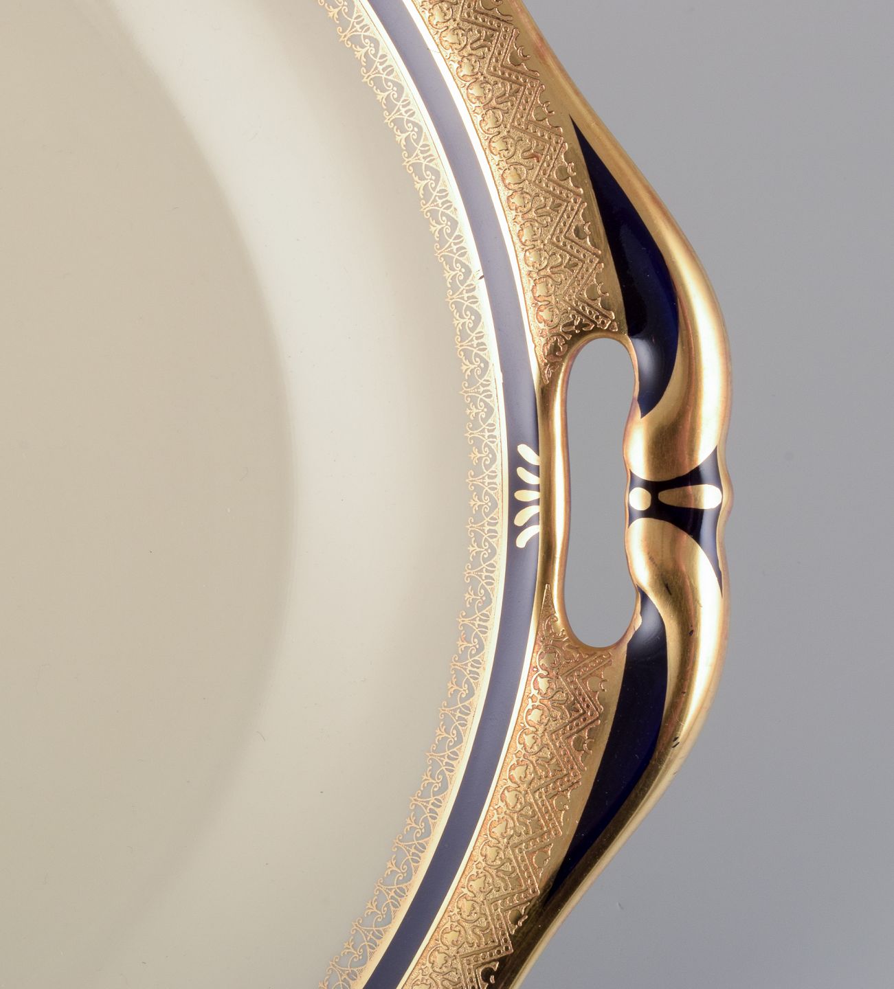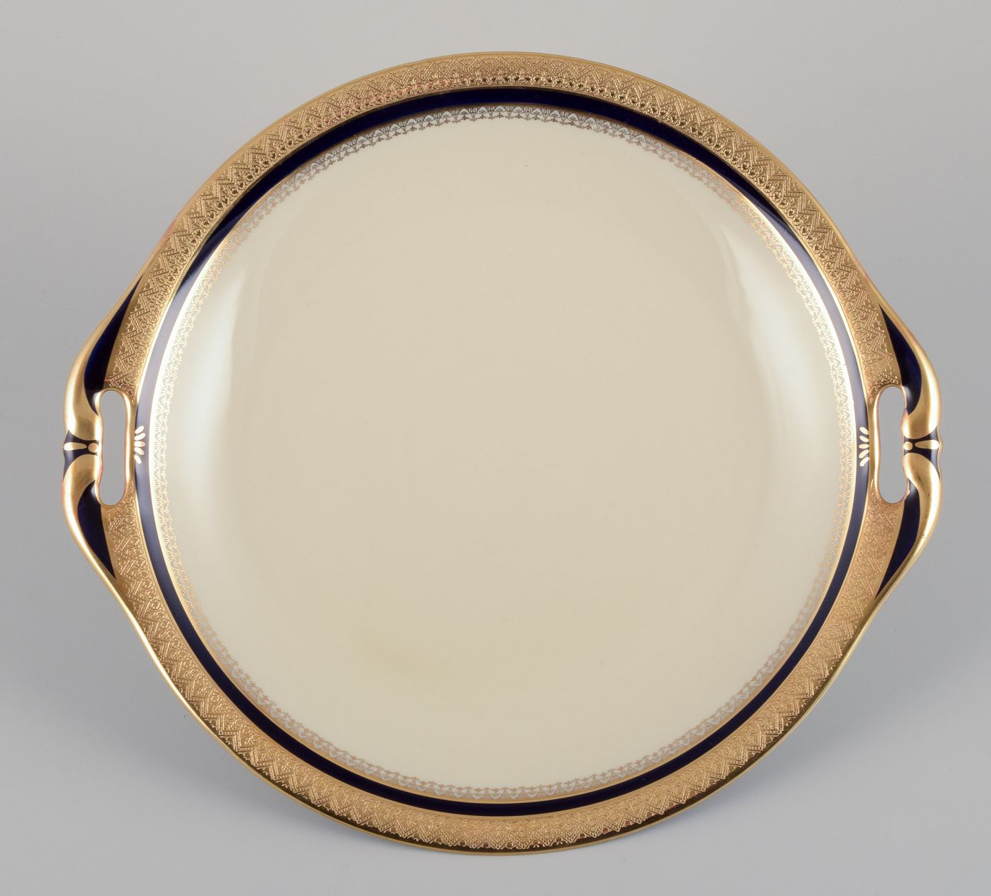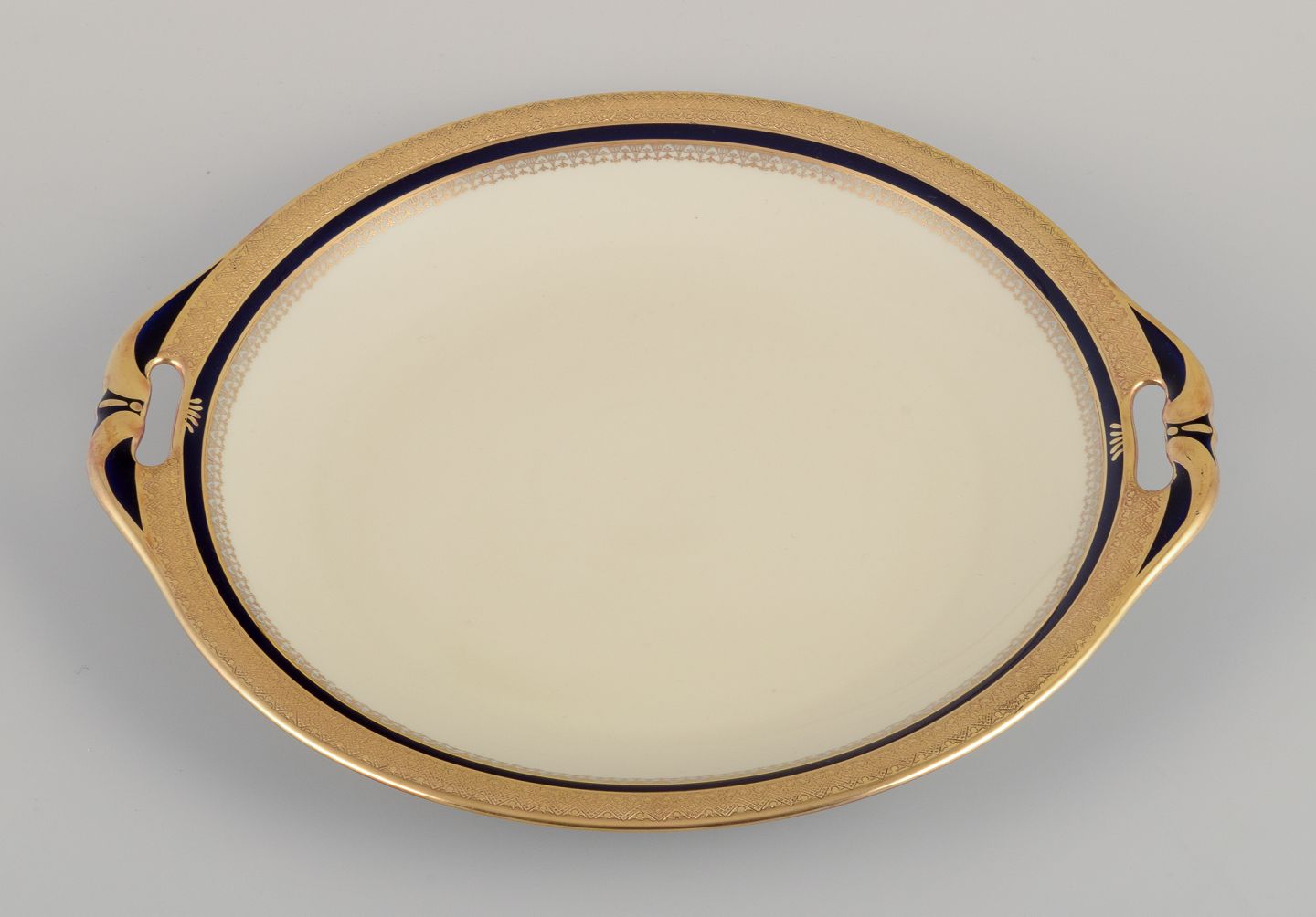 Hutschenreuther, Tyskland. To fade samt saucekande fra serien ”Margarete”. Hånddekoreret med guld og kongeblå.