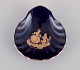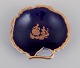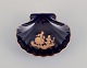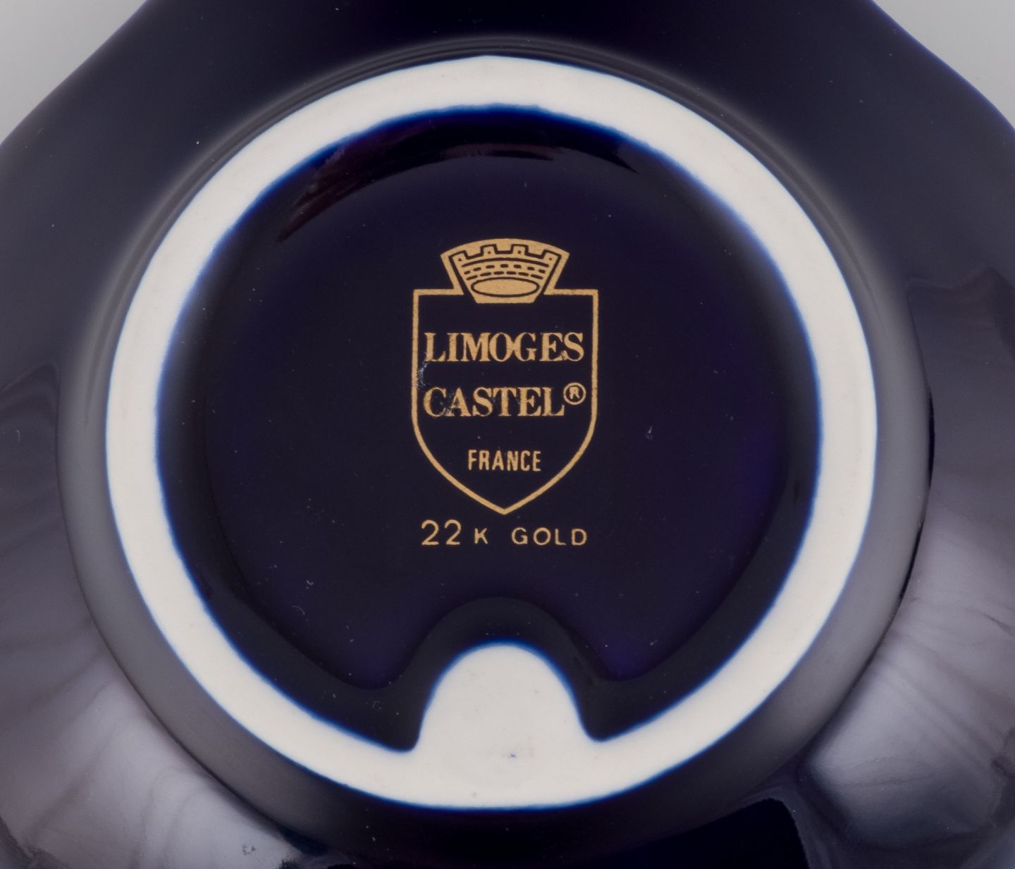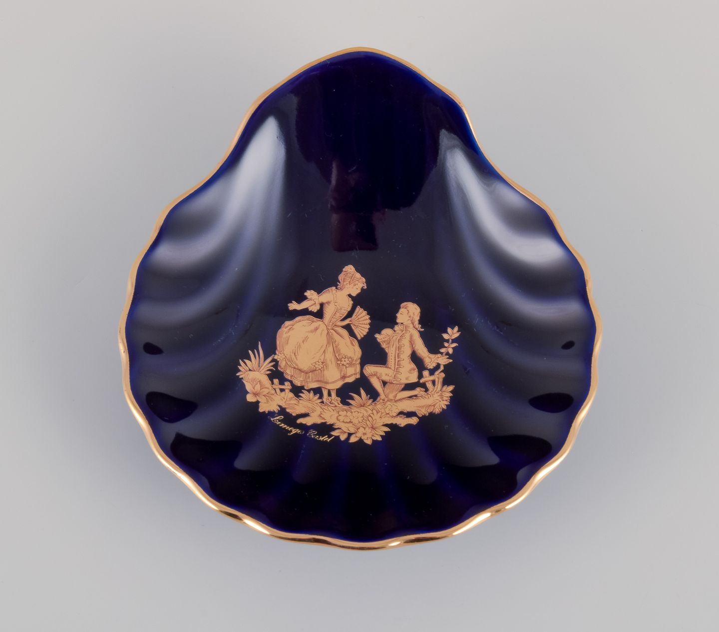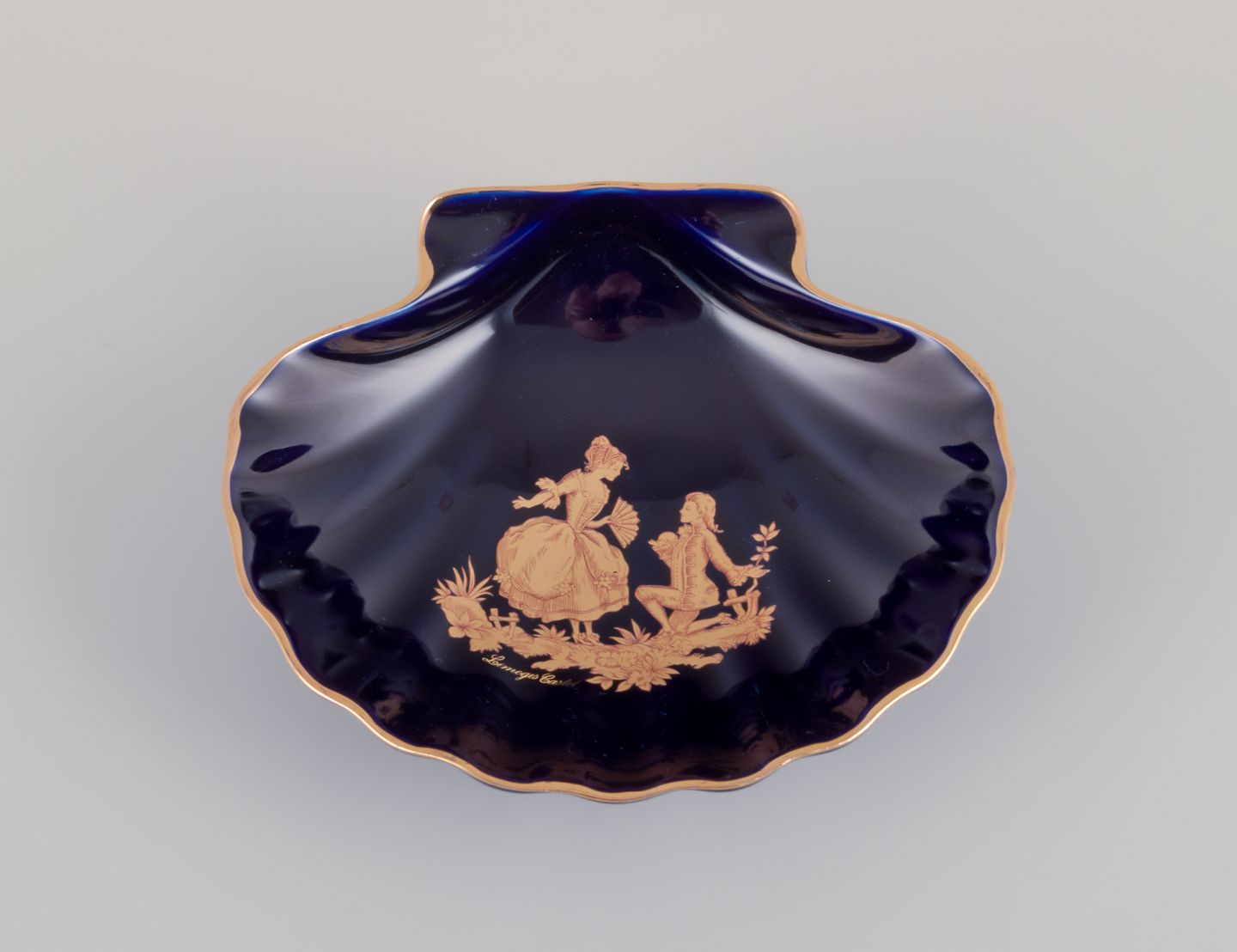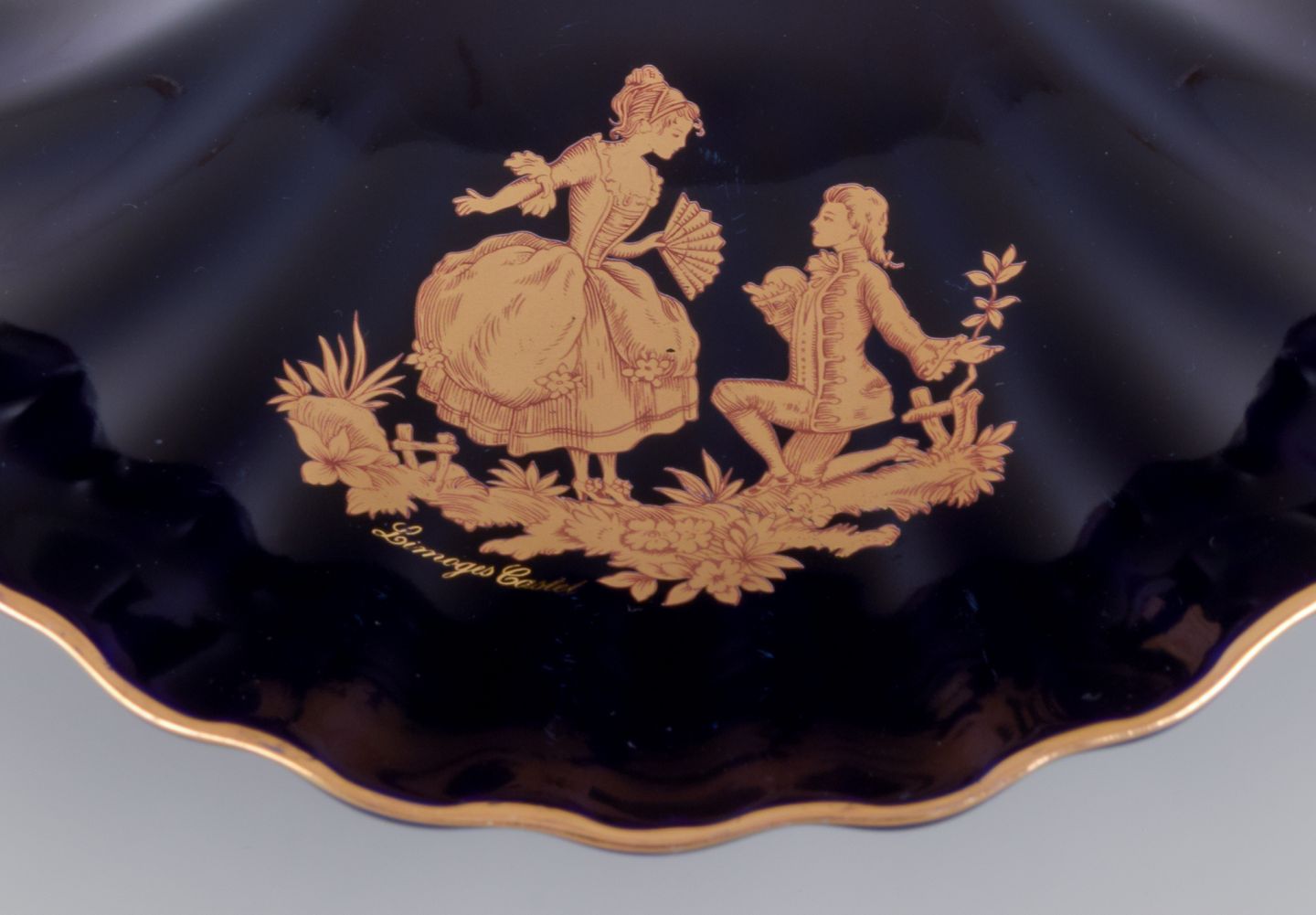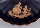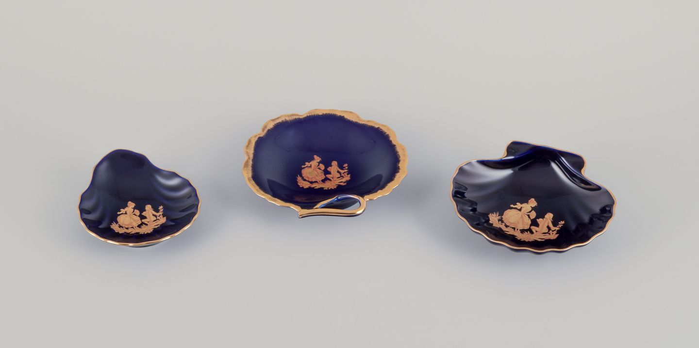 Limoges, France. Three bowls in porcelain decorated with 22-karat gold leaf and beautiful royal blue glaze. Scène galante.