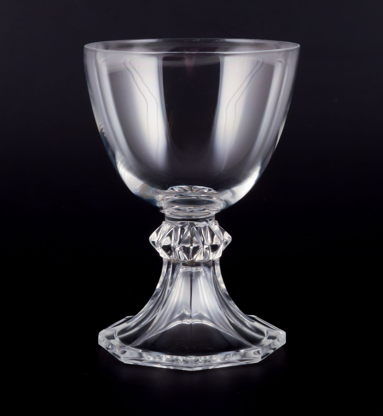 Val St. Lambert, Belgien. Et sæt på fem rødvinsglas i klart mundblæst krystalglas. Midt 1900-tallet. Perfekt stand. Mål: D 8,5 cm. x H 12,4 cm.