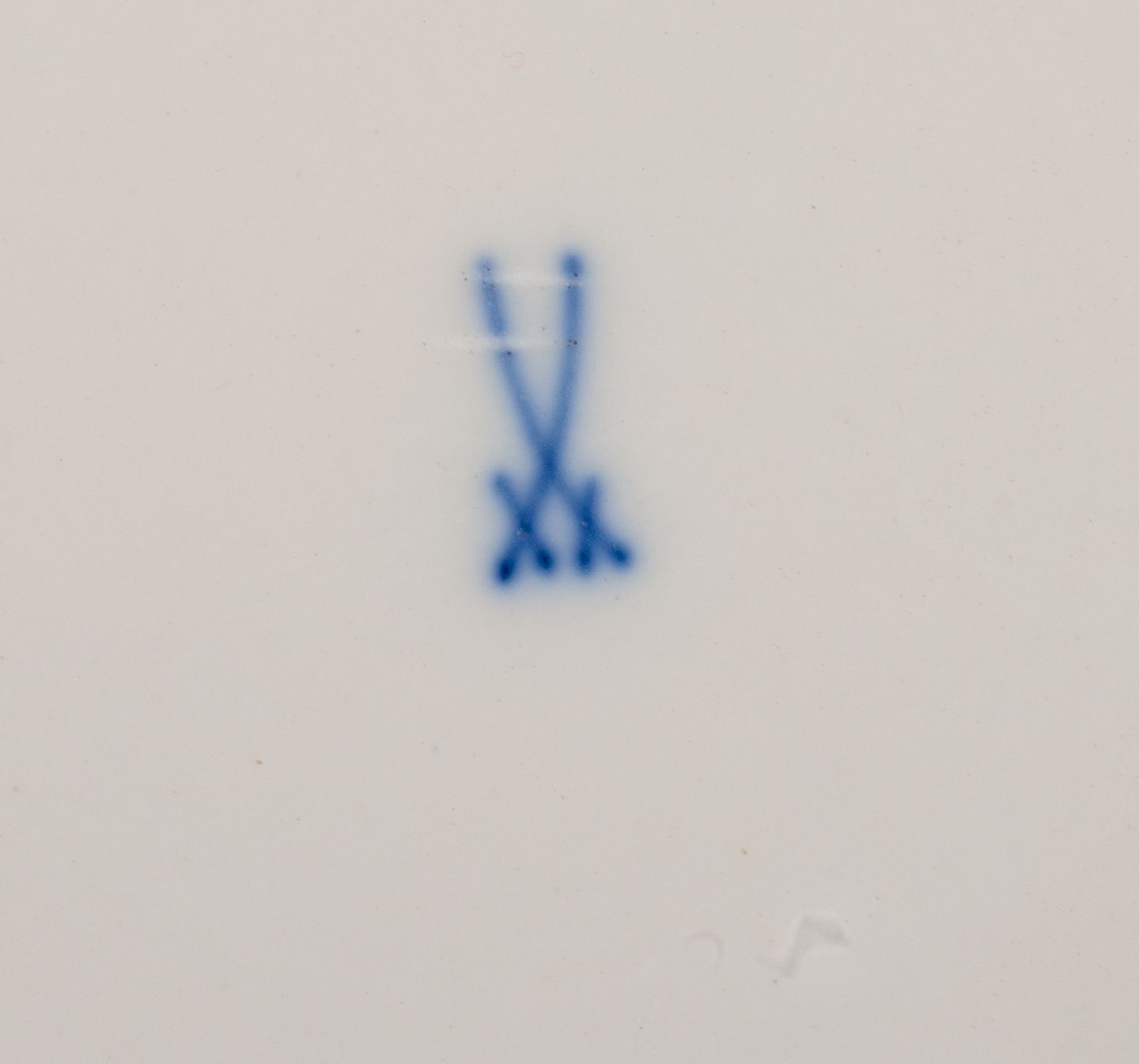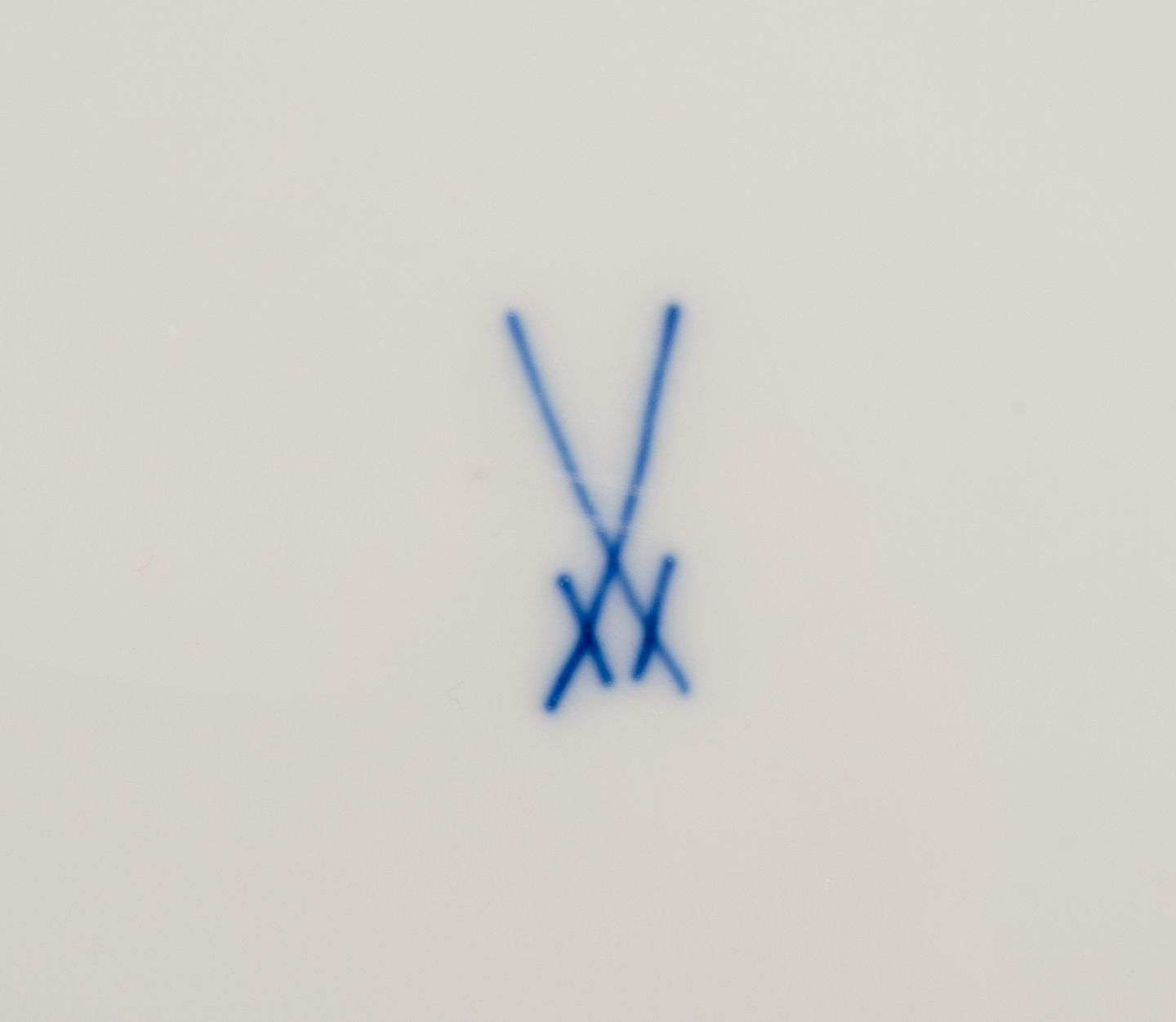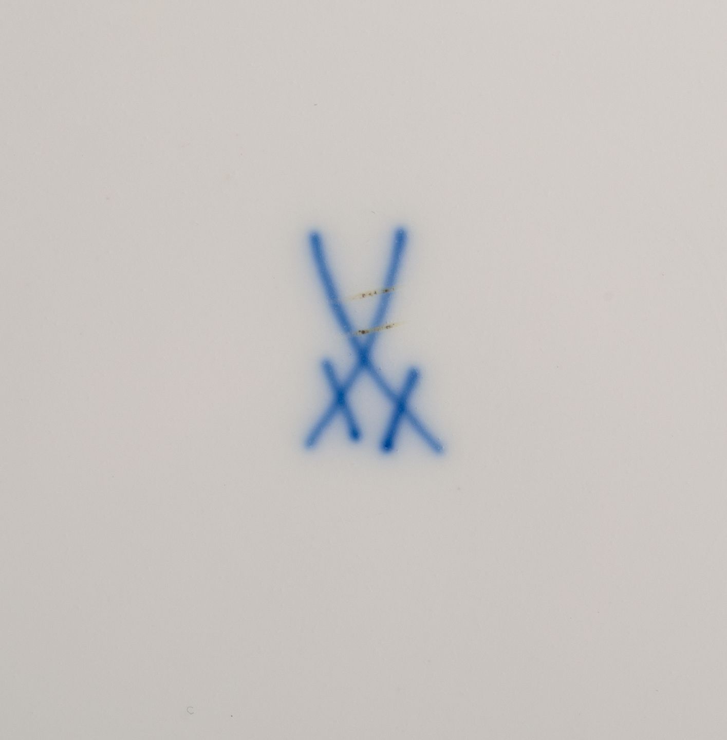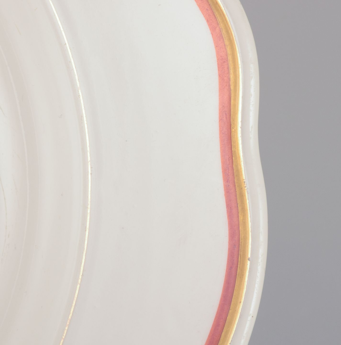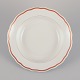 Meissen, Tyskland. Tre dele porcelæn bestående af en stor skål, en dyb tallerken og en tallerken. Dekoreret med koralrød og guldfarvet kant.