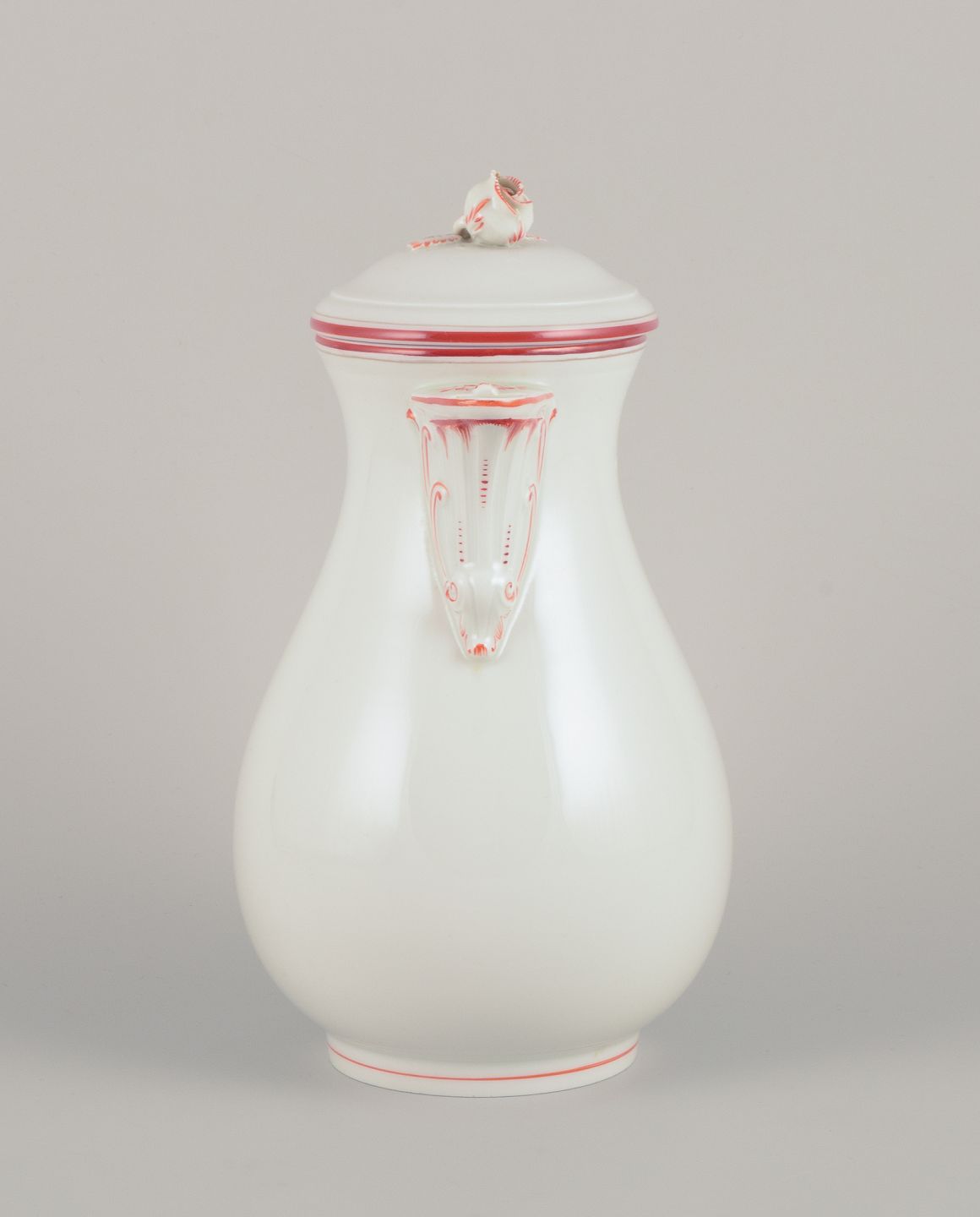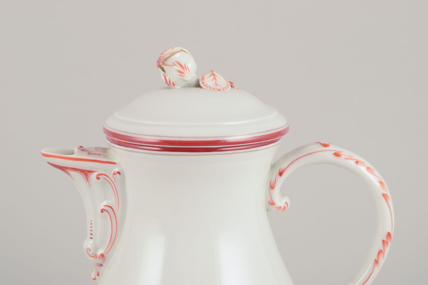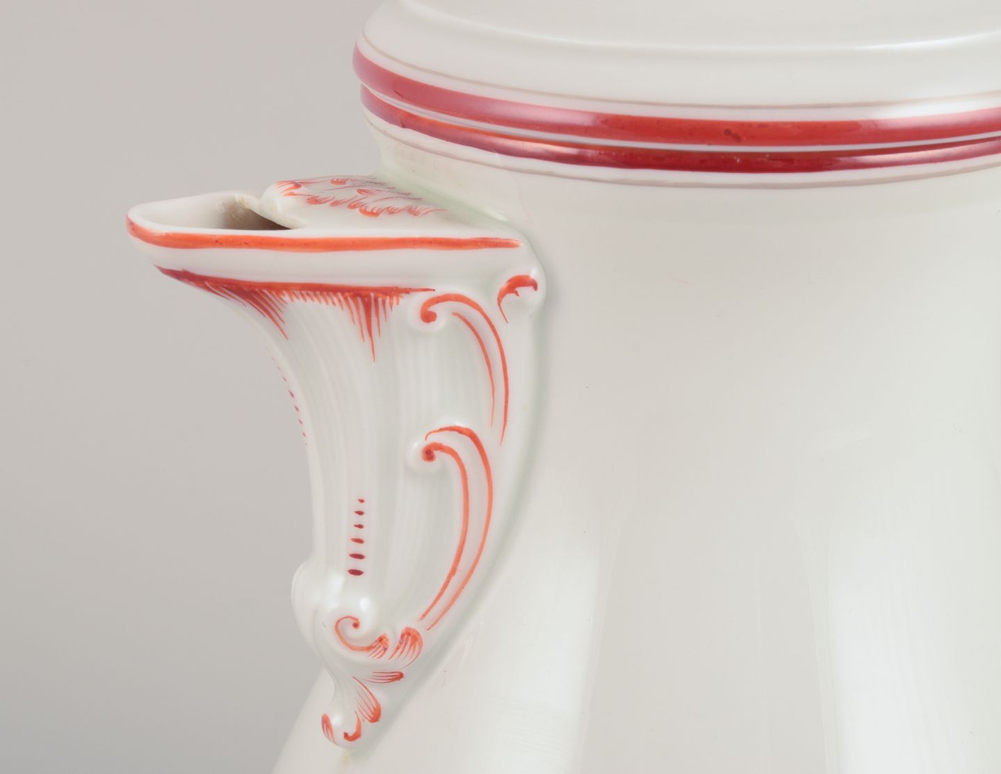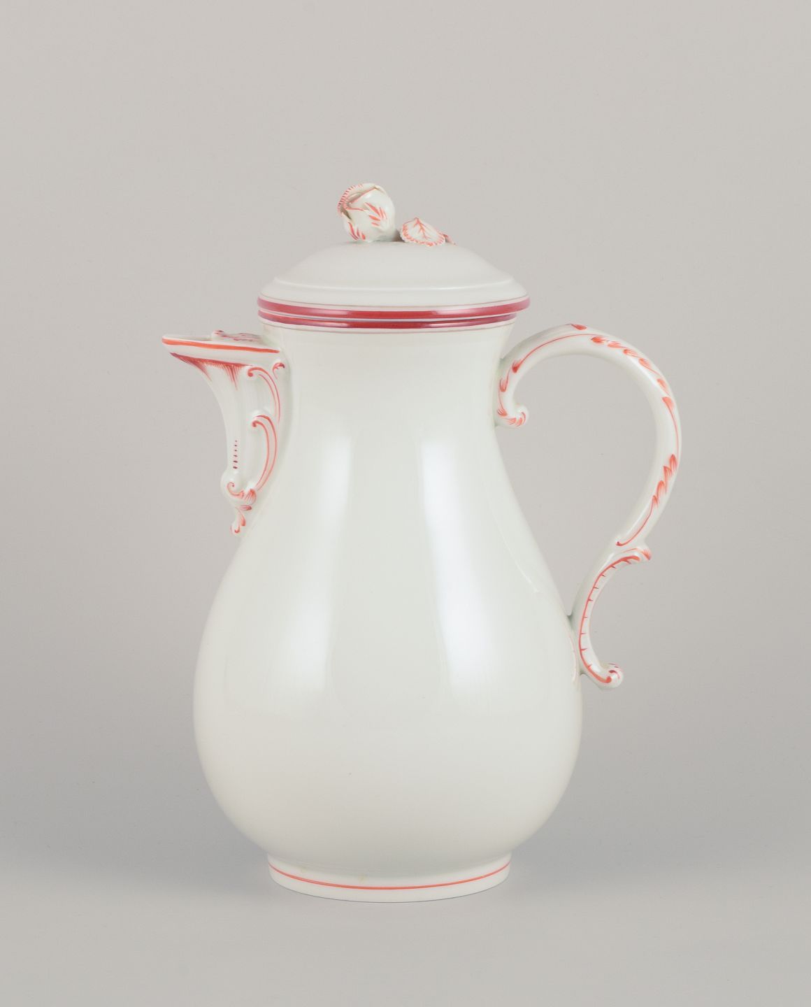 Meissen, Germany. Coffee pot decorated with coral red and gold-colored trim. Art Deco.